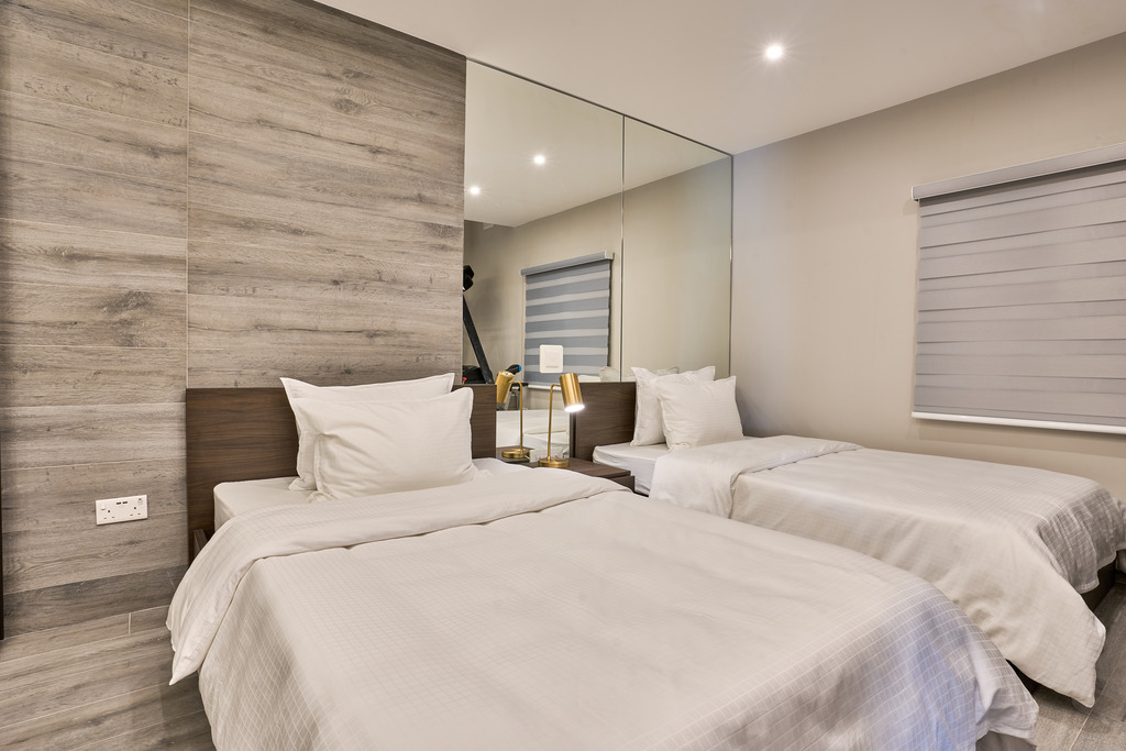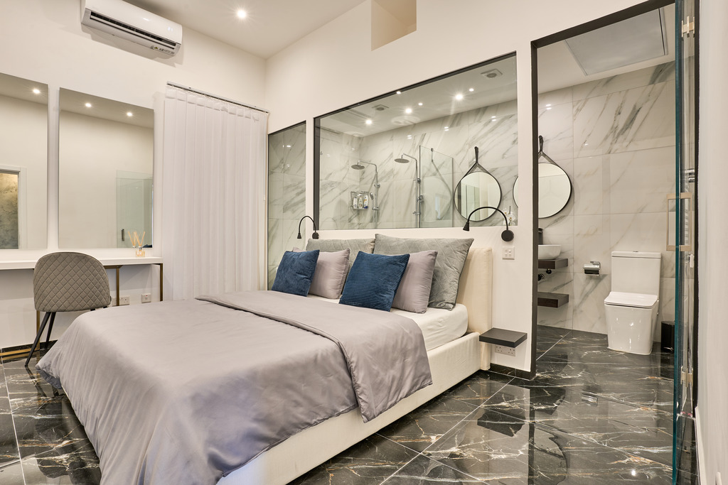 Designed to blend timeless architecture with modern luxury, this remarkable home welcomes you with generous proportions and elegant finishes throughout. On the first floor, the property features three spacious double bedrooms, each benefitting from its own private ensuite bathroom, ensuring comfort and privacy for residents and guests alike. The master bedroom stands out as a true retreat, complete with a fully equipped home theatre system, creating the perfect environment for relaxation and entertainment. Also located on this level is a fourth bedroom furnished with two single beds. This versatile room additionally hosts a dedicated gym area, making it ideal for fitness enthusiasts or adaptable to suit individual lifestyle needs.