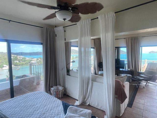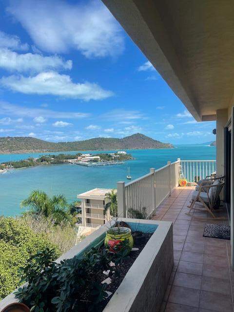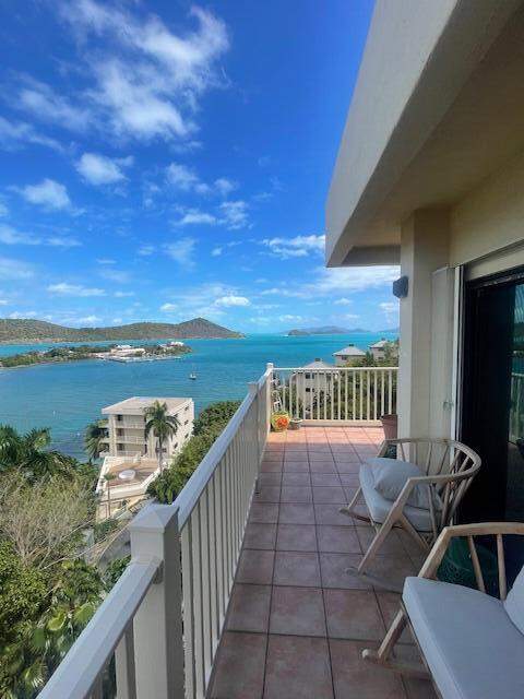PENTHOUSE at Point Pleasant, Can't get any better than this!!! Stunning unit features a wrap around plant loving balcony for out of this world views of St John and the BVI. All the luxury features you can expect with granite countertop, full-sized fridge, convection oven, full stovetop, blackout blinds, etc... Three pools to enjoy and 2 highly rated restaurants in the complex. Sale includes a GL 450 Mercedes Benz Highly profitable short term rental unit.