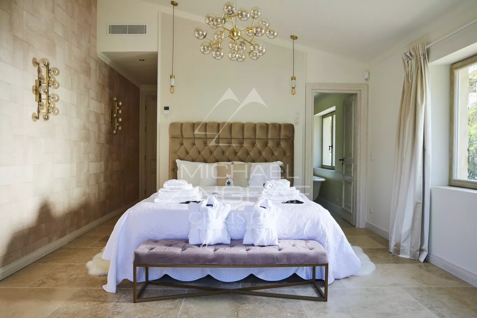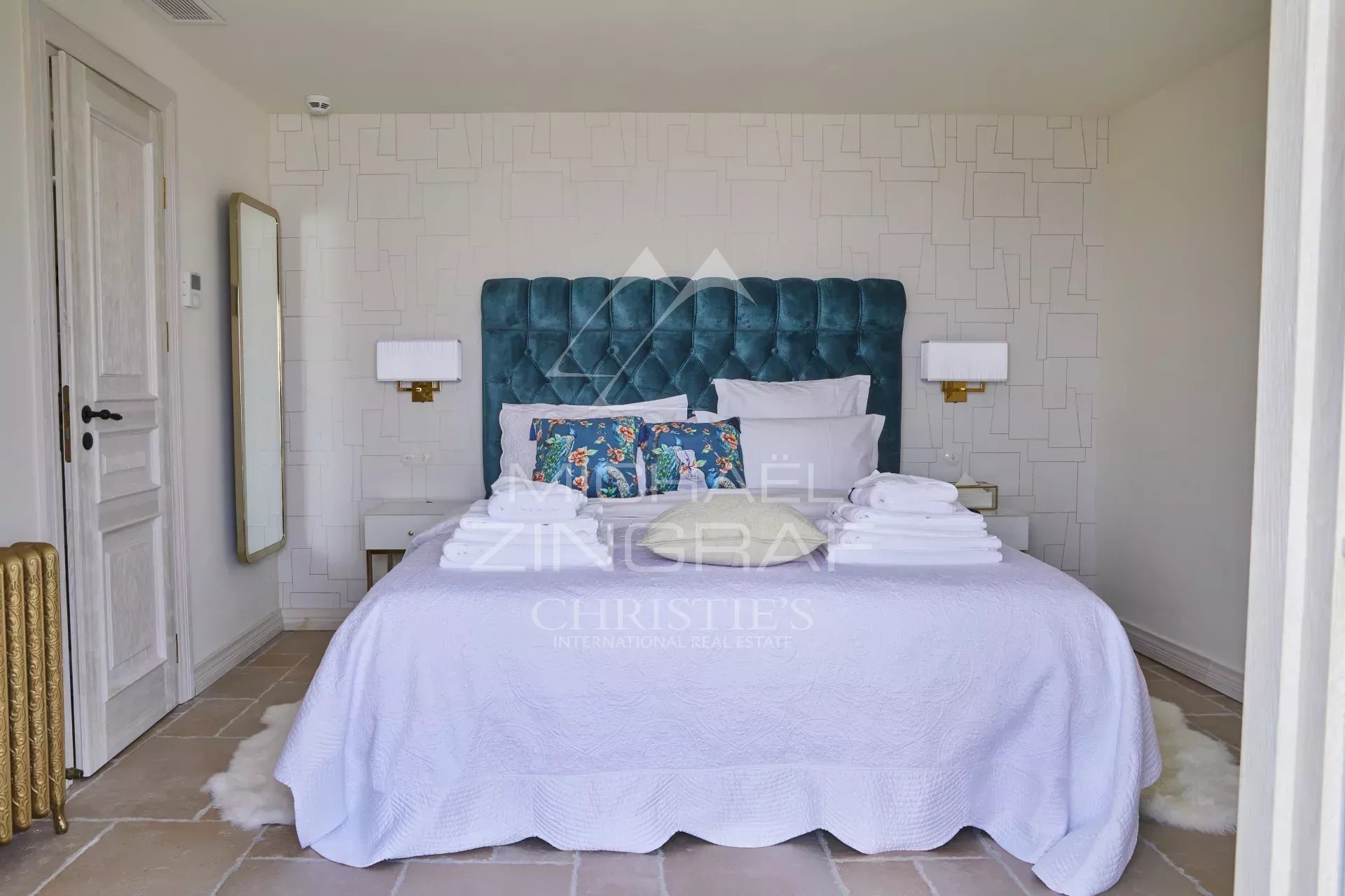 The property features four air-conditioned bedrooms and a children's bedroom with bunk beds, comfortably accommodating families and guests.