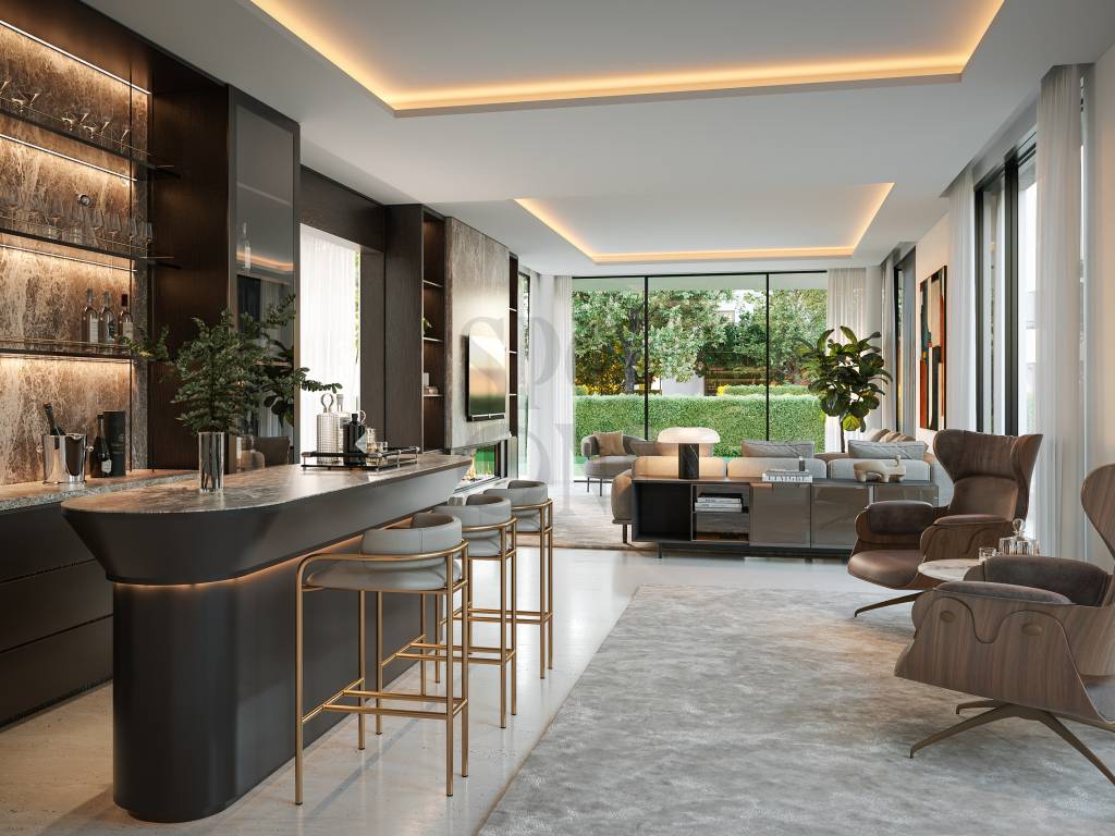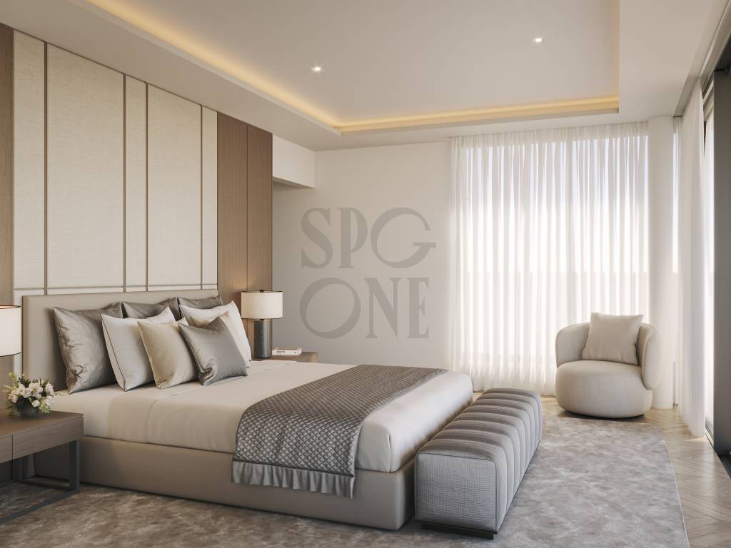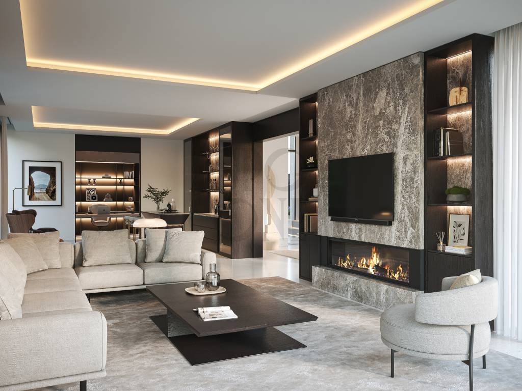The contemporary architecture and high-end materials used throughout the villa create an elegant and bright atmosphere. The villa features a complete master suite with a double dressing room and a large private bathroom, providing a true space of luxury for the owners.