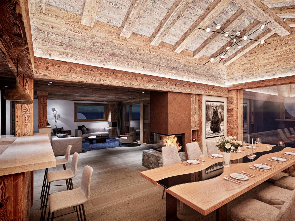 Once completed, this chalet will harmoniously blend tradition and modernity, featuring old wood exterior, cut stone, and high-end finishes. With its five en-suite bedrooms, it promises comfort and privacy, while its spacious living areas will invite warm moments. A garage with three indoor parking spaces will complement these amenities, offering ideal practicality for mountain stays.