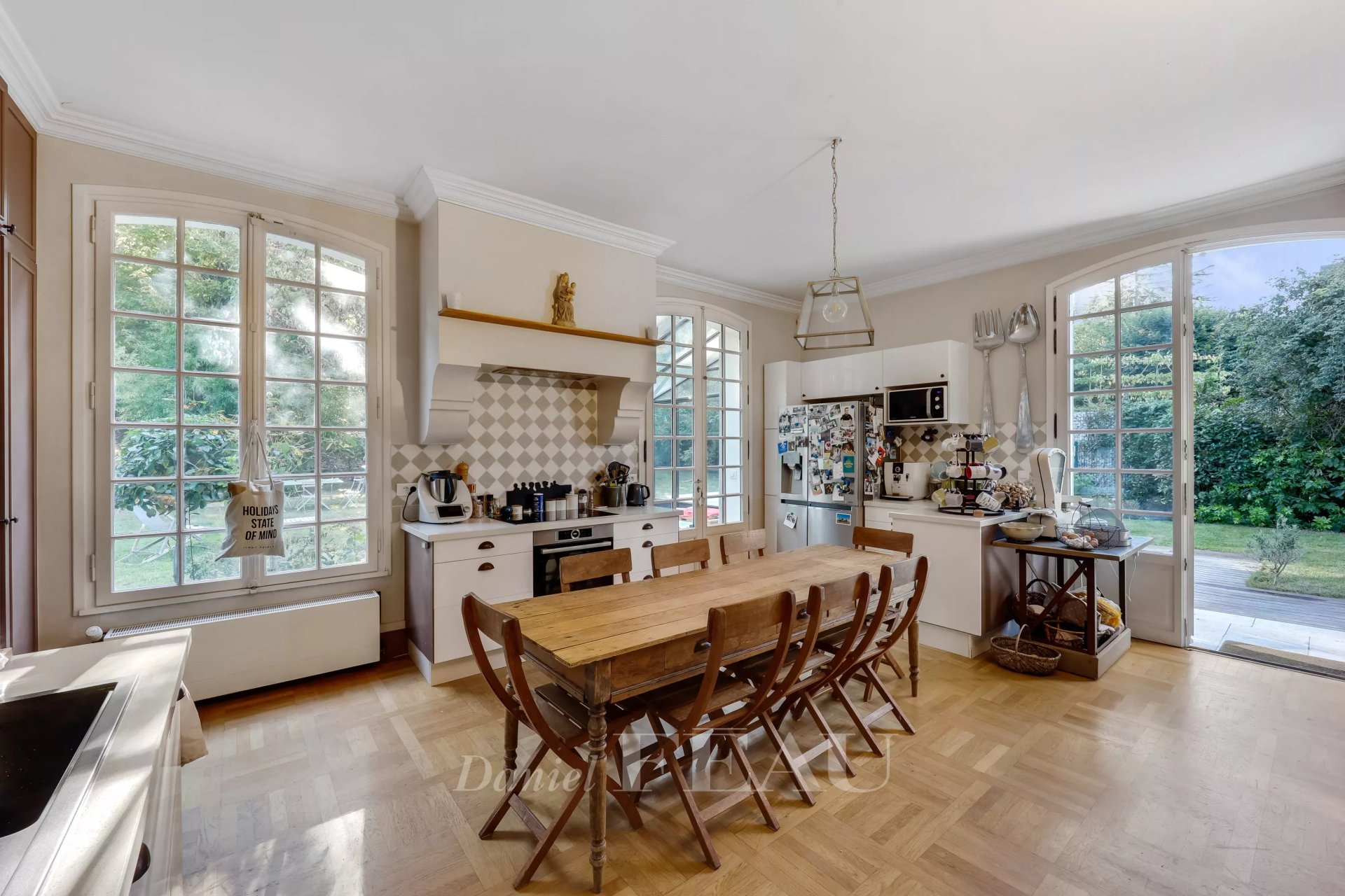 This bright and peaceful mid 20th century property located in a private residence is set in an 830 sqm plot with a 7.50 x 3.50 metre heated swimming pool. Offering 351 sqm of floor space and 285 sqm of living space, it includes a spacious entry, a living/reception room with a fireplace and parquet flooring, a dining room, a fitted and equipped family kitchen with a veranda, a bedroom with a shower room, and a guest wc. The living rooms open onto a terrace and the south-facing garden.