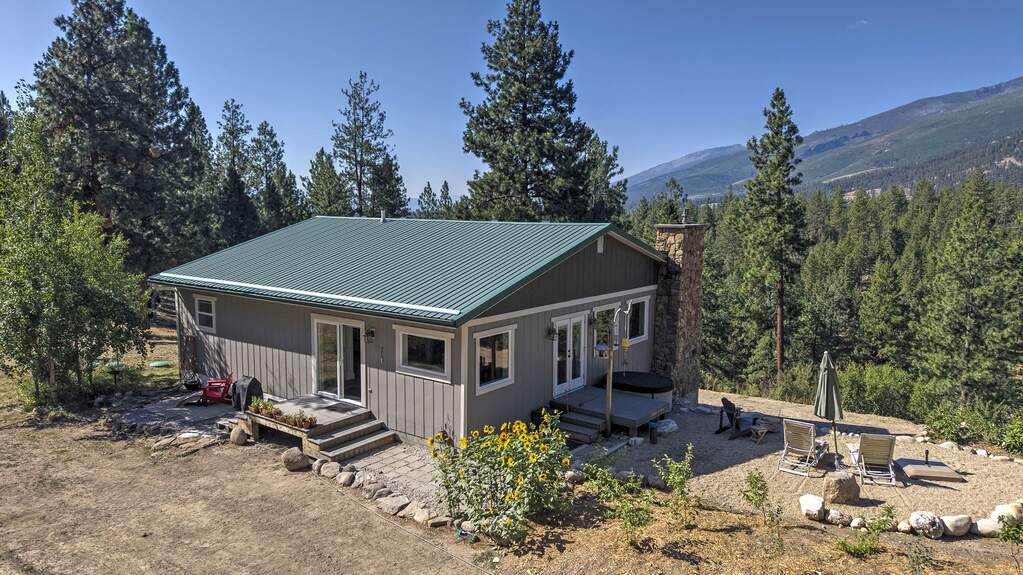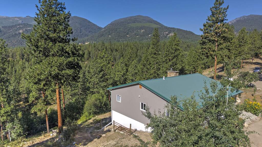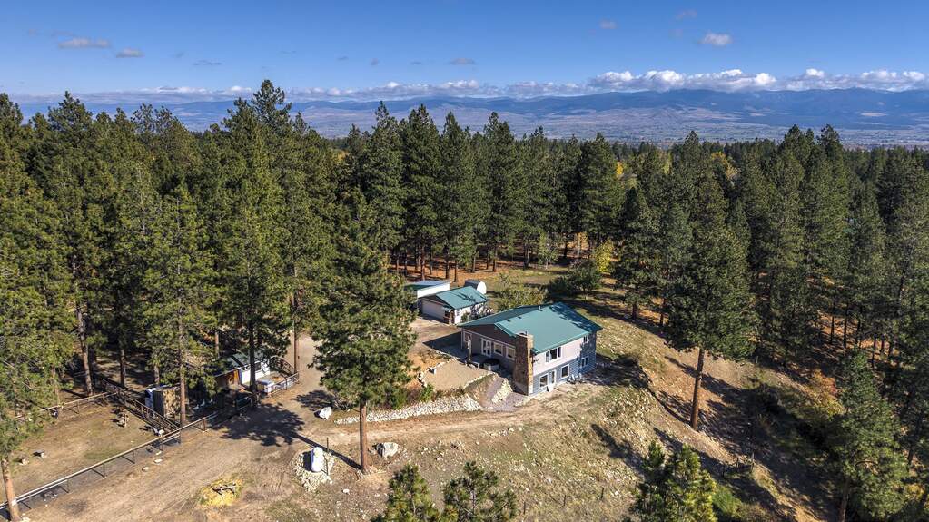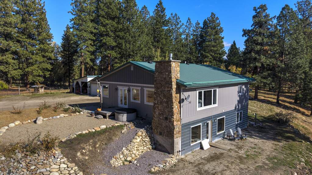 Tucked within tall pines, down a gated private drive, lies an idyllic hobby farm retreat at 821 Fred Burr Rd. The peaceful 20-plus acres are currently home to irrigated and cross-fenced pastures full of domestic goats, geese, and chickens, as well as a plethora of Montana wildlife soaking in the bucolic surroundings of this easy-to-access but remarkably secluded-feeling parcel. Take advantage of sweeping mountain views from the hot tub on the deck or from inside the open-concept living area with walls of sun-drenched windows thoughtfully placed to feel like you're high up in the trees. The remodeled chef's kitchen and main bath feel luxurious and well-considered, incorporating natural textures and a palette complementary to the rural environment. Two light-filled bedrooms and a bath with an over-sized soaking tub complete the main level. Downstairs, you'll find another large bedroom, ample storage, and an open-concept area that can be tailored to fit your individual needs. Outside, there are multiple outbuildings, including Honey's House, which could serve as a small artist studio, outdoor office, or very high-end dog accommodations. Below the home, enjoy complete seclusion in the pergola at the property's private, spring-fed pond. With two wells, a new septic system, as well as substantial improvements to the home and ample acreage during the current owner's caretaking, all located less than 20 minutes from some of the best restaurants and recreation in the scenic Bitterroot Valley, this one-of-a-kind property is certain to quell any yearning for a slice of rural Montana paradise.