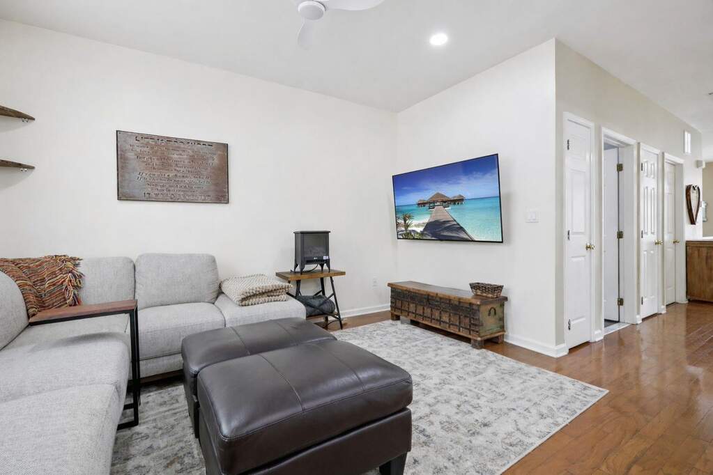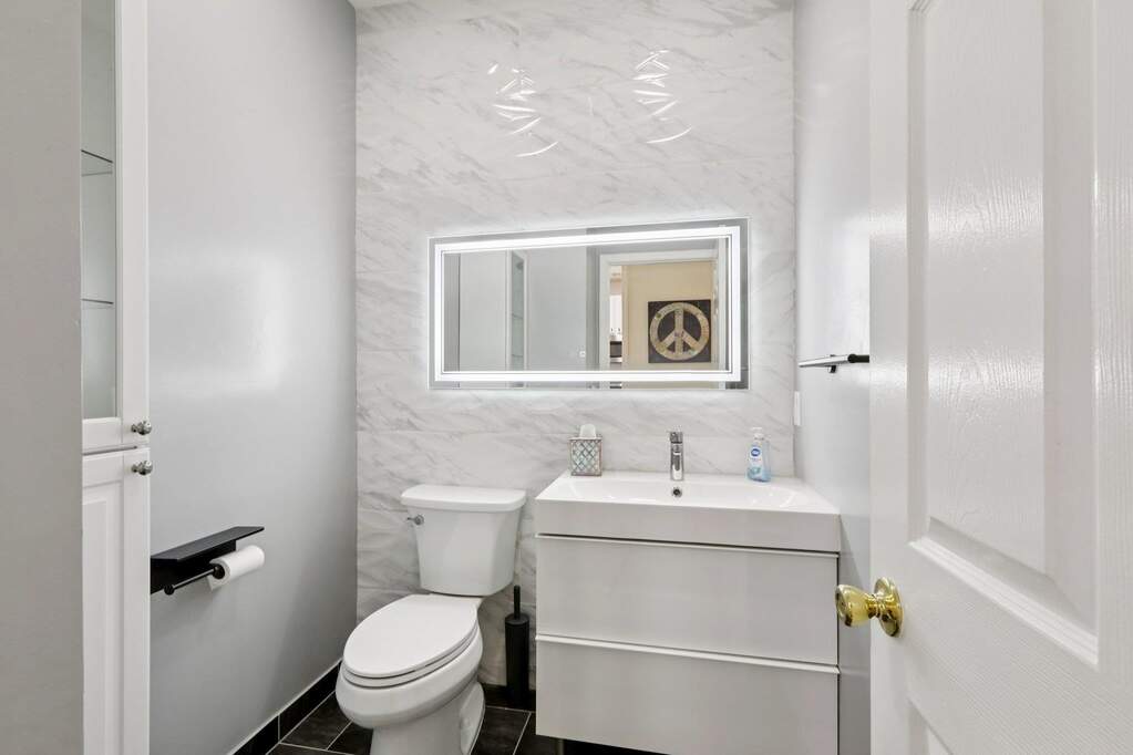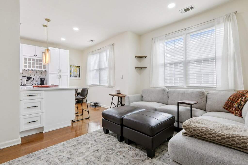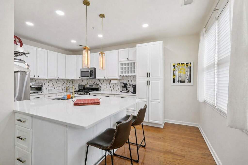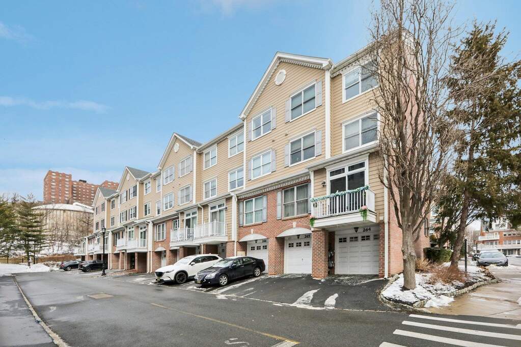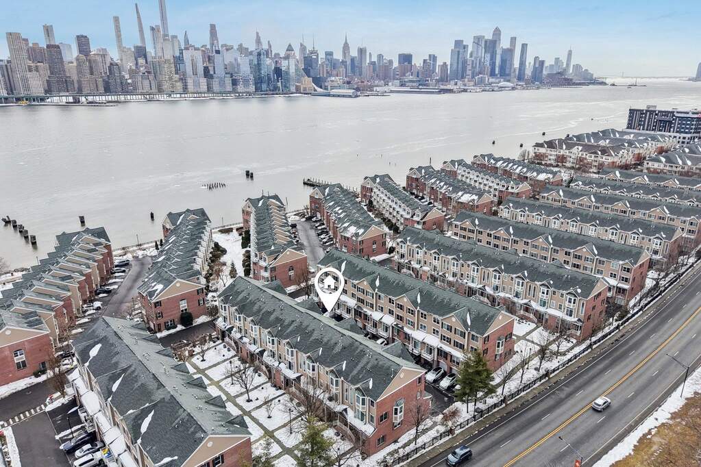 Discover sophisticated living in this exceptional Delaware style townhouse perfectly situated in the desirable Jacobs Ferry community. Thoughtfully redesigned to maximize functionality, this residence offers 1,872 sq. ft. of elegant living space. The main level boasts an open living area adorned with recessed lighting, and a private balcony. Beautifully updated home features a chef's kitchen with sleek quartz countertops, a luxurious quartz island, and a built-in wine rack. Enjoy ample storage space with two spacious pantries, ensuring a clutter-free cooking experience. Adjacent to the dining area is an additional versatile space, enhancing the home's practicality along with a utility room, pantry, half bath, washer/dryer, and coat closet for added convenience. The home is illuminated by recessed LED lighting with WiFi-enabled switches, adding both style and convenience. A newly updated half bath on the main floor adds to the home's charm. The third level hosts a luxurious primary suite, complete with a custom walk-in closet featuring built-in drawers and shelves for optimal organization. The master bath boasts a newer vanity, offering a fresh and modern touch. Two additional bedrooms share a full bathroom, providing ample space for family or guests. A partial New York skyline view, adding a touch of city charm to this incredible home. Two dedicated parking spaces are included. You're just minutes from the stunning Hudson River waterfront boardwalk. Don't miss the chance to make this spectacular home yours!