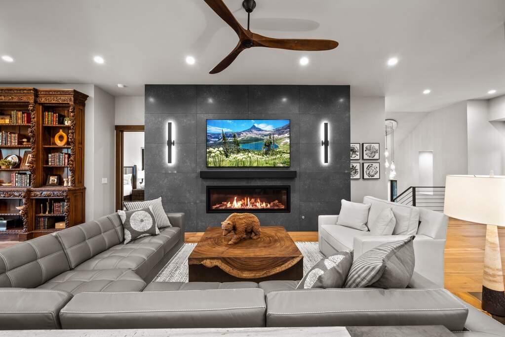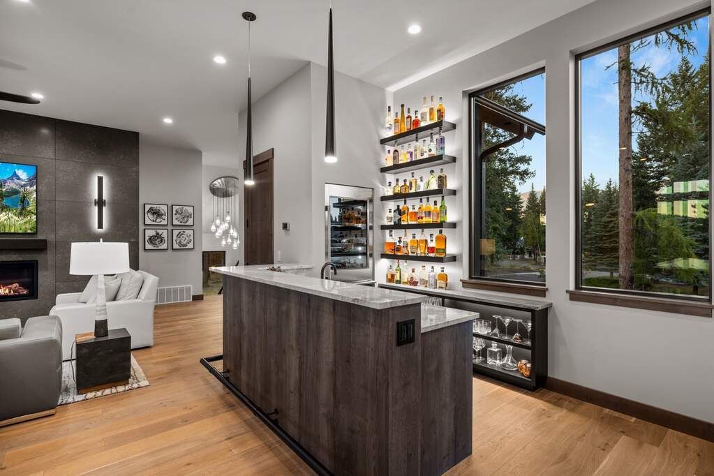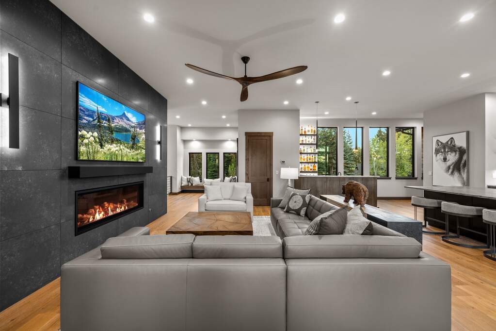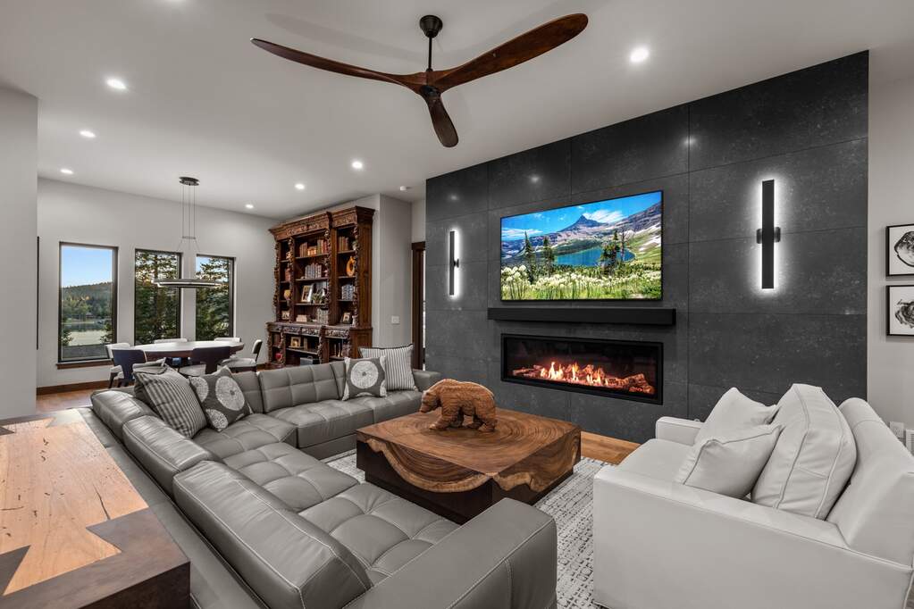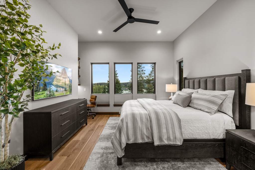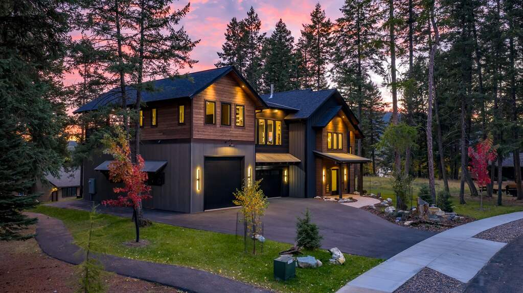 Whitefish Lake Access with Boat Slip! Marina Crest Magic! Experience signature Bay Point living with assigned boat slip #38. Completed in 2023, this immaculate 3,741-square-foot residence offers five bedrooms (all ensuite), 5 bathrooms with heated flooring, and an additional powder room, creating a picture-perfect retreat within the highly sought-after Bay Point Country Estates Lake community. Offered fully furnished and turnkey, the home showcases refined interior styling with warm wood accents, modern sophistication, and meticulous attention to detail throughout. The open-concept layout is centered around a show-stopping kitchen and wet bar, complemented by a spacious Butler's pantry. Oversized windows bathe the interior with natural light, enhancing the home's bright and inviting atmosphere. The thoughtfully designed space also includes an elevator for ease of access, a generous deck for dining with filtered views of Whitefish Lake, and a bonus upper-level deck that provides abundant seating, an outdoor TV, and a hot tub, perfectly suited for entertaining or unwinding after a day on the water. Every detail has been carefully curated to support effortless living and memorable gatherings. Embracing the true Montana adventure lifestyle, the oversized heated garage offers a dedicated RV bay, supplying ample space for all your recreational pursuits. Enjoy exclusive access to your assigned boat slip (#38), along with over 500 feet of shared Whitefish Lake community frontage featuring swimming docks, a BBQ and park area, and a covered pavilion. Ideally located just minutes from downtown Whitefish and within walking distance to Whitefish City Beach, this exceptional property offers year-round recreation and the very best of lake living.