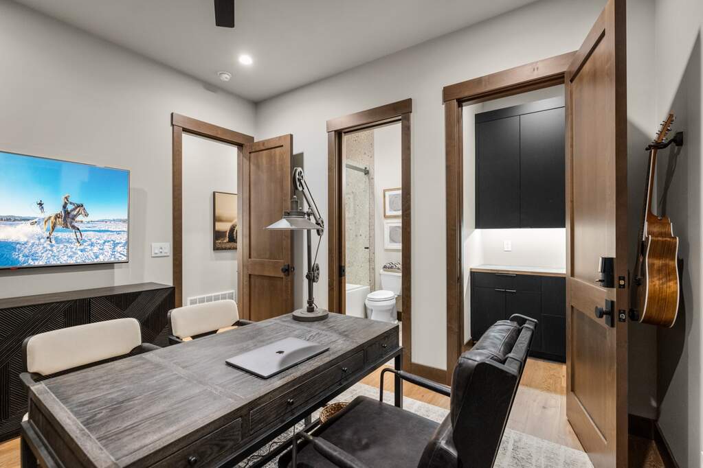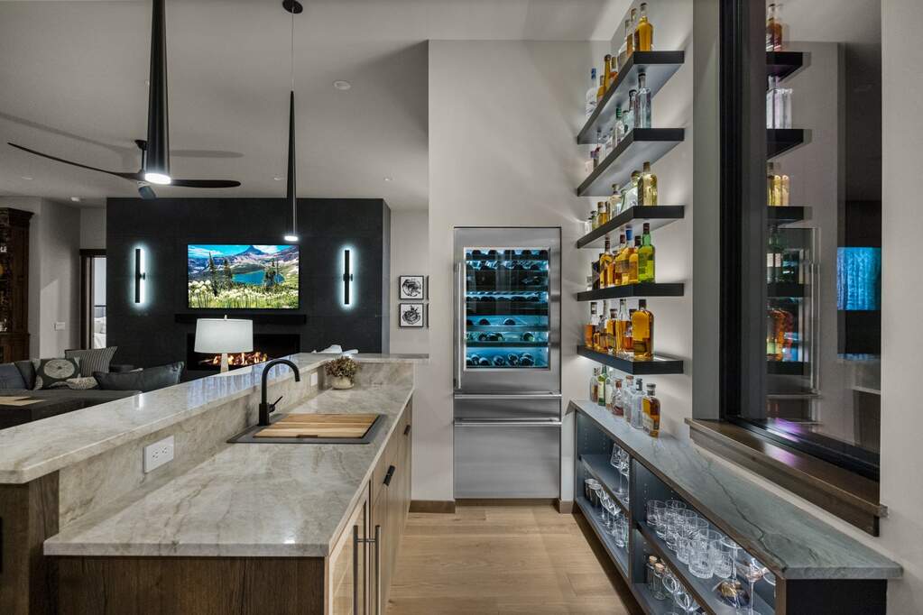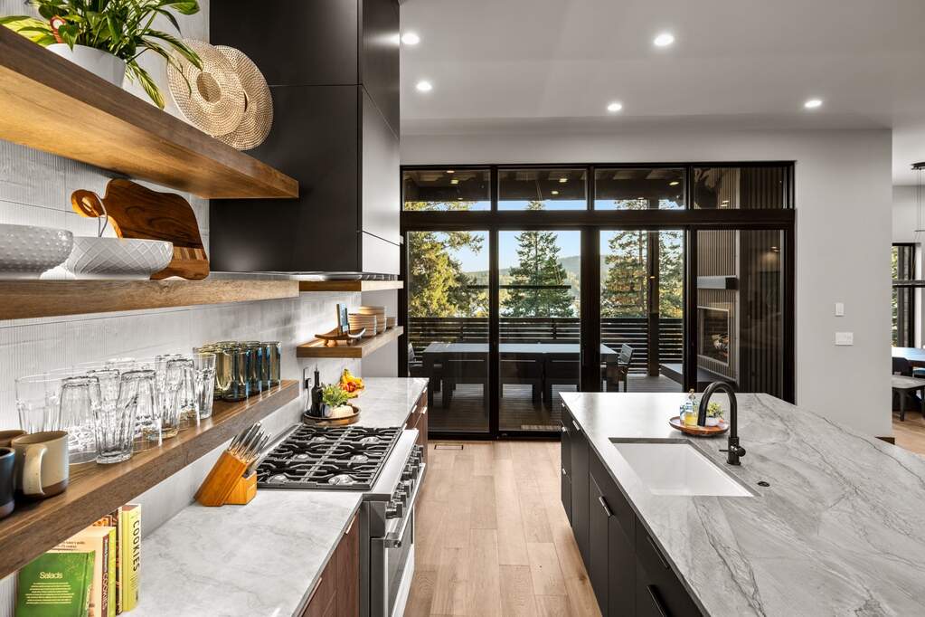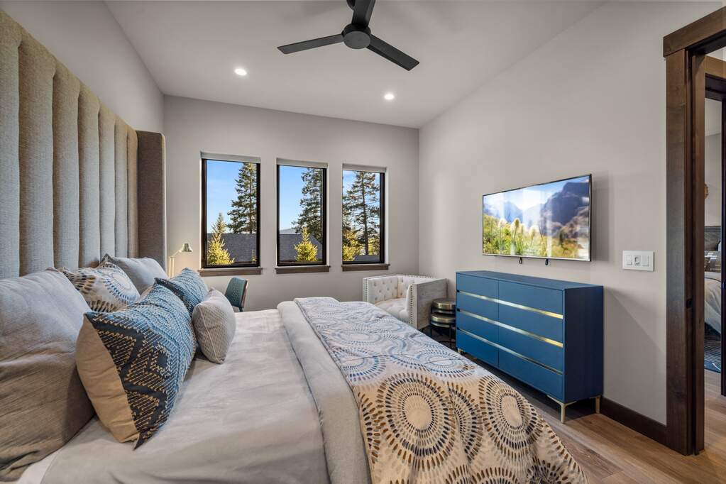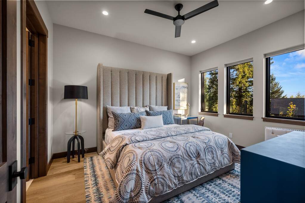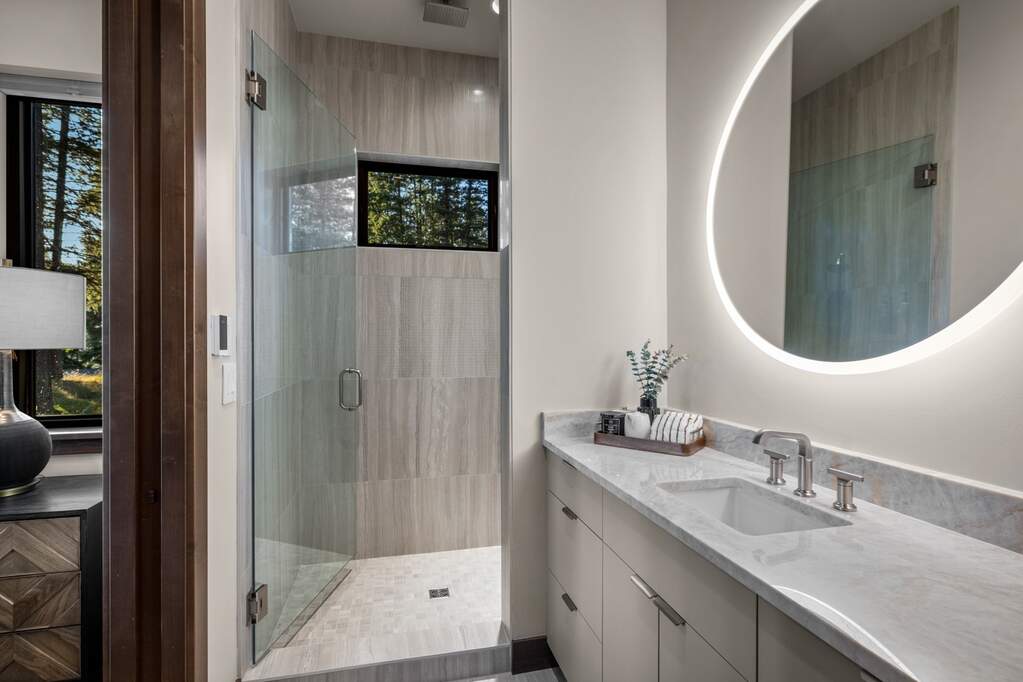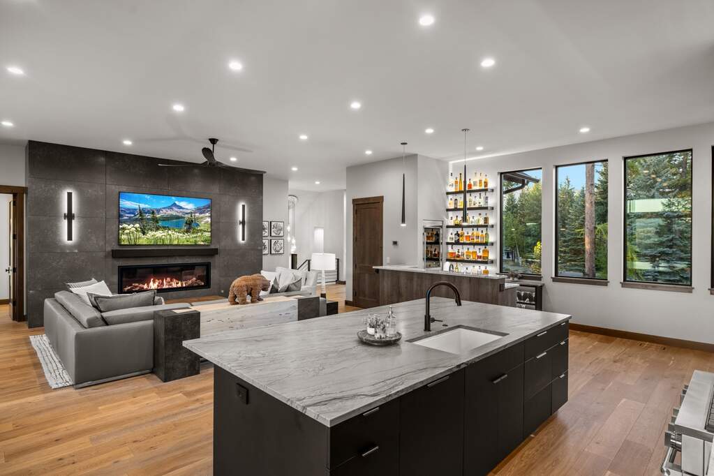Whitefish Lake Access with Boat Slip! Marina Crest Magic! Experience signature Bay Point living with assigned boat slip #38. Completed in 2023, this immaculate 3,741-square-foot residence offers five bedrooms (all ensuite), 5 bathrooms with heated flooring, and an additional powder room, creating a picture-perfect retreat within the highly sought-after Bay Point Country Estates Lake community. Offered fully furnished and turnkey, the home showcases refined interior styling with warm wood accents, modern sophistication, and meticulous attention to detail throughout. The open-concept layout is centered around a show-stopping kitchen and wet bar, complemented by a spacious Butler's pantry. Oversized windows bathe the interior with natural light, enhancing the home's bright and inviting atmosphere. The thoughtfully designed space also includes an elevator for ease of access, a generous deck for dining with filtered views of Whitefish Lake, and a bonus upper-level deck that provides abundant seating, an outdoor TV, and a hot tub, perfectly suited for entertaining or unwinding after a day on the water. Every detail has been carefully curated to support effortless living and memorable gatherings. Embracing the true Montana adventure lifestyle, the oversized heated garage offers a dedicated RV bay, supplying ample space for all your recreational pursuits. Enjoy exclusive access to your assigned boat slip (#38), along with over 500 feet of shared Whitefish Lake community frontage featuring swimming docks, a BBQ and park area, and a covered pavilion. Ideally located just minutes from downtown Whitefish and within walking distance to Whitefish City Beach, this exceptional property offers year-round recreation and the very best of lake living.