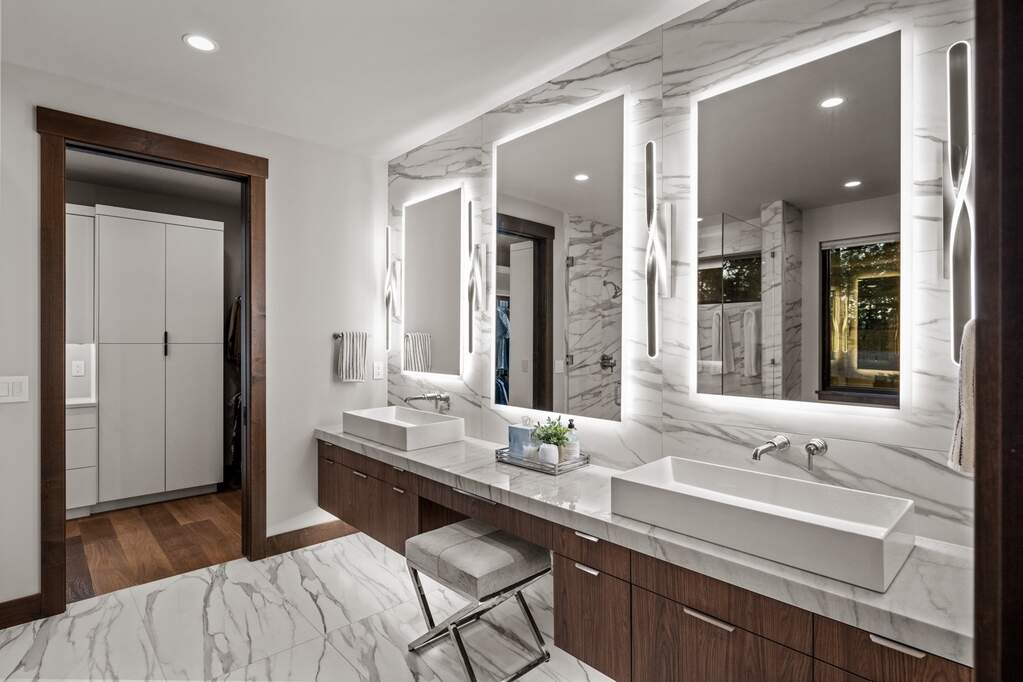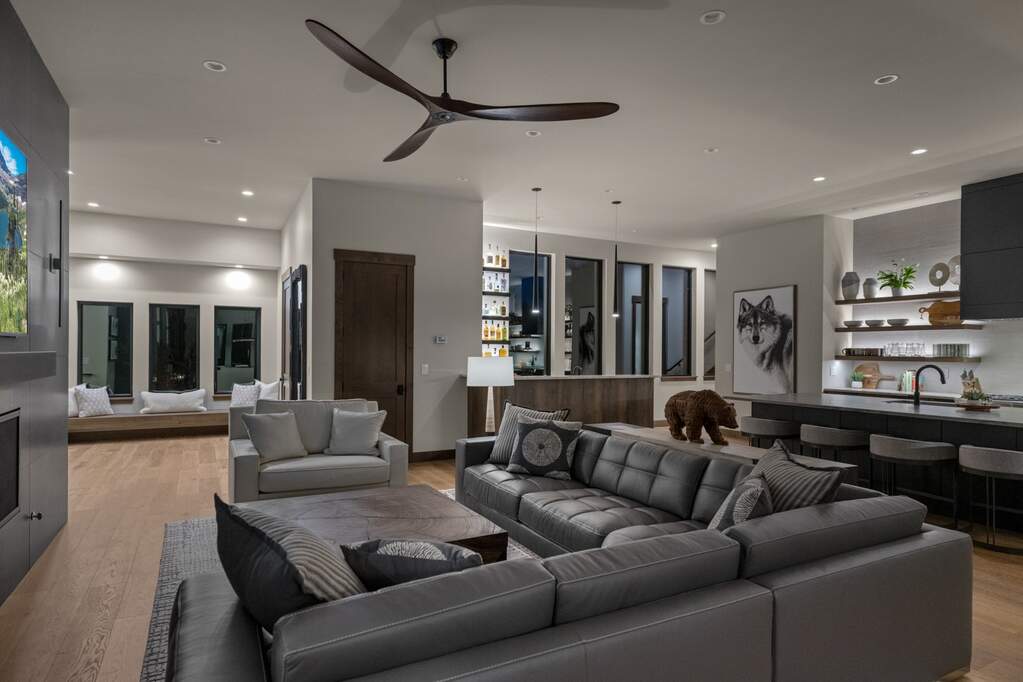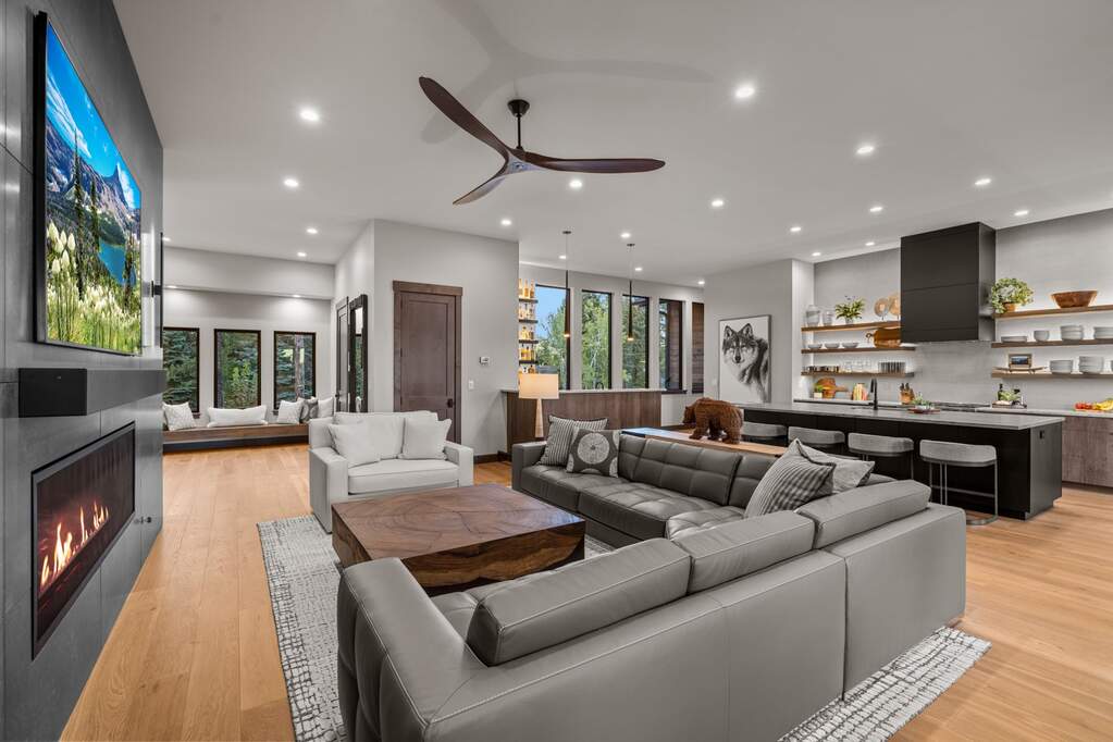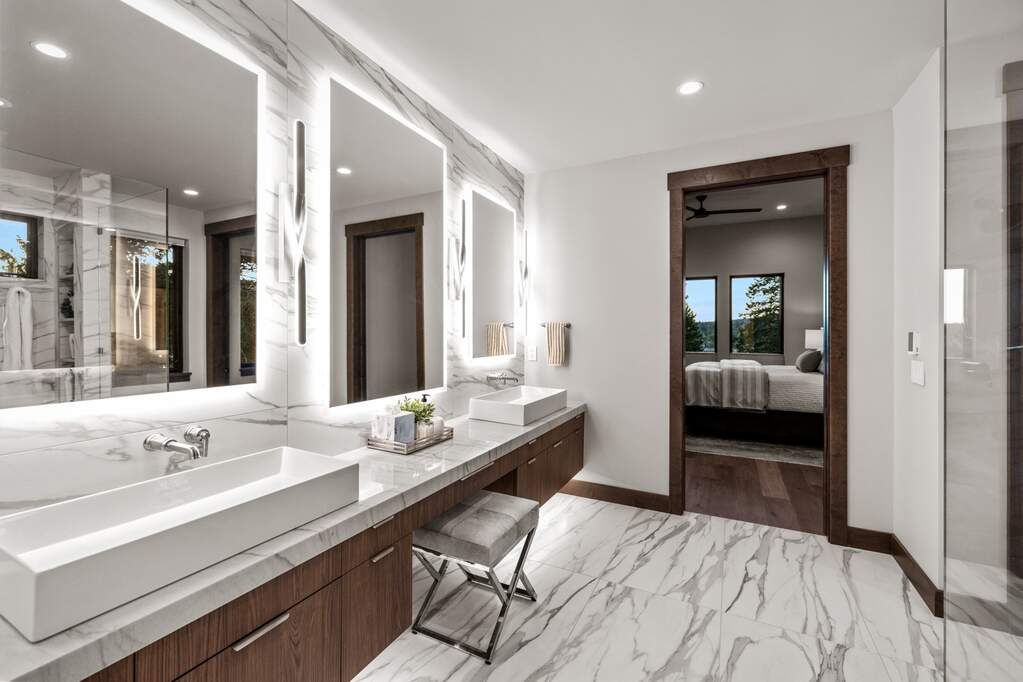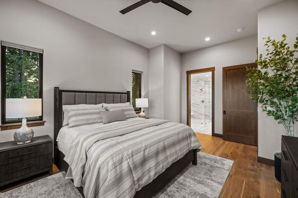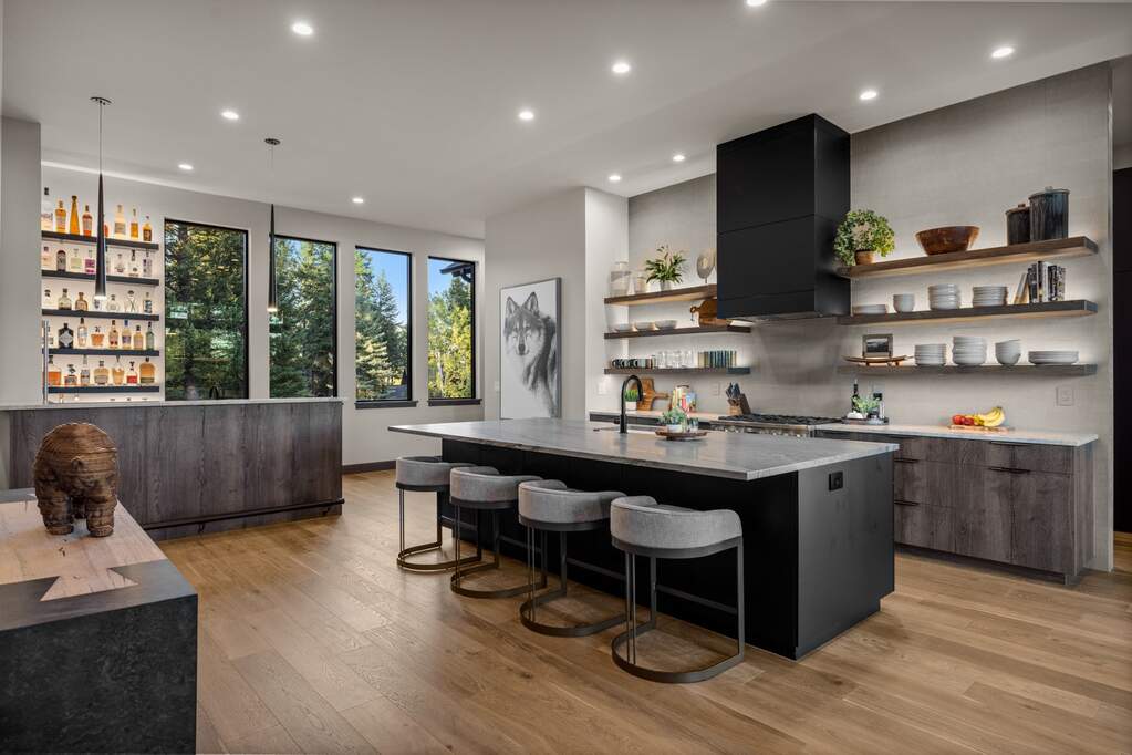 Whitefish Lake Access with Boat Slip! Marina Crest Magic! Experience signature Bay Point living with assigned boat slip #38. Completed in 2023, this immaculate 3,741-square-foot residence offers five bedrooms (all ensuite), 5 bathrooms with heated flooring, and an additional powder room, creating a picture-perfect retreat within the highly sought-after Bay Point Country Estates Lake community. Offered fully furnished and turnkey, the home showcases refined interior styling with warm wood accents, modern sophistication, and meticulous attention to detail throughout. The open-concept layout is centered around a show-stopping kitchen and wet bar, complemented by a spacious Butler's pantry. Oversized windows bathe the interior with natural light, enhancing the home's bright and inviting atmosphere. The thoughtfully designed space also includes an elevator for ease of access, a generous deck for dining with filtered views of Whitefish Lake, and a bonus upper-level deck that provides abundant seating, an outdoor TV, and a hot tub, perfectly suited for entertaining or unwinding after a day on the water. Every detail has been carefully curated to support effortless living and memorable gatherings. Embracing the true Montana adventure lifestyle, the oversized heated garage offers a dedicated RV bay, supplying ample space for all your recreational pursuits. Enjoy exclusive access to your assigned boat slip (#38), along with over 500 feet of shared Whitefish Lake community frontage featuring swimming docks, a BBQ and park area, and a covered pavilion. Ideally located just minutes from downtown Whitefish and within walking distance to Whitefish City Beach, this exceptional property offers year-round recreation and the very best of lake living.