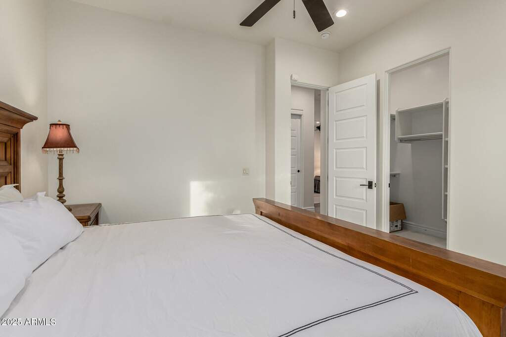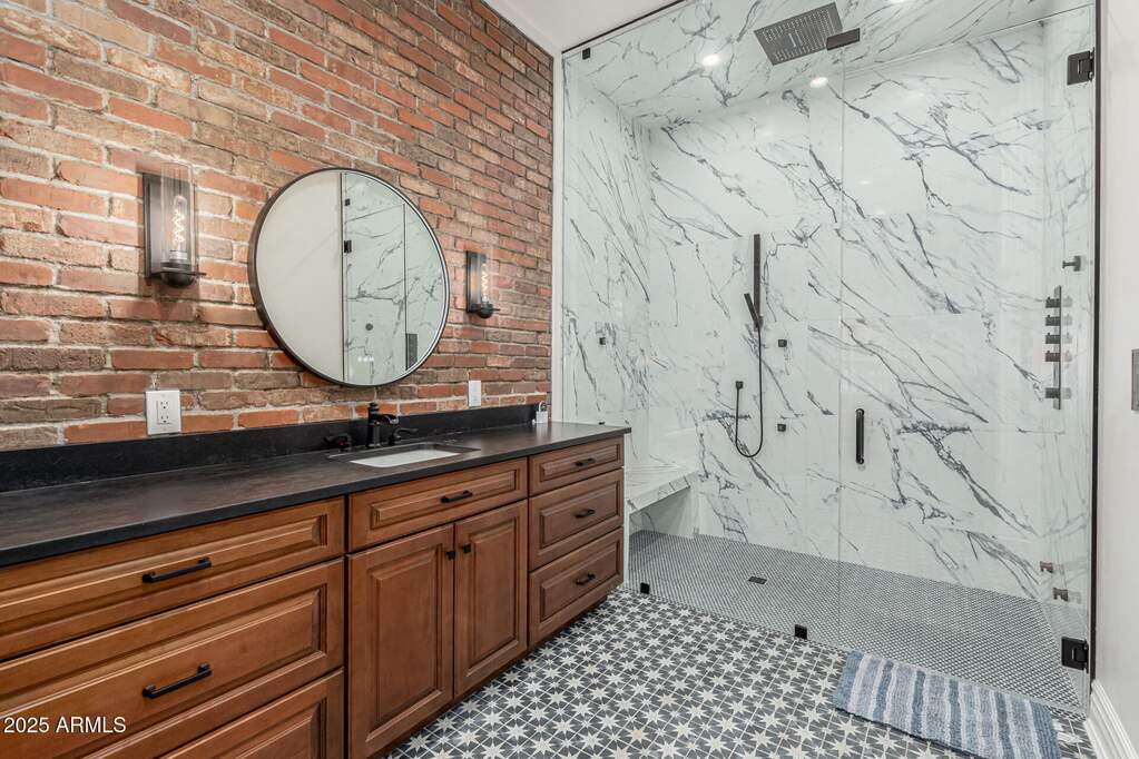 Plenty of room for the whole family! This Santa Barbara-style estate offers tons of space and charm - conveniently located just minutes to Old Town or Kierland/ SQ. Situated on a prime corner lot, this 6-bedroom, 6-bath, 6,945 sq ft residence features arched doorways, soaring ceilings, and rich traditional details throughout. Designed with multiple living areas, wet bars, and an in-home theater, this residence comfortably accommodates a large family or multi-generational living. The expanded primary suite is a true retreat with dual wings - one offers a custom walk-in closet with washer/dryer, soaking tub, dual vanities, and a private bidet room. The other wing includes a massive steam shower, bidet, wet bar, walk-in closet, and a private office/lounge with direct backyard access. The open-concept main living room with fireplace flows into a charming breakfast nook and formal dining room with exposed beams, while the chef's kitchen offers a Sub-Zero refrigerator, double ovens, gas cooktop and pot filler. Outside you will find a resort-style backyard oasis, complete with a diving pool, fire pit, Alfa pizza oven, outdoor kitchen, above-ground spa, lush landscaping, synthetic turf, multiple covered patios, and a basketball court perfect for entertaining year-round. Ideally located near freeways, premier shopping, dining, this exceptional estate offers the perfect blend of space, privacy, and sophistication.