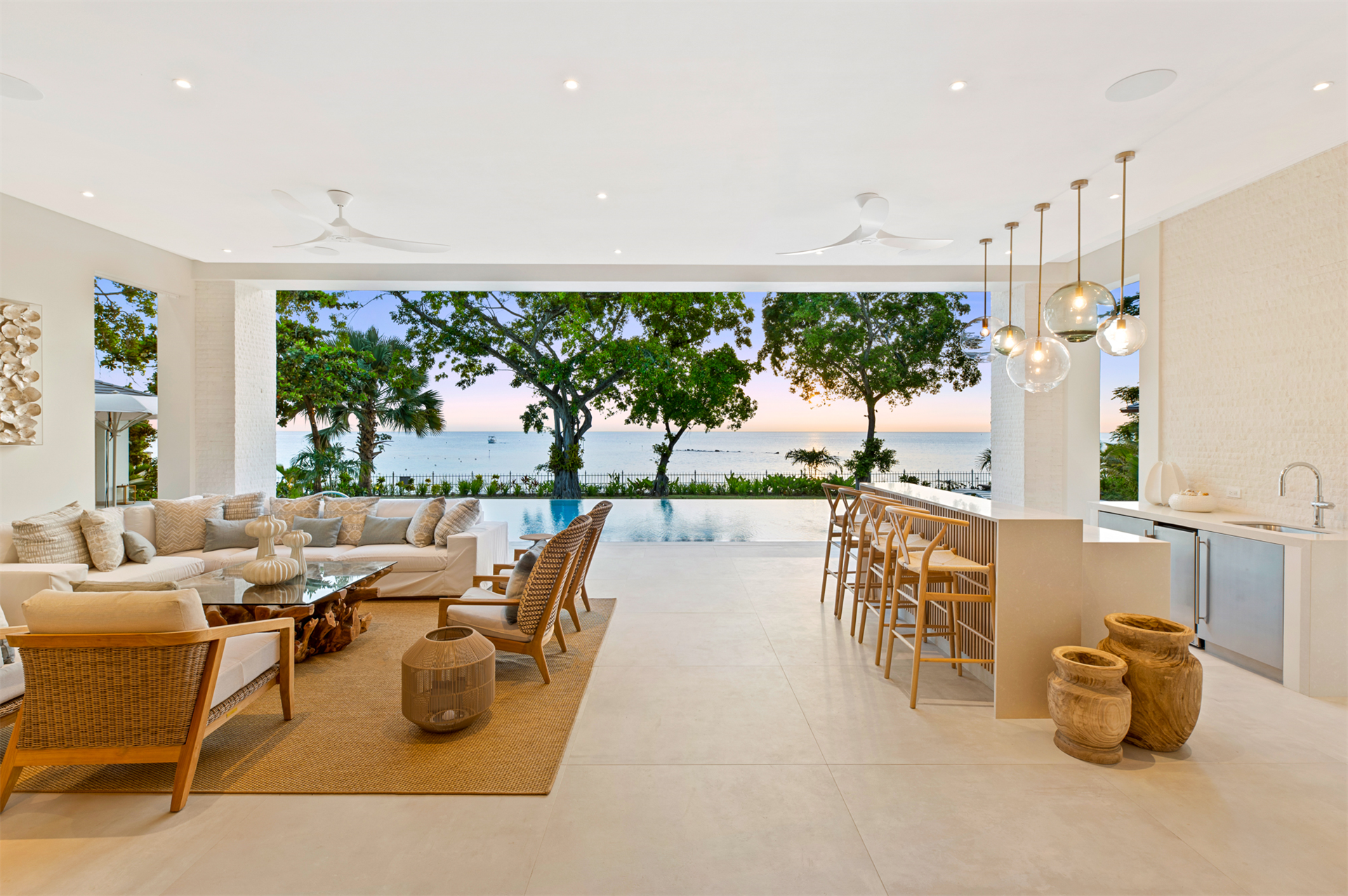 With six expansive ocean-facing bedrooms, this beachfront villa, One Beachlands, is ideal for families or those who love hosting guests. It's meticulously designed to cater to entertainment and indoor-outdoor living, featuring unique amenities like an ocean-facing private gym and a home cinema. The integrated smart home automation system adds convenience to every aspect of daily life.