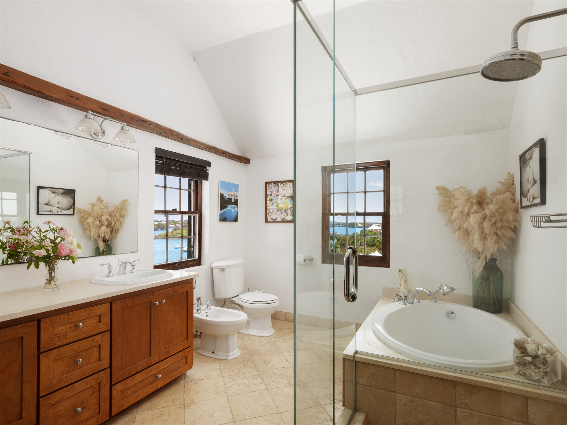 In Bermuda, the very best locations are often those occupied by the earliest homes, particularly those dating to the 17th Century when settlers had their choice of the island's prime acreage. Such is the case with Norwood, perhaps Bermuda's most iconic historical estate. The land on which Norwood now stands was deeded in the early 1600s as compensation to the English mathematician and land surveyor Richard Norwood, who was engaged by the Somers Isle Company to conduct the first survey of the entire island. Interestingly, he was also the first in the world to measure a degree of latitude. The home itself is believed to have been built later, c. 1707, by Samuel Saltus, whose family owned it for 175 years before it passed to the Darrell family (according to Bermudian lore, the Darrells won Norwood in a game of chance). Now, more than 300 years young, Norwood continues to stand -- authentic and strong -- as one of the most beautiful waterfront estates Bermuda has to offer. Set in central Pembroke Parish, just moments from the City of Hamilton with its financial district, fine dining, schools, and commercial conveniences, the 3.7-acre waterfront estate is approached by a long private drive leading from the Pitts Bay Road. The south-facing Norwood main house is designed in the cruciform shape so typical of the period. Some say it gained favour amongst superstitious settlers to ward off evil spirts. In more practical terms, the cross-shaped design takes full advantage of prevailing breezes. In any event, Norwood is perhaps the grandest of such houses and, arguably, one of the most important homes in the Western Hemisphere. Thick limestone walls, pointed gables, and stepped chimneys are also typical, as are the 'eyebrow' motifs above the windows (intended to protect the windows from rain). The deep wrap-around veranda featuring absolutely stunning harbour views is a 19th Century addition. Inside the main house with four-bedrooms, three full bathrooms and one partial bathroom, architectural standouts are the gorgeous internal cedar work, beamed ceilings, pine flooring, numerous fireplaces and blown-glass windowpanes. Other appointments tell the fascinating storey of the families who lived here for generations. Examples include the newel posts on the staircase, which were removed and replaced with candles in the evenings and on festive occasions; powdering rooms - now converted into alcoves- where colonial ladies and gentleman once powdered their wigs; and a massive cedar fireplace, intricately carved by Boer war prisoners who were held in Bermuda in the 19th Century. Despite the rich history, this home offers plenty of luxury and convenience. Renovations over the last 20 years by the current owners have brought Norwood up to date while respecting its period character. The main house is flanked by Norwood Mews (a charming one-bedroom guest apartment) , the Carriage House (comprising a recently renovated studio apartment plus a large garage) and the Stable with its tack room and multiple stalls. The grounds include the large paddock (formerly a tennis court), a swimming pool, beautiful old stone walls, gardens, and orchards. Ideal for boaters, the Norwood property includes a wonderful private peninsula with a deep water dock extending into the harbour plus a registered mooring in the protected bay. On the sandy site of the old bath house is a perfect protected spot for barbecuing and sea swimming. This property is available to International Purchasers, as well as Bermudians, PRC Holders, and British Overseas Territory Citizens deemed to 'belong to Bermuda'.