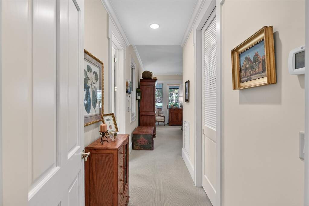 From the moment you step inside, the home feels like a place with a story-one written with intention, craftsmanship, and quiet elegance. Sunlight spills across heart pine floors as you wander through the airy, open layout, each room offering a soft nod to English Country charm. Subtle brick accents, wainscoting, and rich textures whisper of timeless design, the kind you'd expect to find in the pages of Architectural Digest. Designed by local architect Mike Stauffer. You imagine mornings in the custom-crafted kitchen, where every cabinet and detail reflects the owner's meticulous vision. Afternoons unfold in the garden room or on the screened porch, both perfectly positioned to frame peaceful views of the Long Point golf course-your backdrop for coffee, conversation, or simply a pause from the day. Upstairs and down, the home feels pristine yet welcoming, thoughtfully designed yet warm. It's the kind of place where understated elegance isn't just a style-it's a way of living. A one-of-a-kind retreat that blends comfort, craftsmanship, and beauty in every corner. Room for a pool.