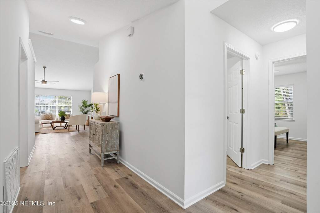 Welcome to this beautifully updated 3-bedroom, 2-bath home with an office in the highly desirable Sanctuary community of South Jacksonville Beach. Situated on a peaceful lakefront lot, this home offers both comfort and scenic views in a private, gated neighborhood just minutes from the beach. Step inside to find brand-new LVP flooring, fresh paint throughout, and updated lighting fixtures that give the entire home a bright, modern feel. The spacious office--complete with its own fireplace--makes an ideal workspace, reading room, or flex area. Designed with accessibility in mind, the home features thoughtful handicap-accessible elements that can easily be modified if preferred. Major systems are well cared for, including a newer roof, newer HVAC, and a whole-home generator for peace of mind during storm season. Open House Thrusday 2/19 9:30 am-10:30 am Outside, the driveway and walkways surrounding the home have been upgraded with beautiful pavers, enhancing curb appeal and providing a clean, modern look. Outdoor living is effortless with tranquil lake views and plenty of space to relax and unwind. Electric awning covers most of back porch offering shade during hot days. Neighborhood amenities include nature walk along intracoastal waterway, pool area, tennis and pickleball courts. Enjoy the quiet, coastal lifestyle with the convenience of nearby shops, restaurants, and the vibrant Jacksonville Beach community. This move-in-ready home combines modern updates, functionality, and an unbeatable locationtruly a must-see!