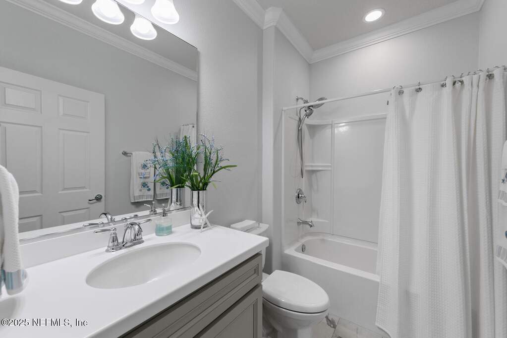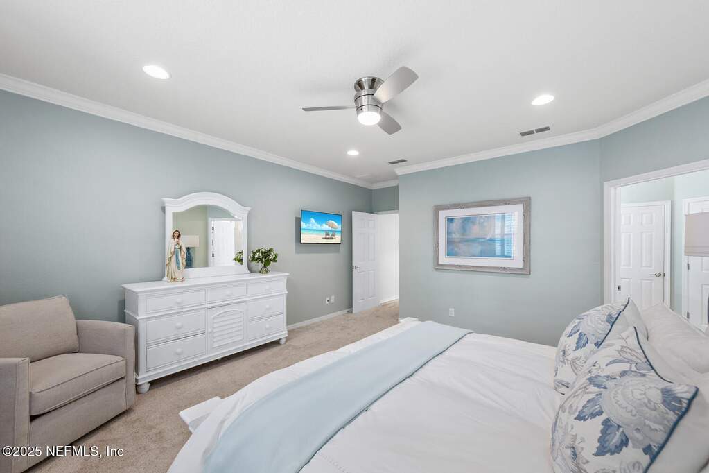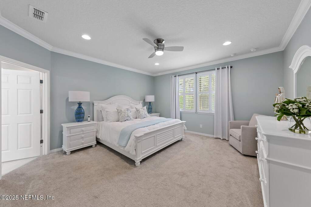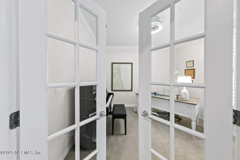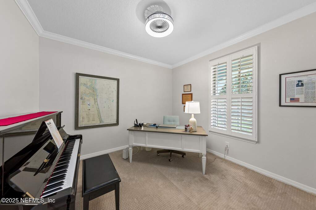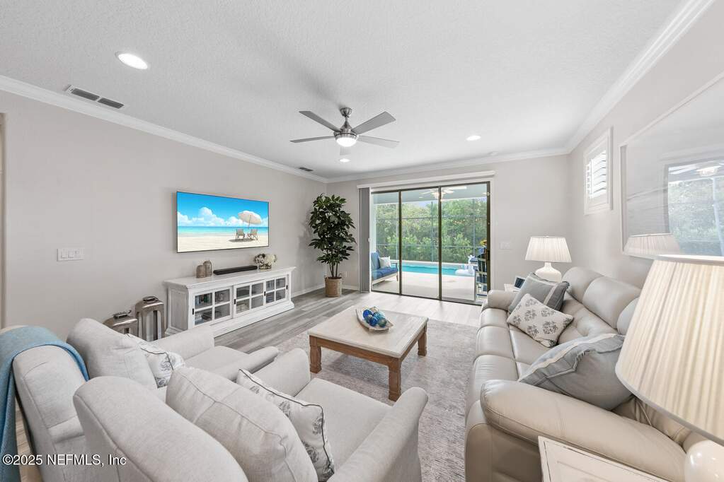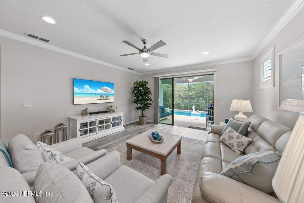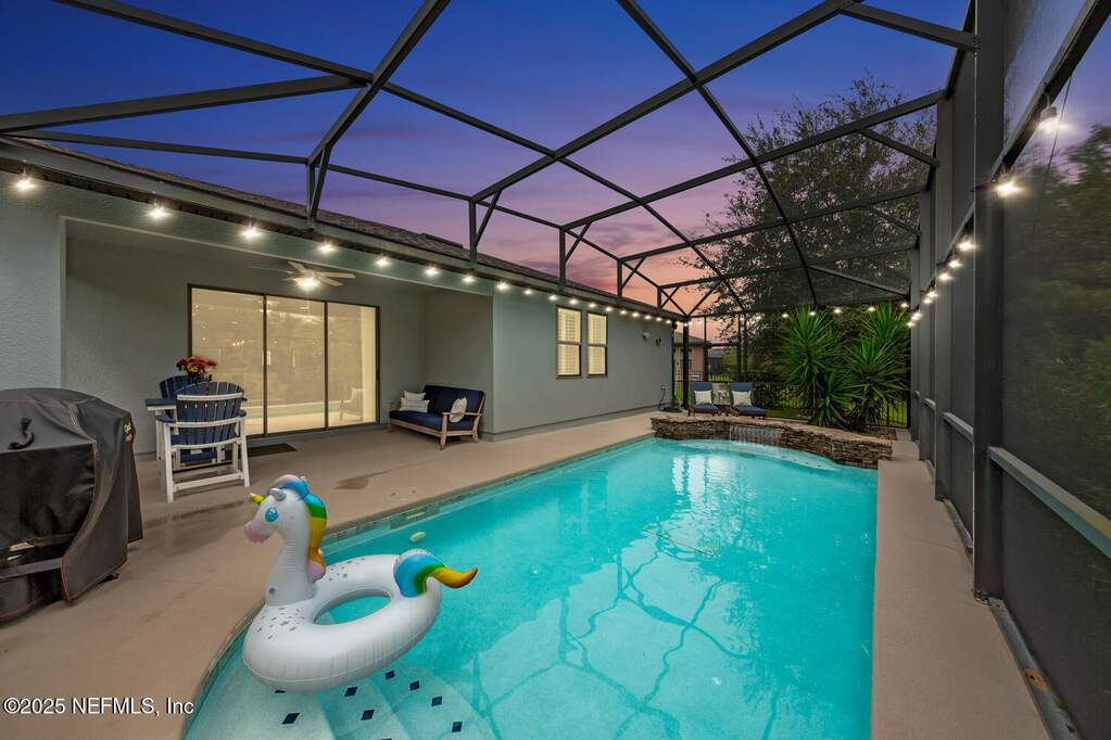 Welcome to resort living at home in sought-after Del Webb Ponte Vedra -- WHERE EVERY DAY FEELS LIKE A GETAWAY. Set on an oversized homesite, this beautifully maintained Martin Ray floor plan offers the perfect blend of privacy, comfort, and coastal elegance. Step outside to your own private screened saltwater pool with tranquil waterfall feature, surrounded by refreshed landscaping that creates a peaceful outdoor retreat ideal for morning coffee or evening gatherings. THIS LOT TRULY STANDS OUT Fresh interior and exterior paint (2023) brighten the home, while timeless plantation shutters add warmth and architectural charm. A welcoming entry leads to a private office with French doors -- perfect for working from home, hobbies, or a cozy reading space. The thoughtful split-bedroom layout provides privacy for guests with a secondary bedroom and bath tucked away, while the serene primary suite is positioned at the rear of the home. Both bedrooms feature custom closets, and a convenient drop zone near the garage entry adds everyday functionality. The tandem 2.5-car garage provides generous space for a golf cart, workshop area, or additional storage. Recent improvements offer peace of mind and true move-in readiness, including new water heater (2025), interior and exterior paint (2023), plantation shutters, irrigation extension, upgraded shower heads, new garbage disposal, dryer vent cleaning, and security system installation. This home shows like a model. Beyond your front door, life at Del Webb Ponte Vedra is exceptional. Residents enjoy resort-style indoor and outdoor pools, a state-of-the-art fitness center, pickleball and tennis courts, scenic walking trails, and a beautifully appointed clubhouse. The community is known for its vibrant lifestyle, offering dozens of clubs, interest groups, and organized activities year-round making it easy to stay active, engaged, and connected. A unique garden center allows residents to lease their own plot for a nominal fee and grow fresh fruits, vegetables, and herbs. Opportunities like this on a oversized lot, private screened saltwater pool, and the full Del Webb lifestyle are rare. Step into a community designed for connection, activity, and effortless living. Schedule your private showing today and experience it for yourself.