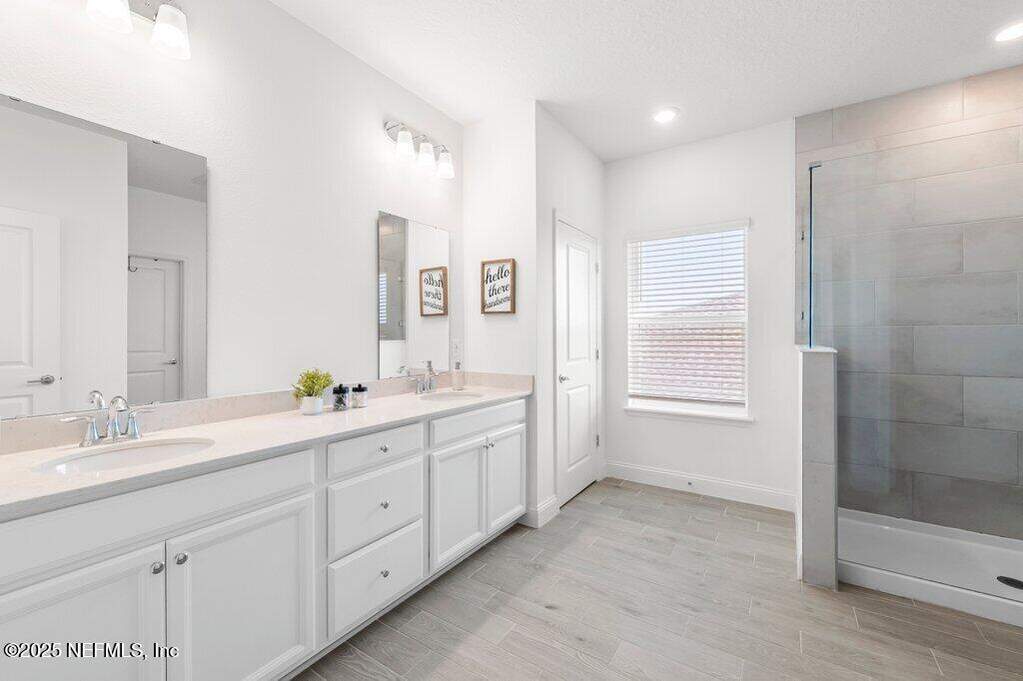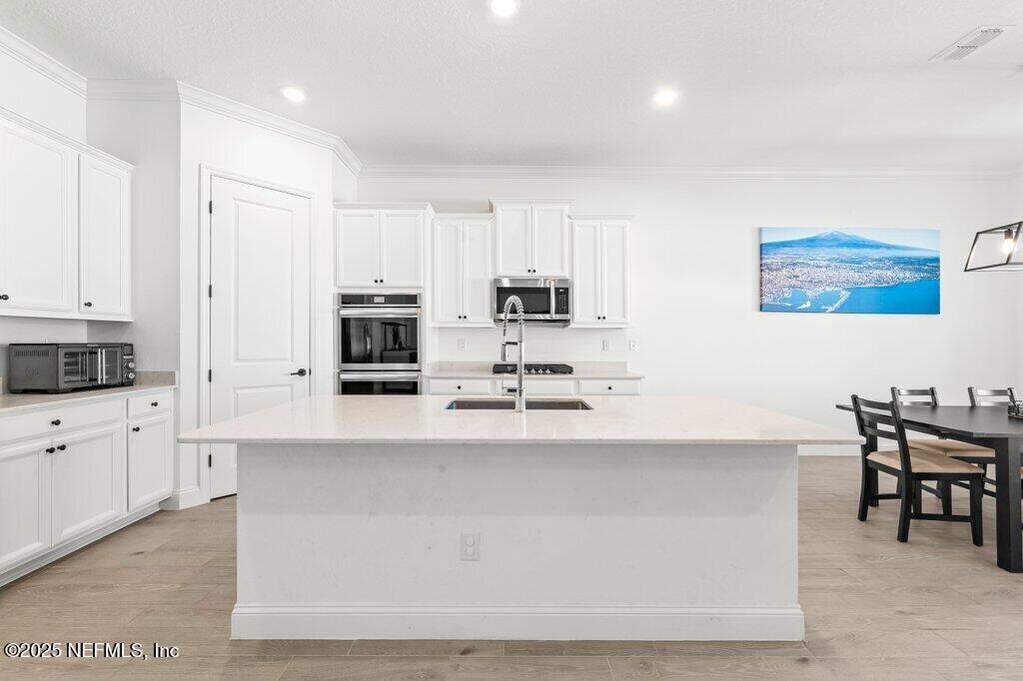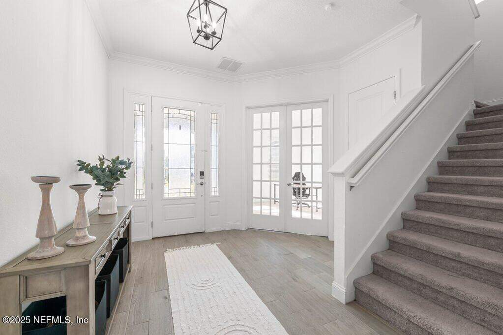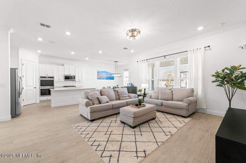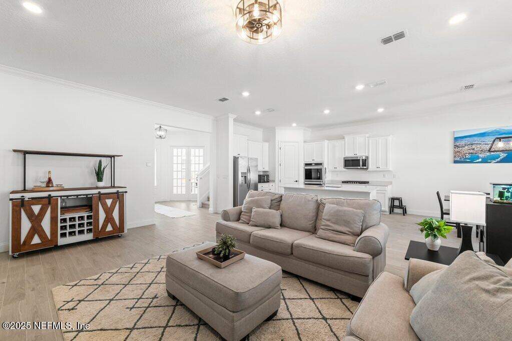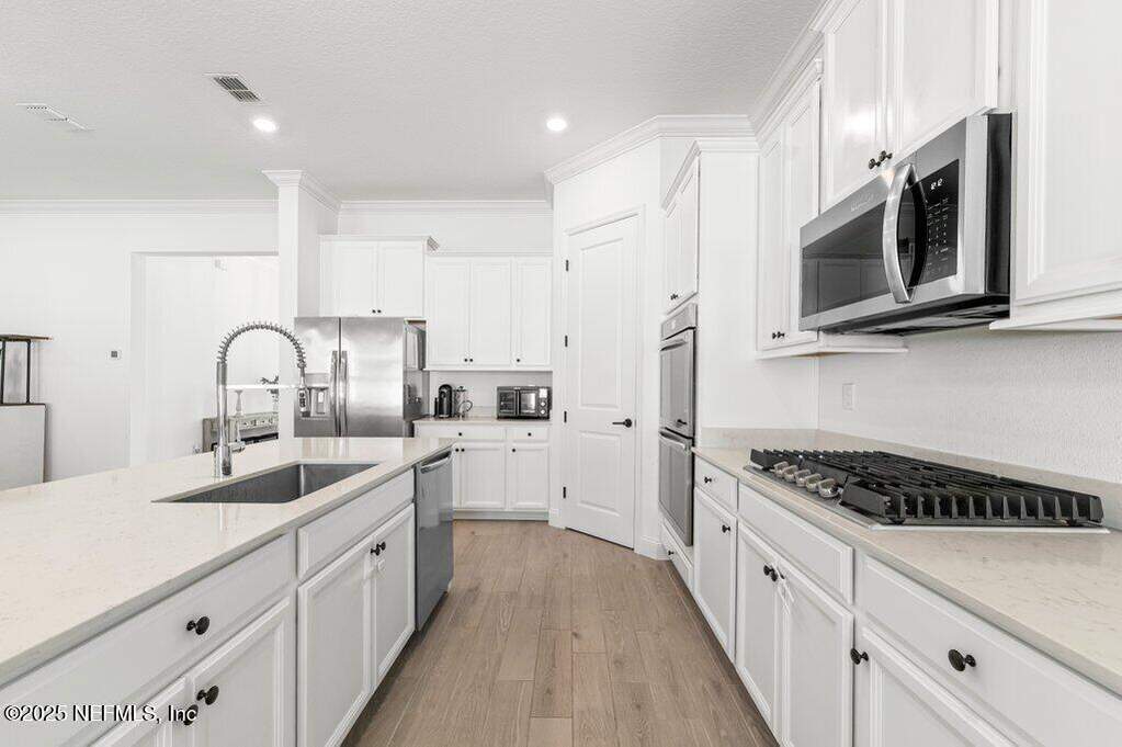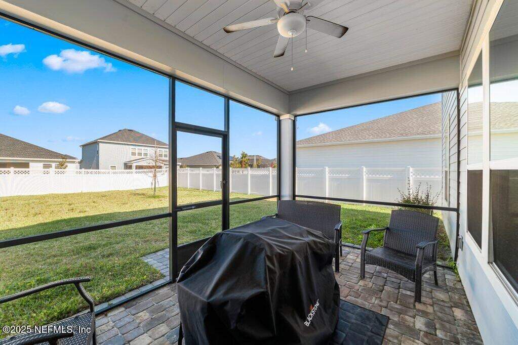 This move-in-ready home is located in SilverLeaf, one of Northeast Florida's fastest-growing communities! Designed for remote work and family life, the open concept home features a first-floor study with french doors, a spacious second-floor bonus room, and a bright open layout with white cabinetry, quartz countertops, stainless steel appliances, gas range, double ovens, and wood-look tile throughout the main living areas. 1st floor guest suite with full bath. Private 2nd floor primary suite with french doors offers a glass-enclosed shower, dual vanities, and a large walk-in closet. Two 2nd floor guest bedrooms. Enjoy the screened porch and fully fenced backyard, plus upgrades including blinds throughout, sprinkler system, gas water heater, and water softener. Short drive or golf cart ride to SilverLeaf's resort-style amenities pools, pickleball, tennis, trails, parks, and playgrounds with no CDD fees. Minutes from A-rated St. Johns County schools, shopping, and dining!