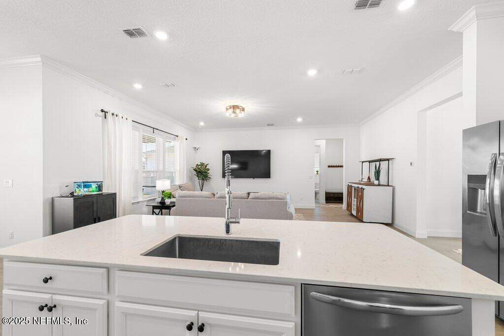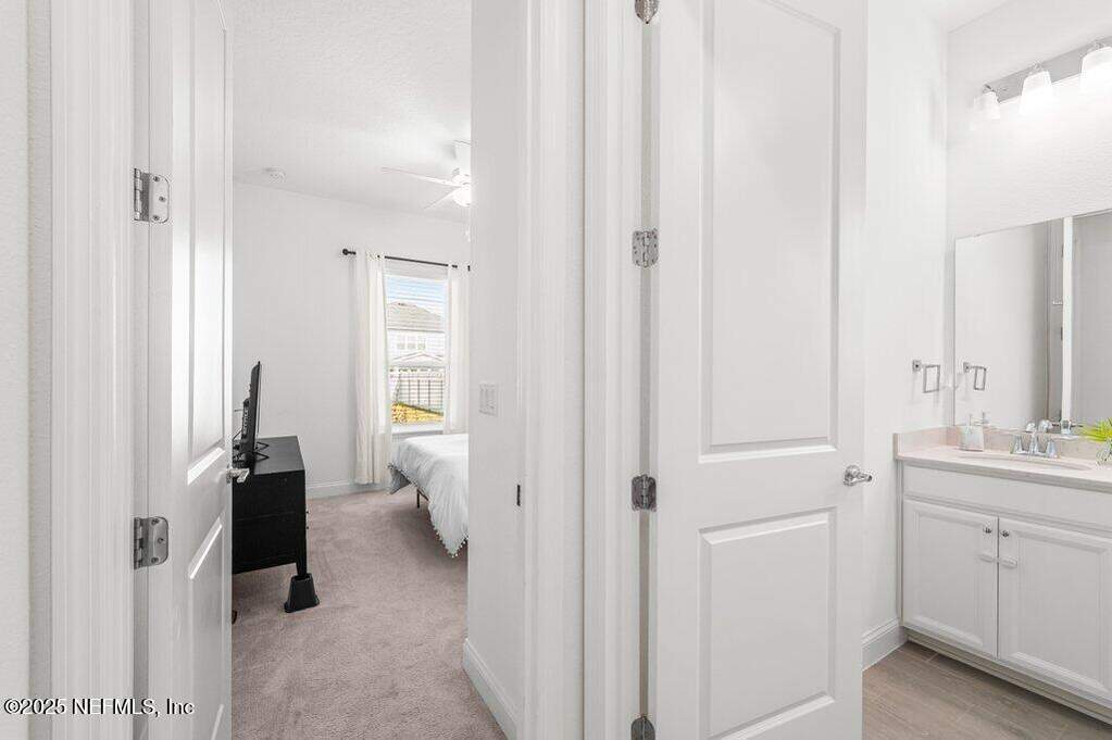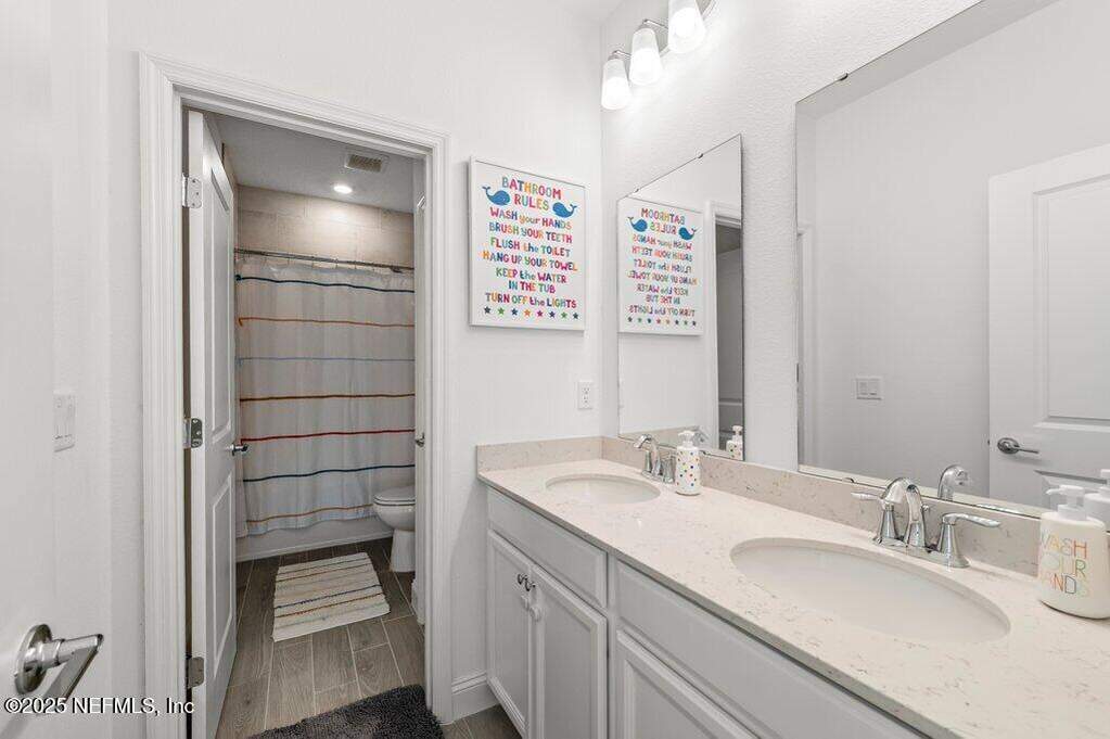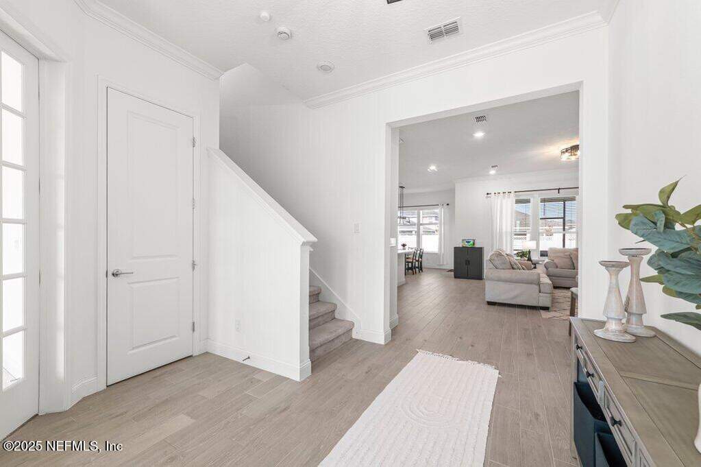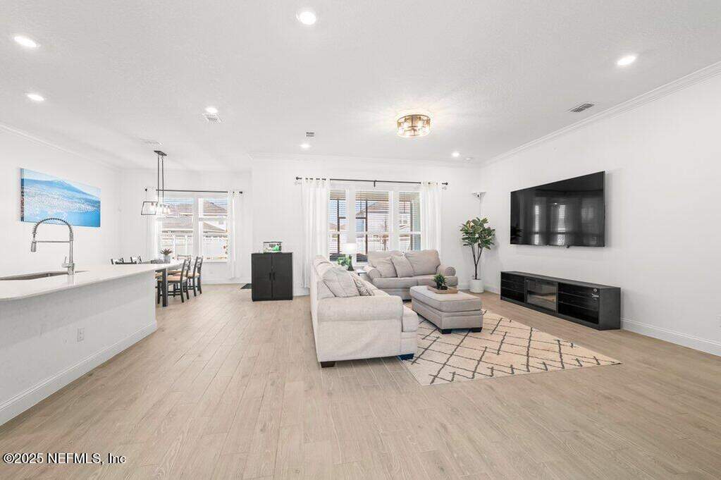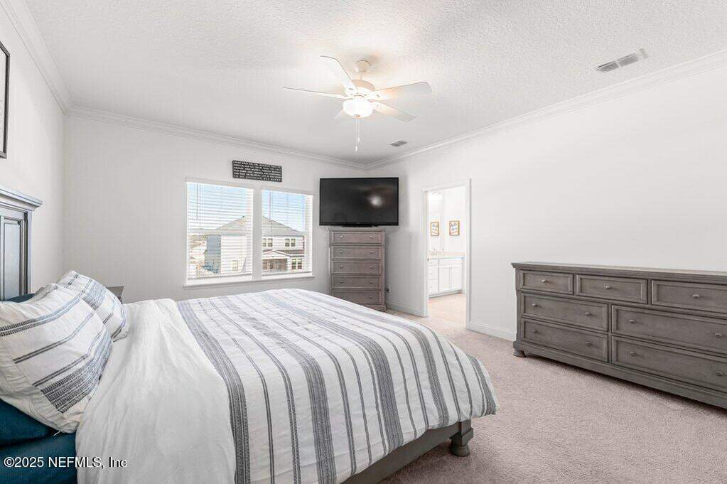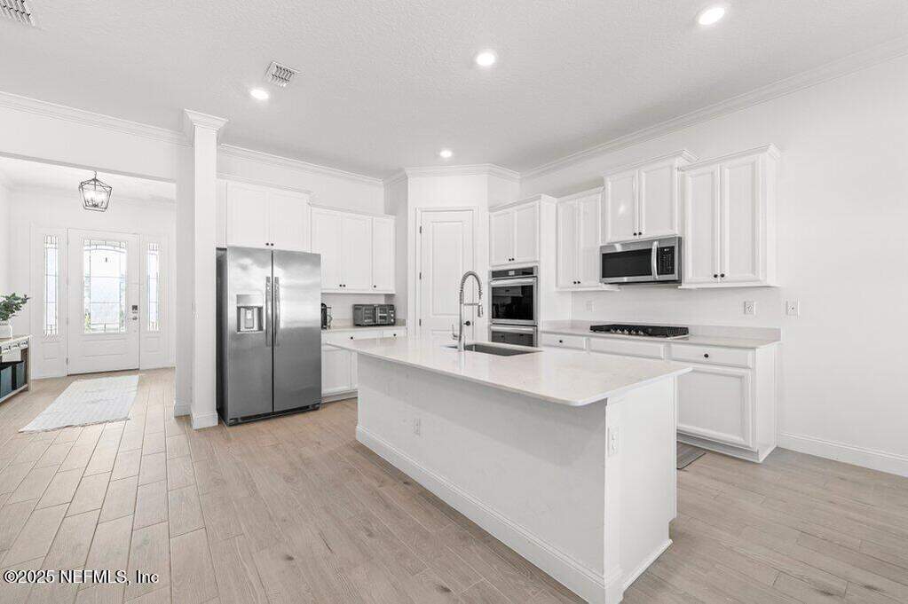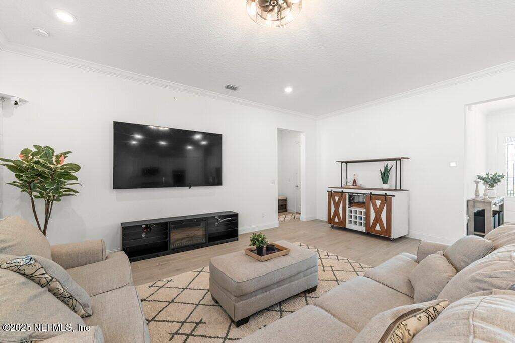 This move-in-ready home is located in SilverLeaf, one of Northeast Florida's fastest-growing communities! Designed for remote work and family life, the open concept home features a first-floor study with french doors, a spacious second-floor bonus room, and a bright open layout with white cabinetry, quartz countertops, stainless steel appliances, gas range, double ovens, and wood-look tile throughout the main living areas. 1st floor guest suite with full bath. Private 2nd floor primary suite with french doors offers a glass-enclosed shower, dual vanities, and a large walk-in closet. Two 2nd floor guest bedrooms. Enjoy the screened porch and fully fenced backyard, plus upgrades including blinds throughout, sprinkler system, gas water heater, and water softener. Short drive or golf cart ride to SilverLeaf's resort-style amenities pools, pickleball, tennis, trails, parks, and playgrounds with no CDD fees. Minutes from A-rated St. Johns County schools, shopping, and dining!
