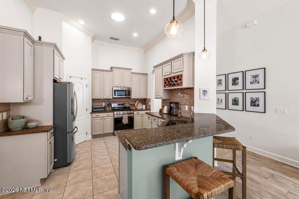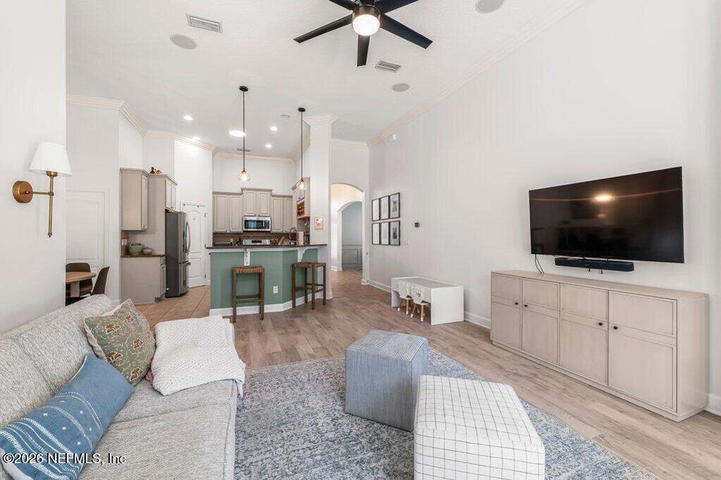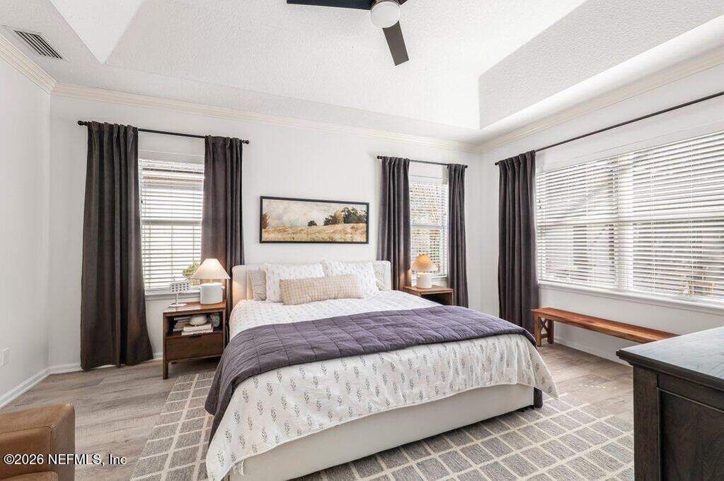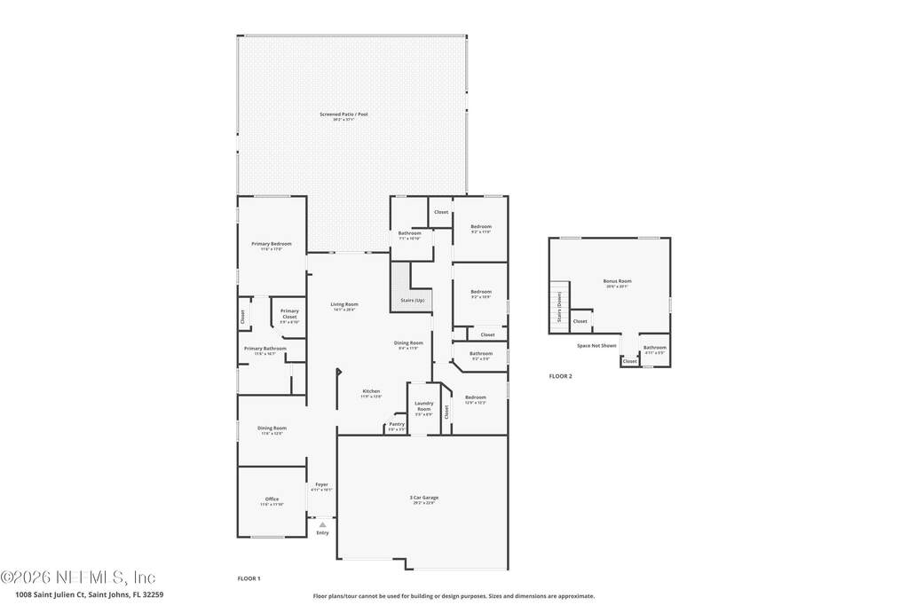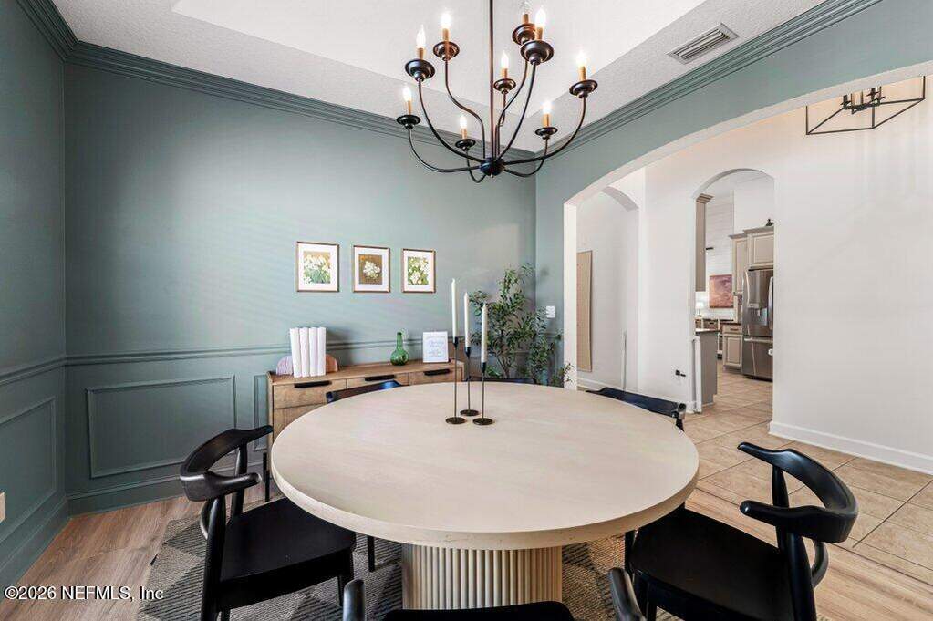 Beautifully updated pool home on a cul-de-sac in the highly sought-after St. Johns Forest community! Home features 12-foot ceilings and 5 bedrooms plus a dedicated home office or flex room; Upstairs shows as a media/play room or private guest retreat (BDR 5). Enjoy outdoor living with a large solar heated salt pool with privacy screen enclosure pool bath and fully fenced backyard. You'll have peace of mind with many recent upgrades including a brand new pool salt system, pool pump, newer kitchen appliances, newer roof, water heater, water softener, ceiling fans and light fixtures, newer HVAC systems with smart thermostats. Spacious master and primary bathroom renovated with tile glass shower. Located in the heart of St. Johns. Easy access to shopping, dining, parks, and major highways. Community has a 24/7 manned security gate - amenities include clubhouse, pool, playground and tennis courts. HOA includes internet. This home is a rare find in one of the area's most desirable zip codes!