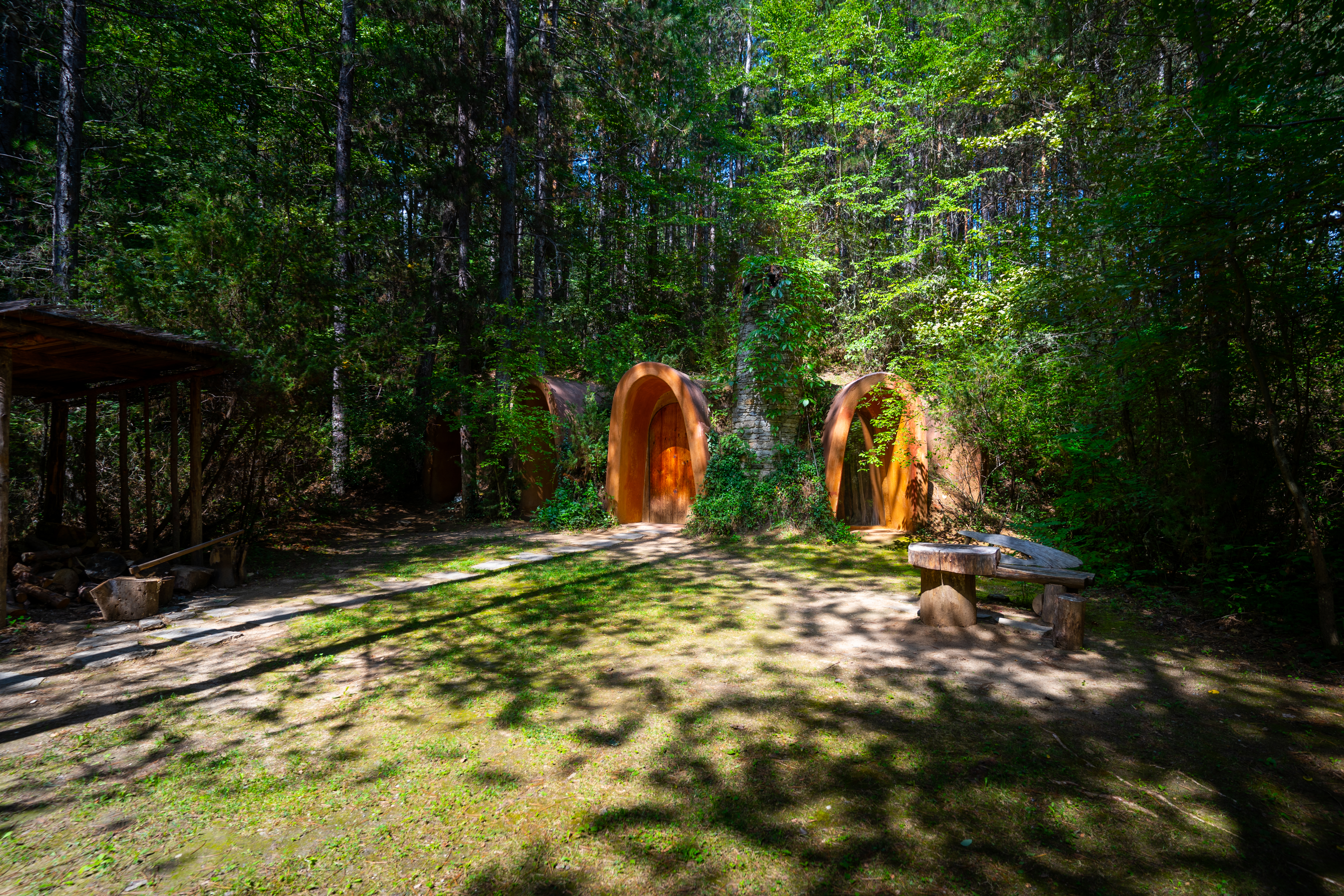 The eco-village Omaya consists of 7 uniquely designed houses, crafted entirely from natural materials such as stone, clay, and wood. Each house is a masterpiece of imagination as if taken straight out of a fairytale. The complex spans an impressive 500 decares (approximately 50 hectares), surrounded by dense forests, colourful meadows, and natural lakes.