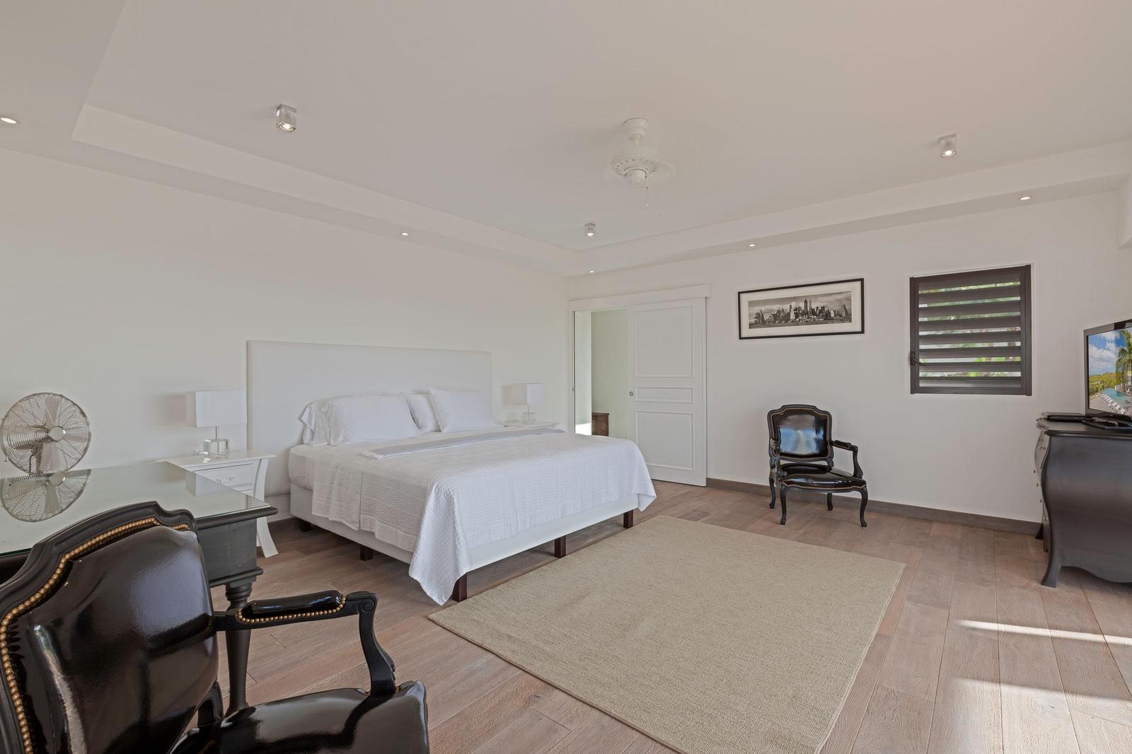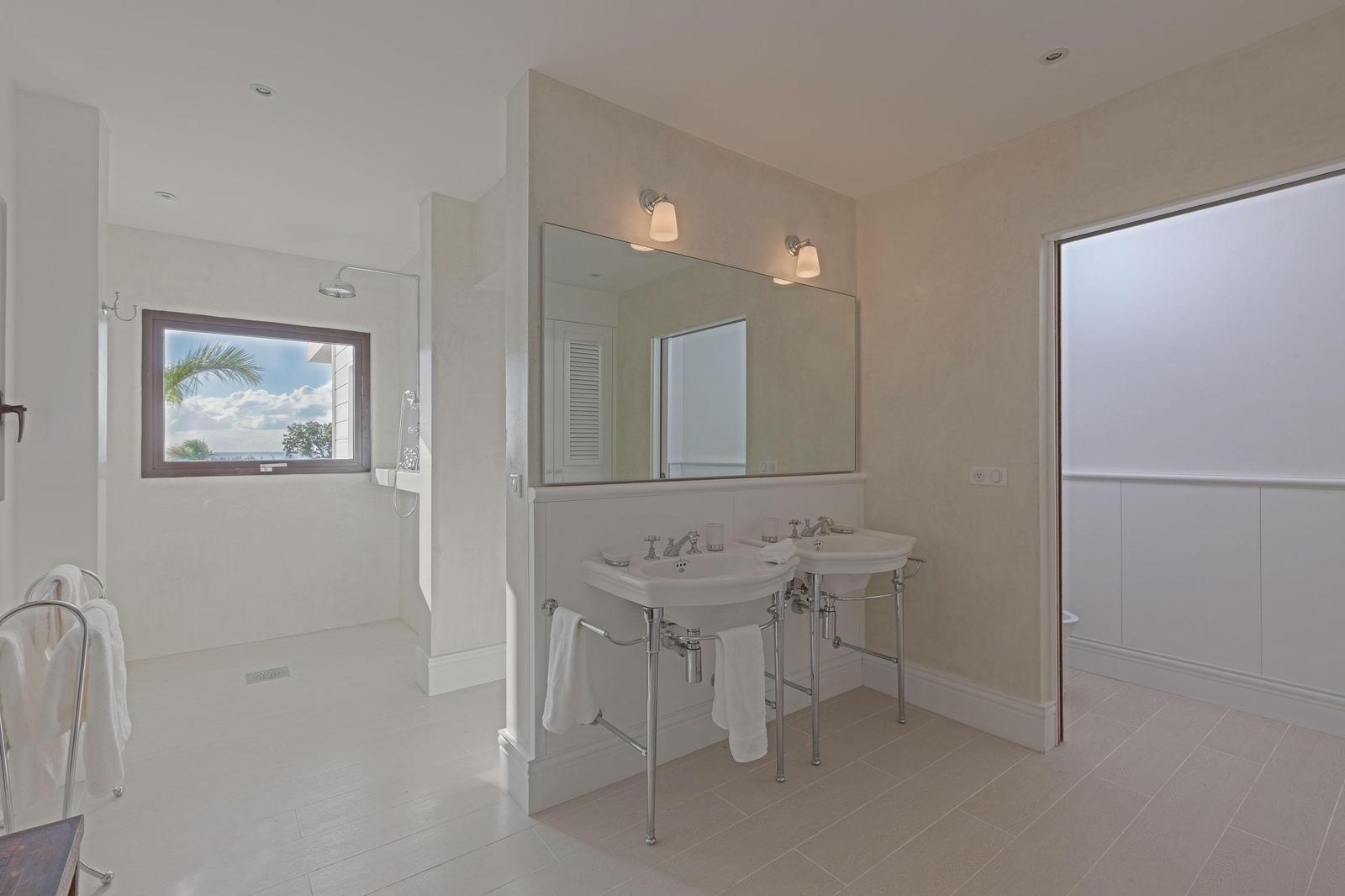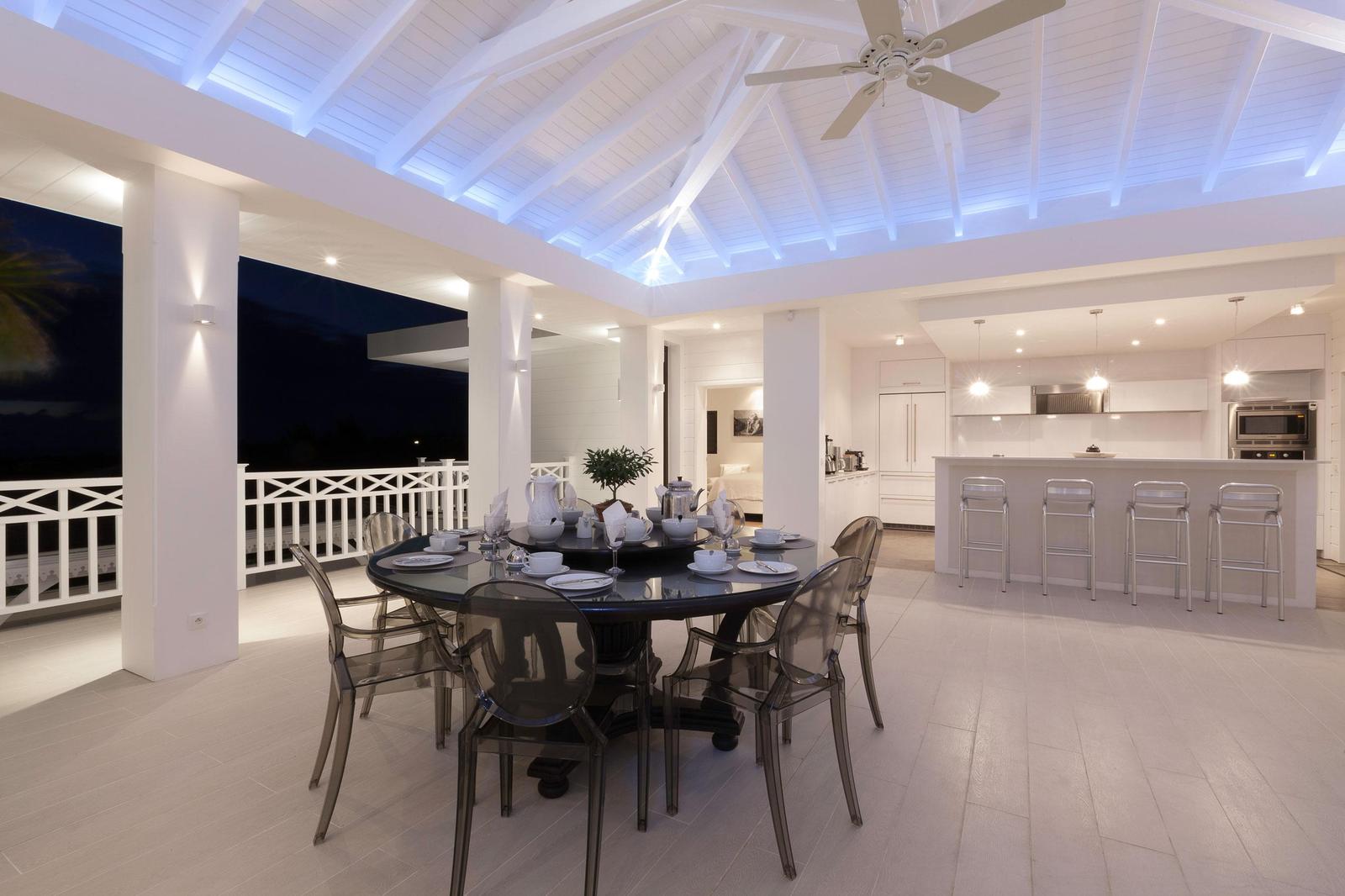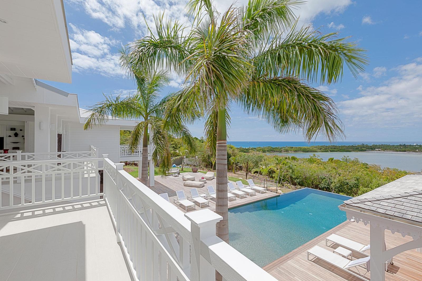 Villa Always completely renovated into a fabulous 6 bedrooms property.Built on 2 levels accommodating 6 bedroom suites, the residence has a vast living/dining area and gourmet kitchen and a large pool and deck with pool side gazebo.The main level accessed over a small bridge and water feature, houses the stunning white interior spaces of the living/dining area and gourmet kitchen completely open on one side to the fabulous ocean sunset view and view over the pool area. Flanking the living area on either end are two palatial bedroom suites each with king –size beds, private balconies overlooking the pool terrace and Victorian style en-suite bathrooms.A grand staircase descends from the main level to an extensive deck with a large infinity pool and shaded gazebo with outside dining and lounging area. The four remaining bedroom suites each with an en-suite bathroom open off the pool terrace.Villa Always St Martin is within minutes of the beautiful Terres Basses beaches.