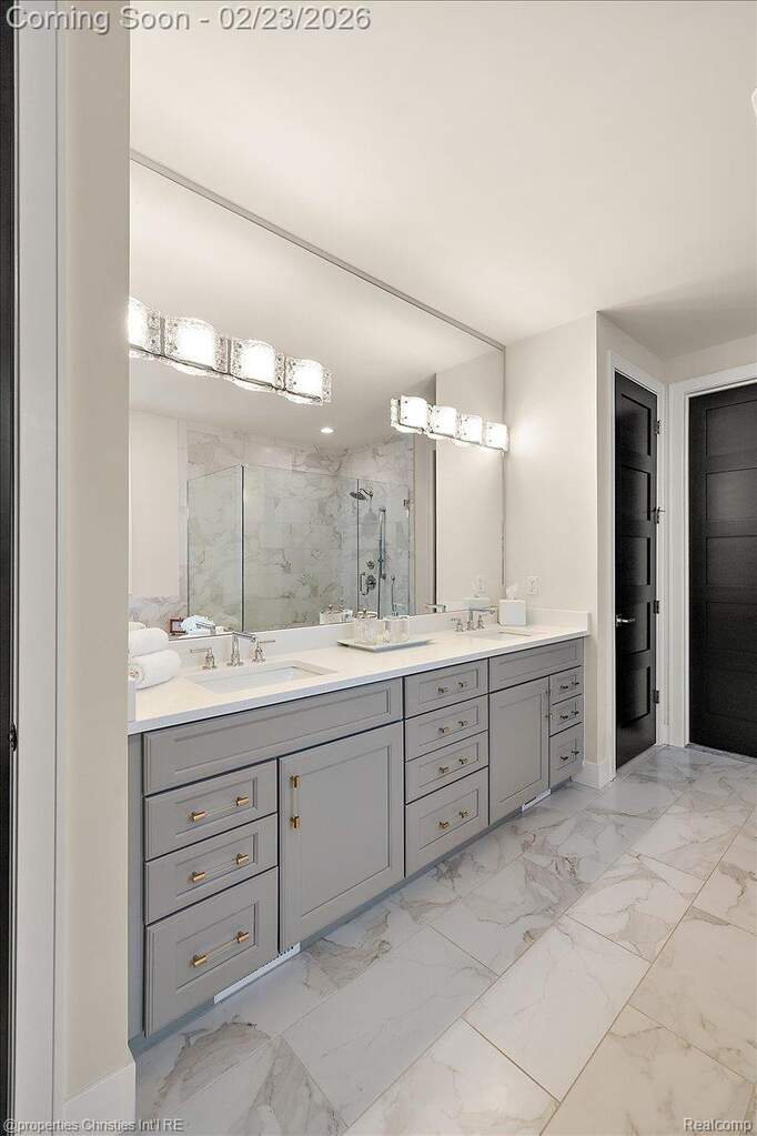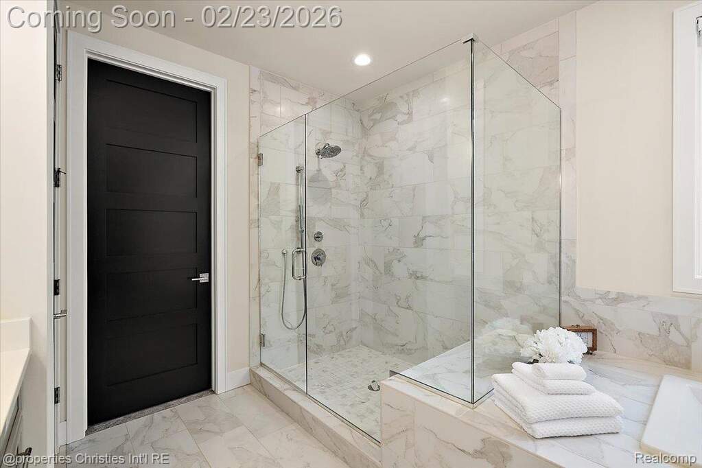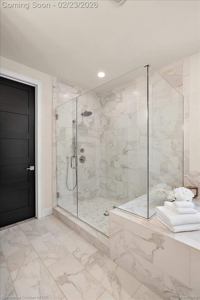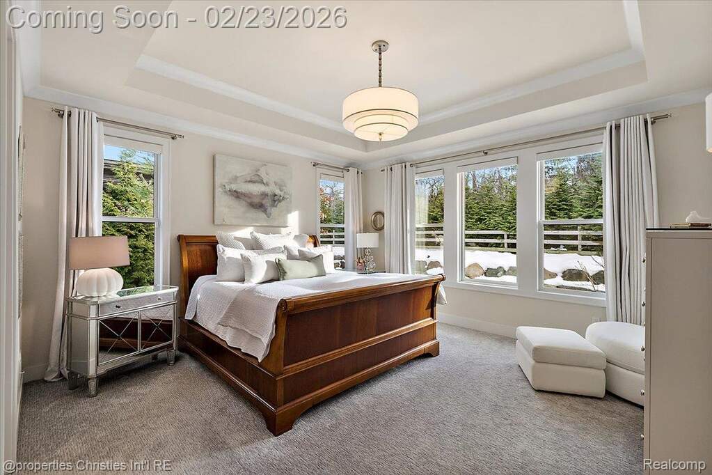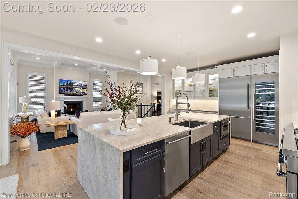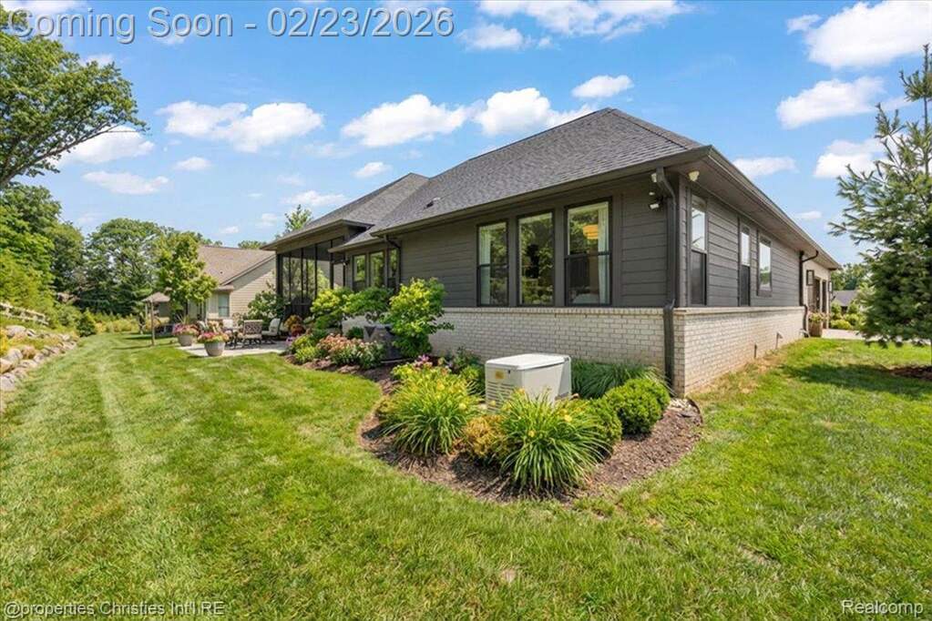 Experience luxury, comfort, and thoughtful design seamlessly woven throughout this exceptional ranch-style home. Soaring ceilings, upscale finishes, and meticulous craftsmanship create an impressive atmosphere from the moment you step inside. The chef's kitchen takes center stage with its expansive island with waterfall edges, upgraded cabinets, premium SS Thermador appliances, premium stone surfaces, and custom woodwork, opening directly to an elegant family room featuring a striking marble-surround fireplace and tray ceiling. A private office provides the ideal setting for remote work, offering both functionality and refined style. The stunning three-season room is sure to become a favorite, showcasing serene views of beautifully landscaped natural surroundings and leading to a bluestone patio with two gas grilling options-perfect for entertaining. The luxurious primary suite feels like a private retreat, complete with two spacious walk-in closets designed and installed by California Closets and a spa-like bathroom offering dual vanities, a large walk-in shower, and a separate soaking tub. A second bedroom includes its own ensuite with similarly high-end finishes. Enjoy true main-floor living in this low-maintenance home designed for comfort without compromising on style and including plantation shutters throughout the main level. The expansive lower level is ready for the next owner's vision, offering 10-foot ceilings, a daylight window, plumbing for a full bath, and heating distribution for multiple zones. Additional highlights include upgraded French doors to patio, upgraded Gutters and Downspouts, custom crown and trim detail throughout, a Sonos sound system, security system, epoxy-coated garage floor, and a Generac whole-house generator. Situated in a desirable community with access to scenic walking paths, this home offers far more than a place to live-it offers a lifestyle. Impeccably designed, beautifully maintained, and truly move-in ready. A rare gem.