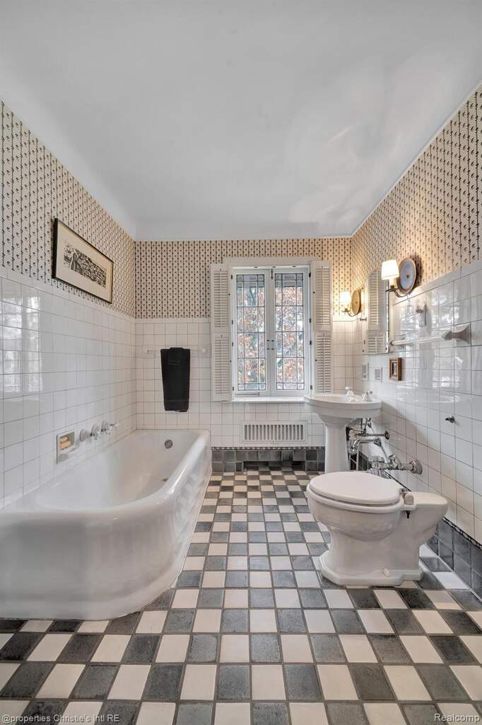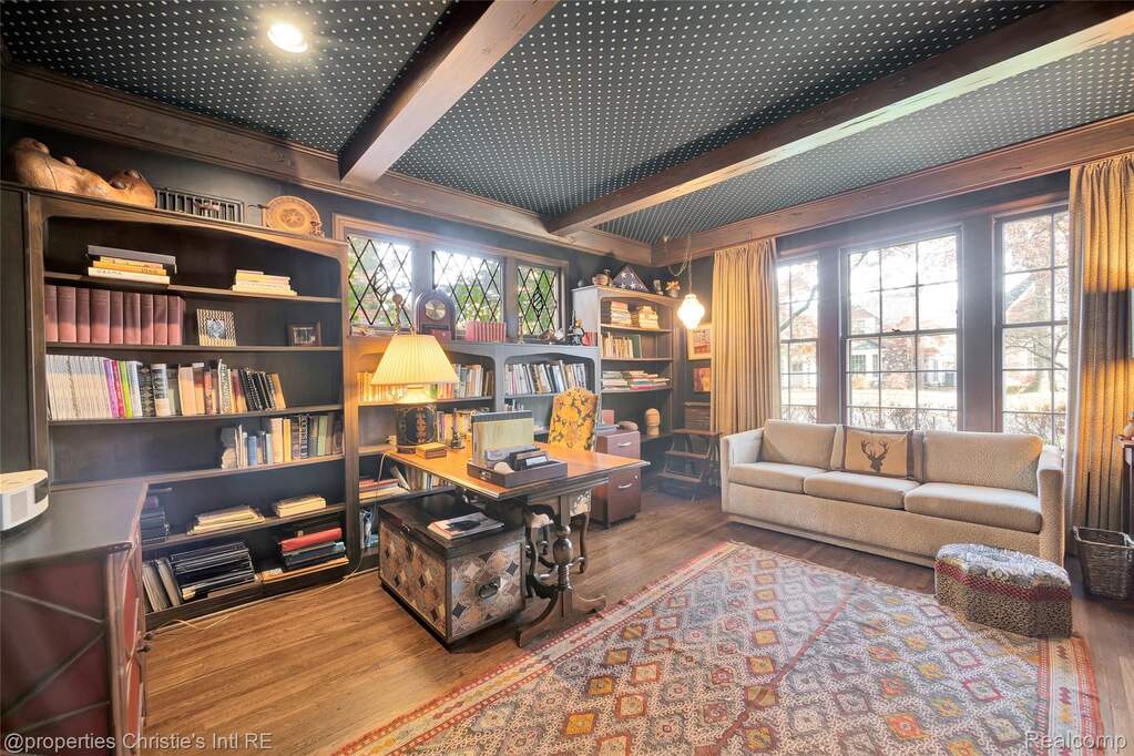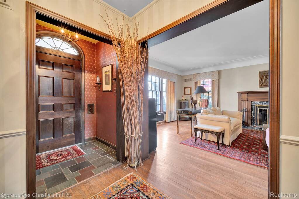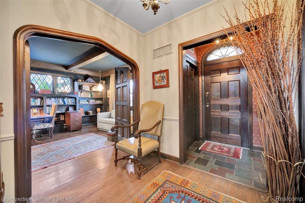 First offering in over 40 years for this stately yet charming English country home in the desirable historic Sherwood Forest neighborhood. Lovingly maintained by its caring owners, this welcoming home is replete with originality and warmth. Beautiful woodwork, art tiling and plasterwork throughout lend deeply to the value of this architectural gem! The expansive living room with its large, natural fireplace connects to the formal dining room through impressive arched paneled doors. From the lovely dining room are French doors opening to the art-tiled enclosed porch. The spacious kitchen was updated with intention to blend with the style and history of the home. An elegant powder room lies between the kitchen and dining room; and, completing the main floor is the wonderful library with its beamed ceiling and leaded glass windows --- the perfect haven for relaxion and reflection. Upstairs are three large bedrooms with two bathrooms, the huge primary with a sizable dressing room and private art-tiled bath. On the 3rd floor are two more bedrooms with another full bathroom. The basement boasts a huge recreation room and a super-cool "prohibition-era" wet bar, both perfect for informal entertainment. There is also a practical half-bath downstairs as well. The professionally designed garden in back hints of centuries-old estates in England, and the garage still boasts its functioning original doors. Come make this wonderfully kept masterpiece yours!!