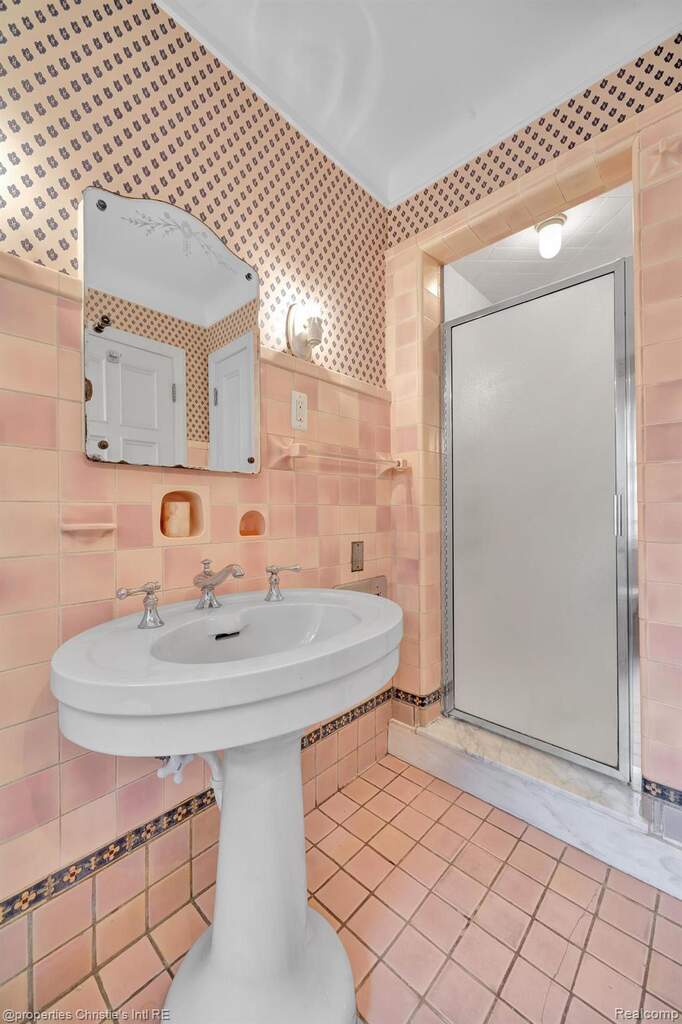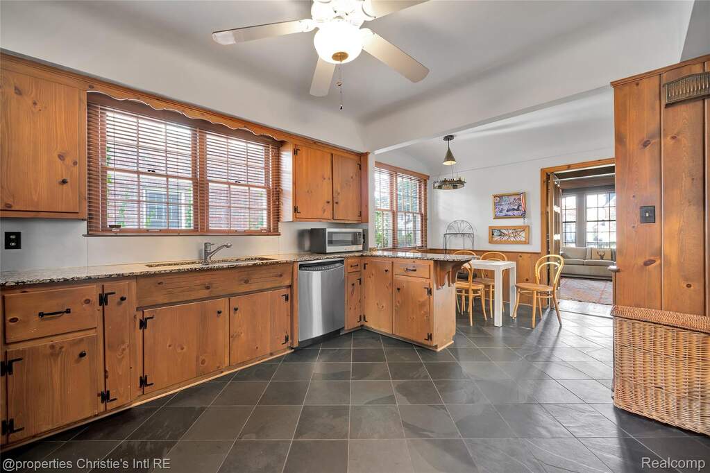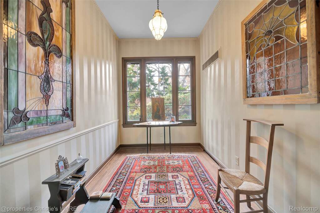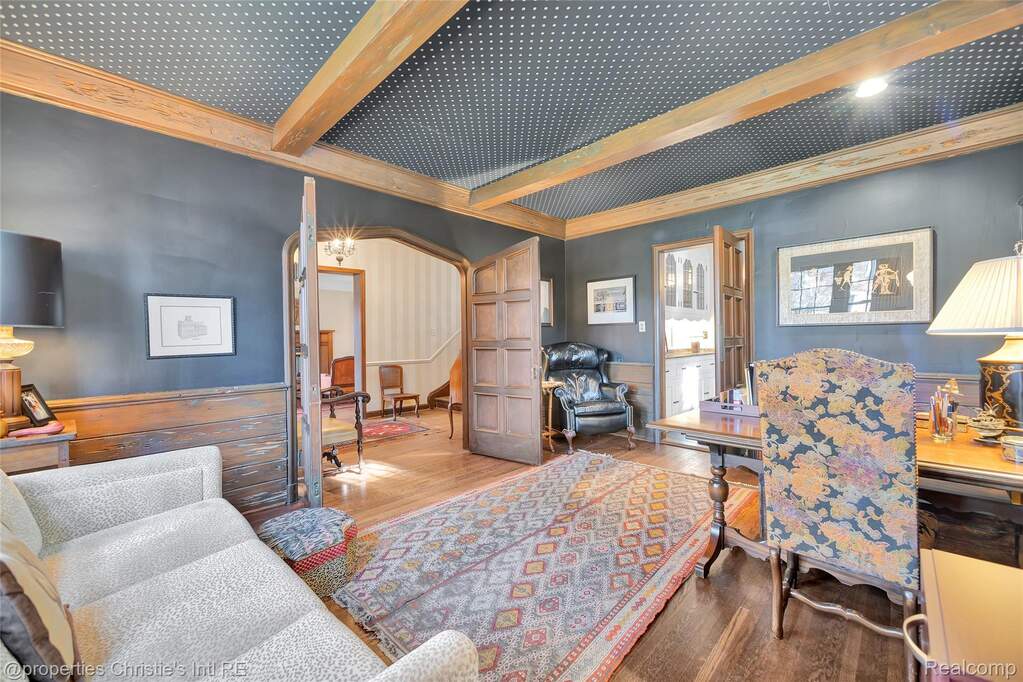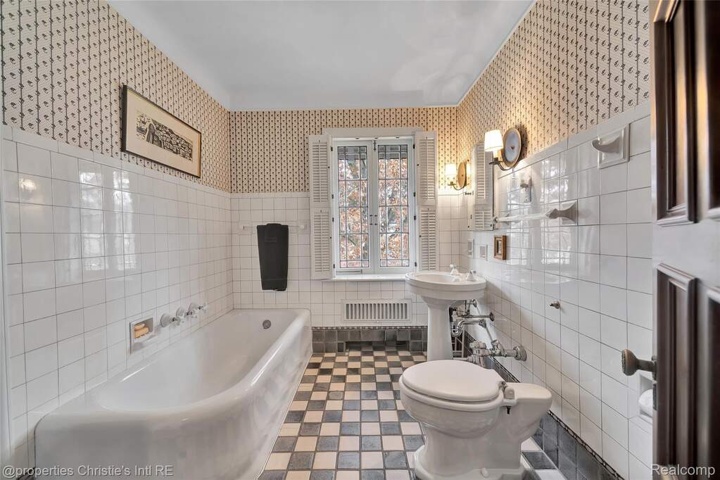 First offering in over 40 years for this stately yet charming English country home in the desirable historic Sherwood Forest neighborhood. Lovingly maintained by its caring owners, this welcoming home is replete with originality and warmth. Beautiful woodwork, art tiling and plasterwork throughout lend deeply to the value of this architectural gem! The expansive living room with its large, natural fireplace connects to the formal dining room through impressive arched paneled doors. From the lovely dining room are French doors opening to the art-tiled enclosed porch. The spacious kitchen was updated with intention to blend with the style and history of the home. An elegant powder room lies between the kitchen and dining room; and, completing the main floor is the wonderful library with its beamed ceiling and leaded glass windows --- the perfect haven for relaxion and reflection. Upstairs are three large bedrooms with two bathrooms, the huge primary with a sizable dressing room and private art-tiled bath. On the 3rd floor are two more bedrooms with another full bathroom. The basement boasts a huge recreation room and a super-cool "prohibition-era" wet bar, both perfect for informal entertainment. There is also a practical half-bath downstairs as well. The professionally designed garden in back hints of centuries-old estates in England, and the garage still boasts its functioning original doors. Come make this wonderfully kept masterpiece yours!!