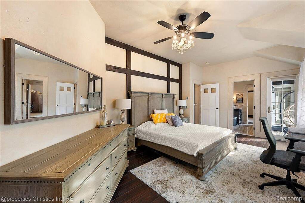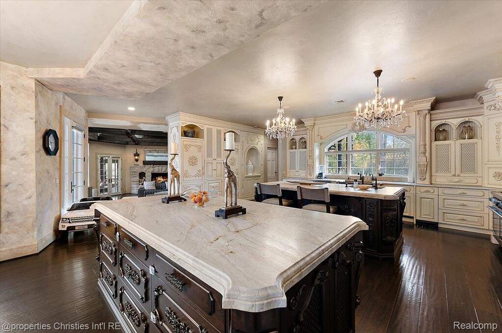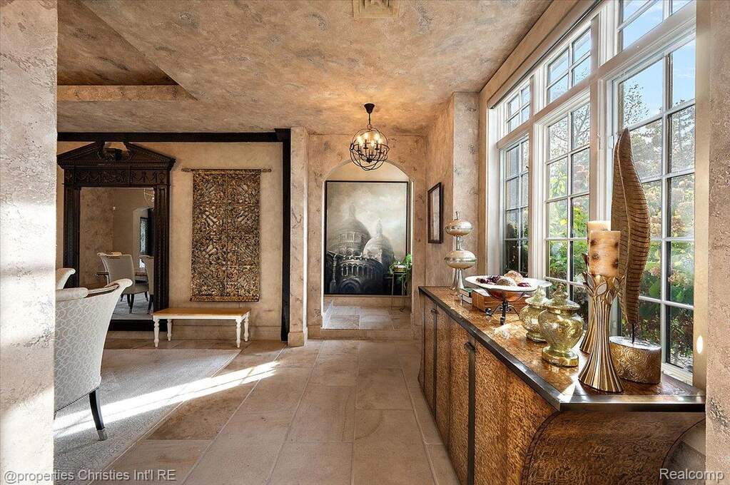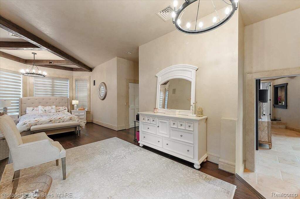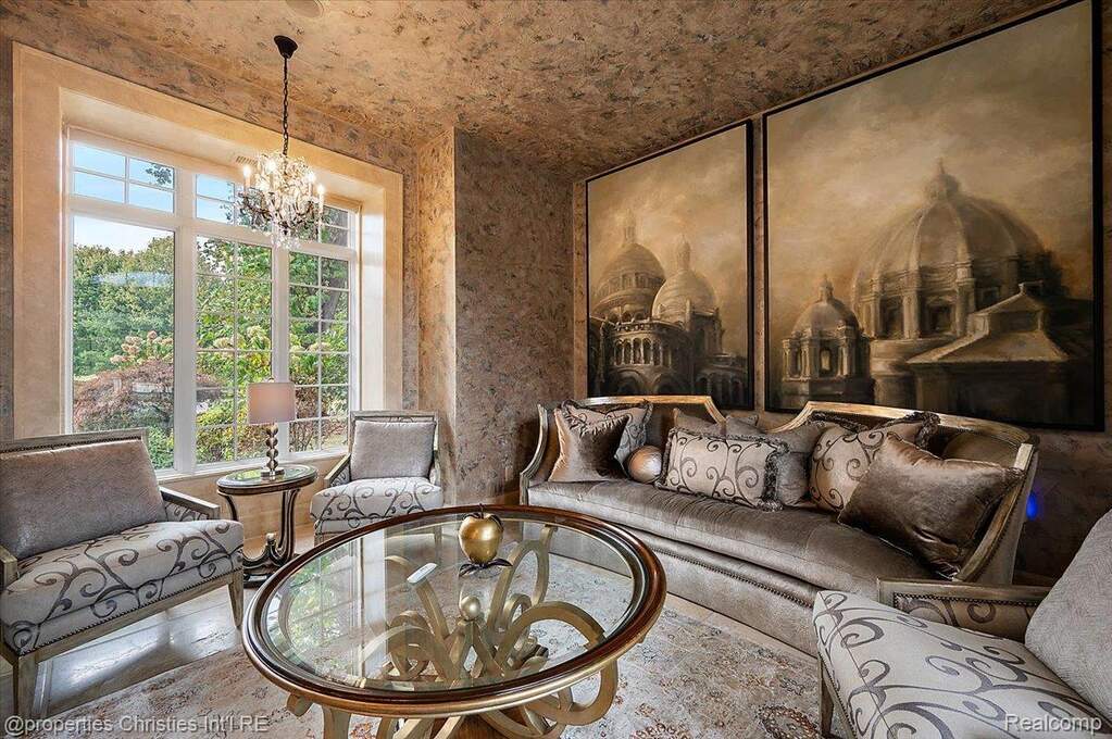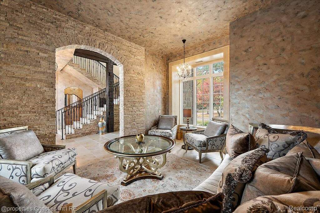Experience timeless elegance and modern luxury on nearly four acres of pristine grounds. This extraordinary estate evokes the grace and character of a grand European manor, blending old-world craftsmanship with refined comfort. Upon entry, you're greeted by soaring ceilings and a stunning interplay of rich wood beams and natural stone, setting the tone for the home's sophisticated design. The layout seamlessly balances formal and casual living, with a sunlit two-story great room featuring expansive windows that frame breathtaking views of the property and a striking two-sided stone fireplace shared with the gracious dining room. Two primary suites are conveniently located on the main floor, each offering a spa-like ensuite bath, dressing room, and dry sauna-creating the ultimate retreat. The chef's kitchen is a true centerpiece, boasting dual islands, premium appliances, and a spacious breakfast area that opens to the inviting family room accented by the same magnificent beams and stonework. Enjoy the changing seasons in the charming three-season room or ascend one of two elegant staircases to discover four additional bedrooms and three full baths upstairs, providing ample space for family and guests. Outside, the property transforms into a private resort with an in-ground pool, pool house with full bath, sports court, and oversized gas fire pit-all surrounded by beautifully landscaped grounds. Residents also enjoy exclusive privileges at Upper Straits Lake. A rare offering where timeless architecture meets modern comfort-this is estate living at its finest.