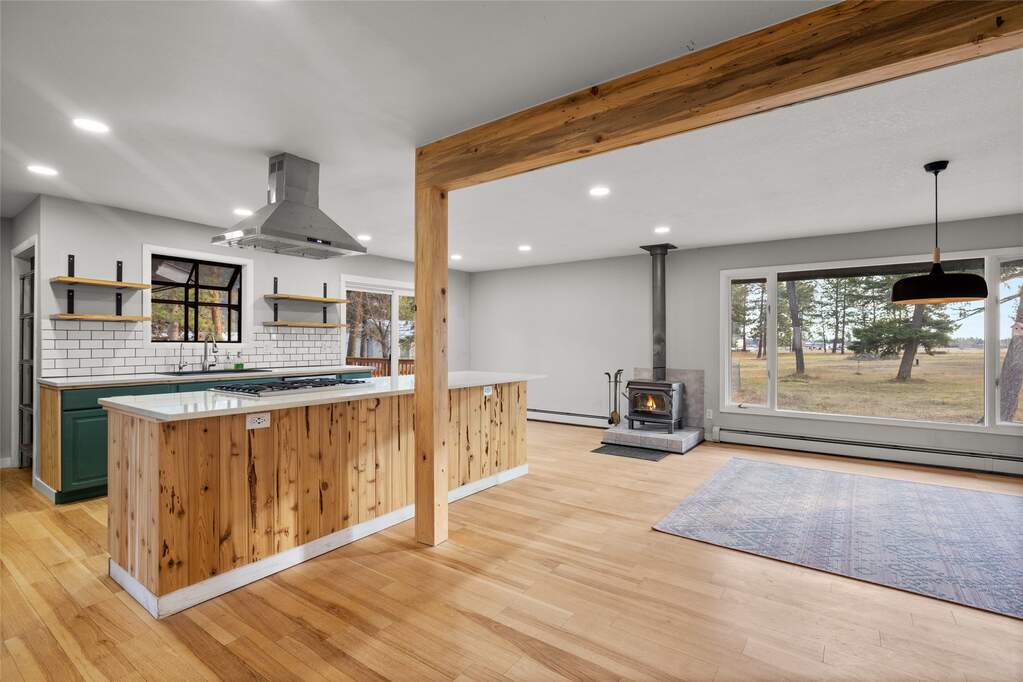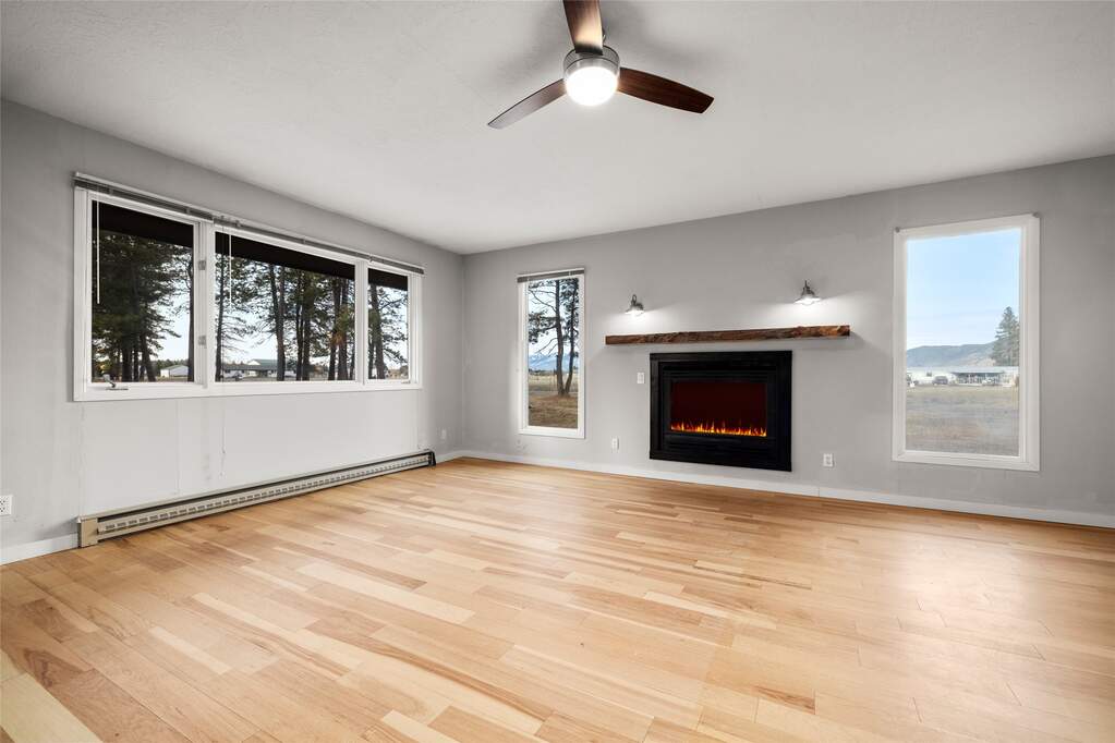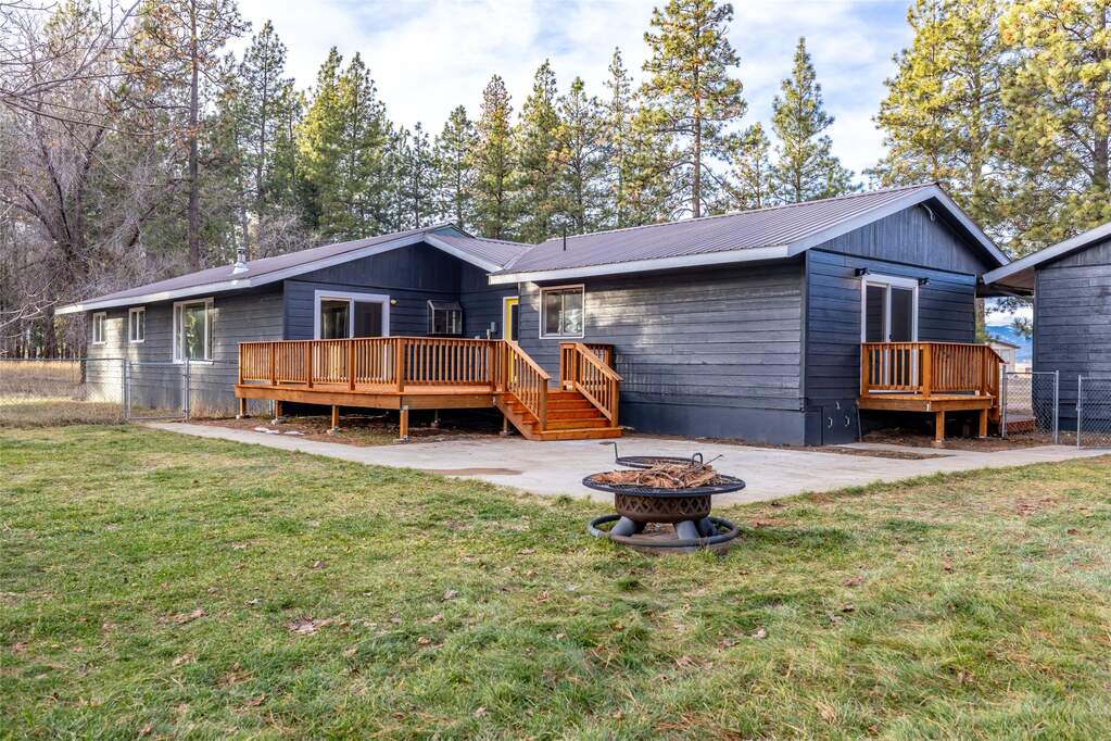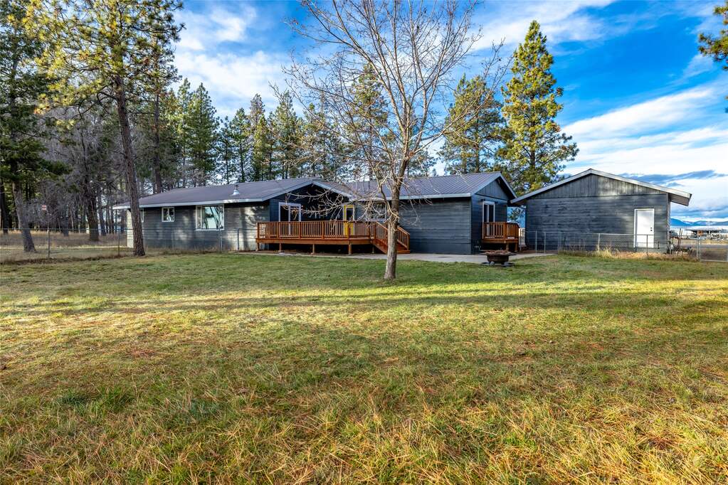 Set against the Columbia Mountains and surrounded by 70+ old-growth pines, this level 2.14-acre property features a fully remodeled 2,618 sq ft ranch-style home with 4 bedrooms, 2 bathrooms, and an office. Natural light fills the open floor plan with engineered hardwood floors, ideal for comfortable living and entertaining. Updates include new appliances, countertops, flooring, bathrooms, patio doors, fresh interior and exterior paint, an oversized deck, and a private deck off the primary suite. A detached 2-car garage sits near the mudroom, with a fenced area for pets and a looped driveway for easy access. Enjoy park-like meadow views, abundant privacy, and peaceful country living just minutes from Columbia Falls, the Flathead River, Glacier National Park, and the international airport. Private 440-ft well drilled in 2017 producing 80 GPM. Move-in ready and easy to show.