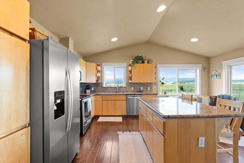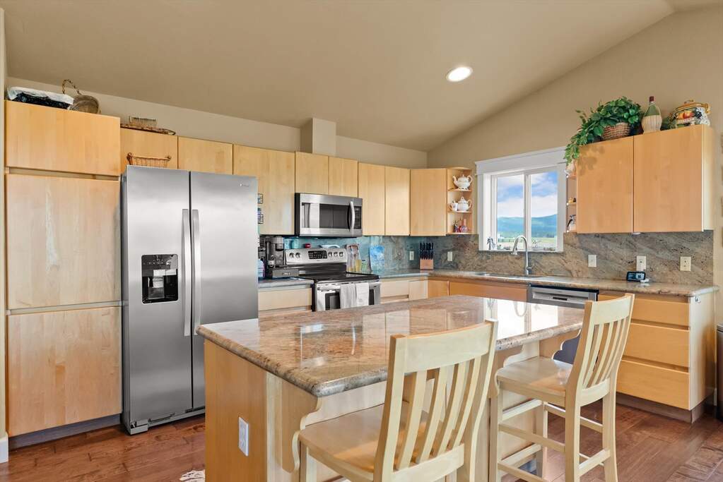 The beautiful ranch-style estate features end-of-the-road privacy on 5.56 acres and amazing 360 degree mountain views! This fully updated & renovated property includes 6 bedrooms, 4 bathrooms & several bonus rooms. The main floor features an open floor plan with the kitchen/living/dining area all open and offering great views of the Whitefish & Salish Mountain Ranges. Hand-scraped wood floors, custom beamwork, & wrought iron stair railings adorn the main floor. Four bedrooms are located on the main floor inclding the primary bed & bath and an addtional bed & bath that makes a great 2nd primary or MIL suite. The lower level adds 2 more bedrooms and a couple of rooms that would be ideal for a media room, gym or office. Above the garage you'll find an additional 684 SF unfinished apartment that's ready to finish out as a guest suite or a Airbnb / VRBO nightly rental! Schedule your showing today. Outside you'll find 5+ acres of grassy fields that is ready for you to enjoy! A portion of the backyard offers a chain link fence for kids and/or pets. There's plenty of space to add a barn, workshop, ADU, or other out buildings. Enjoy majestic 360 degree views all around with views of the Whitefish Range, Swan Mountains, Blacktail Mountain, & Salish Mountains all around.