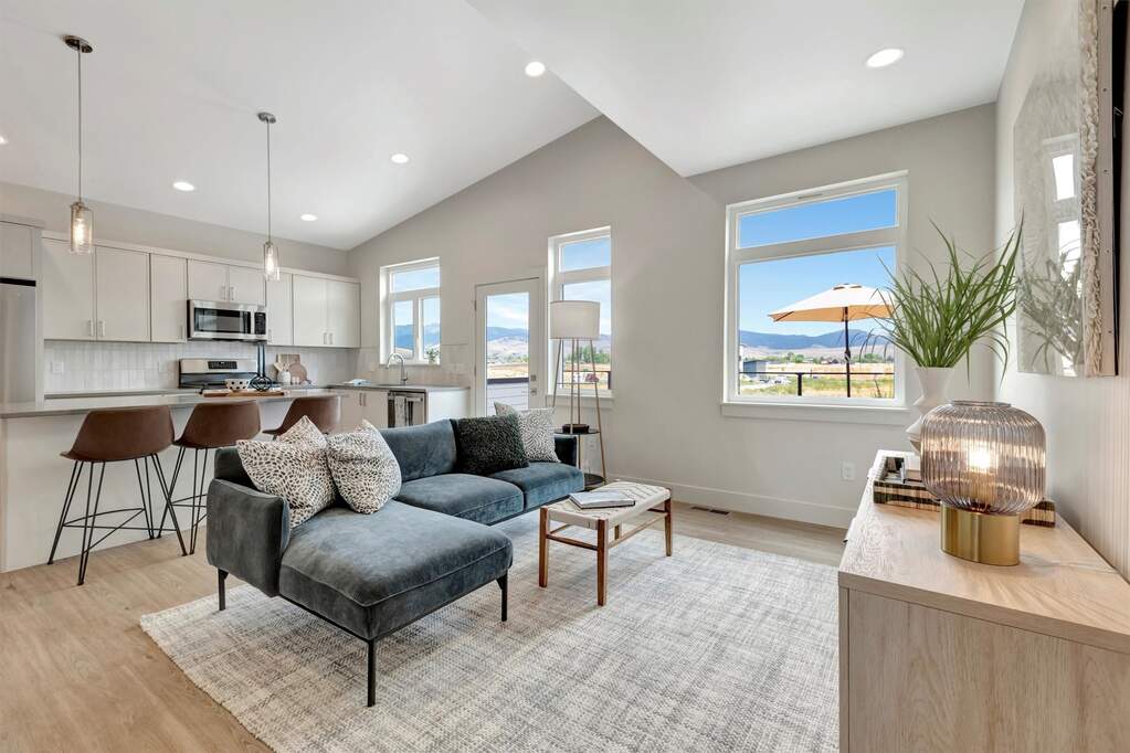 Don't miss out on this incredible opportunity offered in the newer subdivision, Heron's Landing! New construction, ready for a new owner! Immaculately designed with a 1,656 sq. ft. floor plan on two levels, boasting 2 bedrooms, 2 full bathrooms,and an inviting open kitchen, living, and dining area. Luxury vinyl plank flooring, timeless quartz countertops, light cream interior paint, with complimentary dark cabinet finishes, smart thermostats, LED lighting, and tiled bathrooms and the custom tile kitchen backsplash create a chic & minimal ambiance. The kitchen area extends to a rooftop deck, offering breathtaking views of the surrounding area and majestic mountains in the distance, great for entertaining. Residents will also enjoy the nearby community park, playgrounds, and gardens, and a location just minutes away from Reserve Street, with a range of shops, restaurants, supermarkets, the golf club, and a movie theatre. Excellent schools, local amenities, and easy access to major roads complete the package. For an onsite tour, or property info including: Aerial Videos, 3d Interactive Walkthrough Tours, Amenity Lists, and Associated Documents.