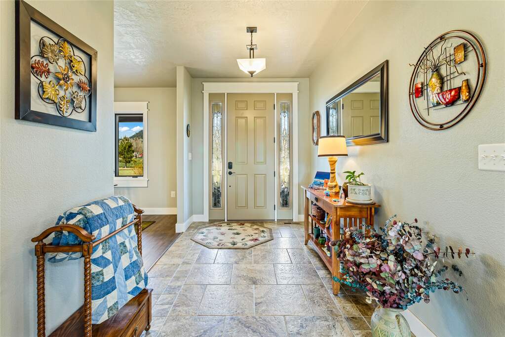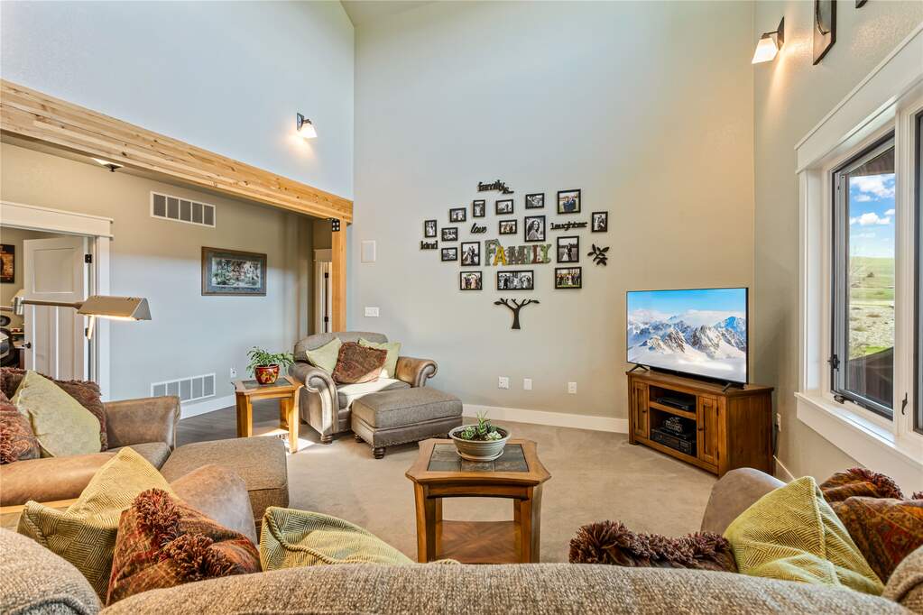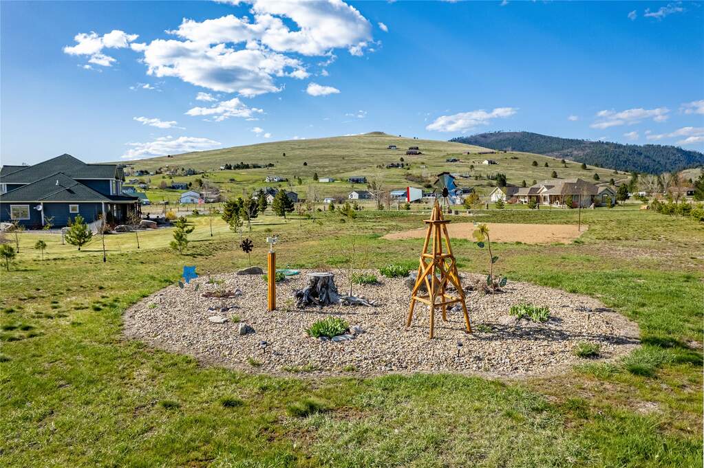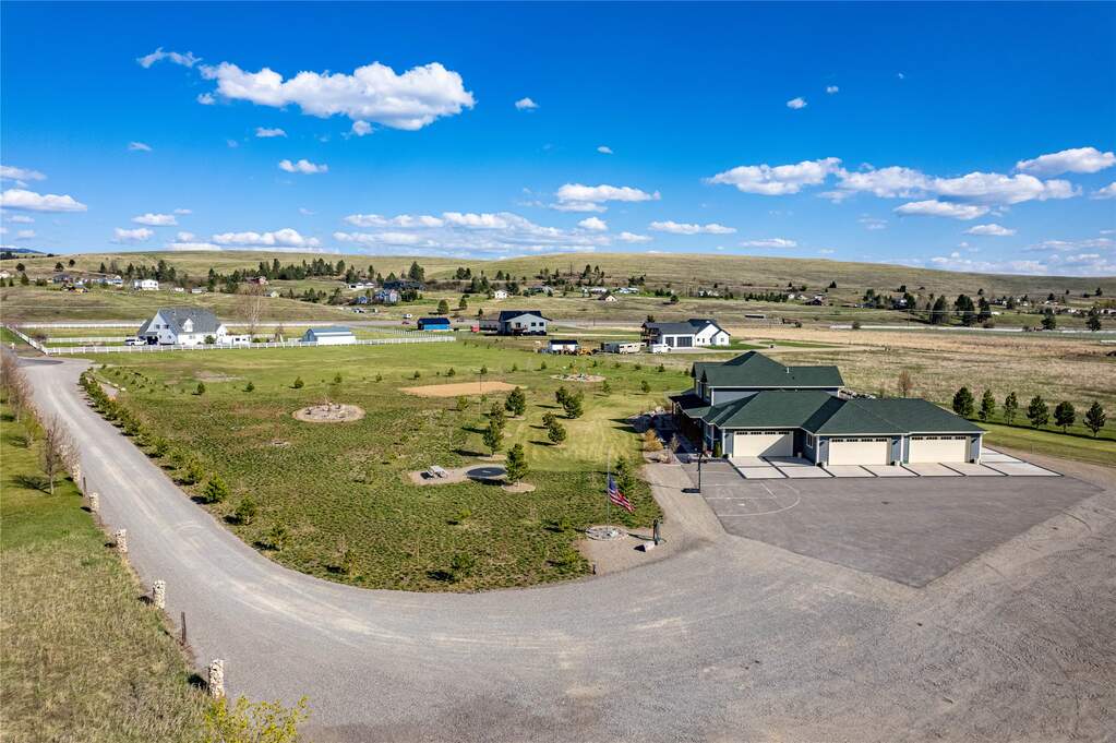 This stunning 3,446 sq. ft. custom home, completed in 2017, sits on nearly 3 beautifully landscaped acres with expansive mountain views. The 4-bedroom, 3-bath layout features 9' ceilings, Pella windows with built-in shades, a gourmet kitchen with both gas and electric cooktops, and a geo-thermal heating and cooling system for year-round comfort and efficiency. Outdoor amenities are second to none-enjoy a fenced backyard, sand volleyball court, basketball hoop, fire pit, water feature (no winterization required), and low-voltage landscape lighting. The oversized 6-car garage accommodates full-size vehicles, and there's a concrete RV pad with electrical hook-up. A new roof and gutters were added in 2023. Located in a quiet cul-de-sac with school bus service and just minutes from I-90 and Missoula International Airport, this one-of-a-kind property blends luxury living with space to play, relax, and entertain. Don't miss your chance to own a rare slice of Montana lifestyle-schedule your showing today!