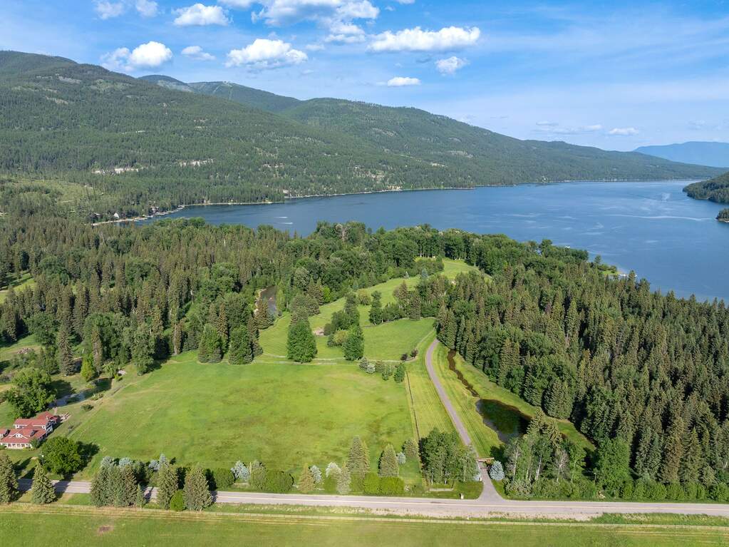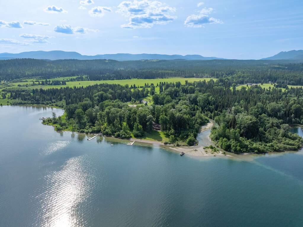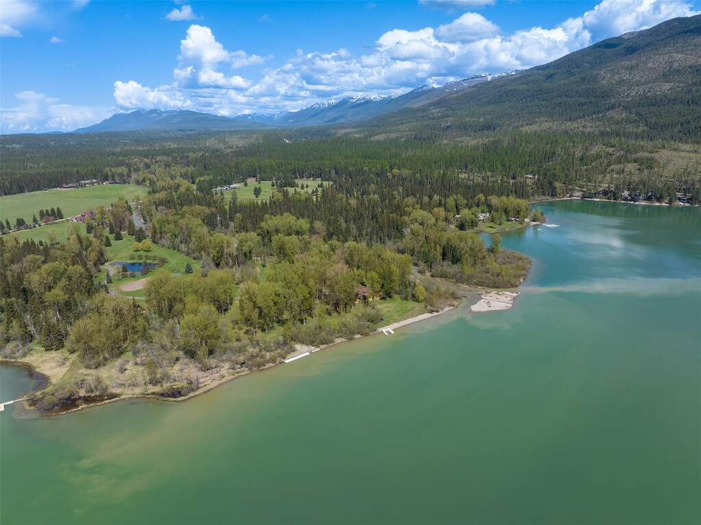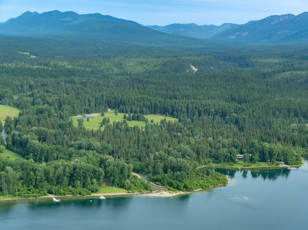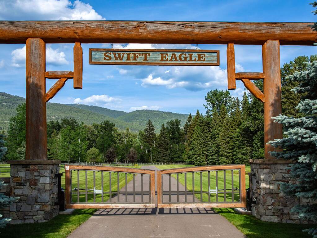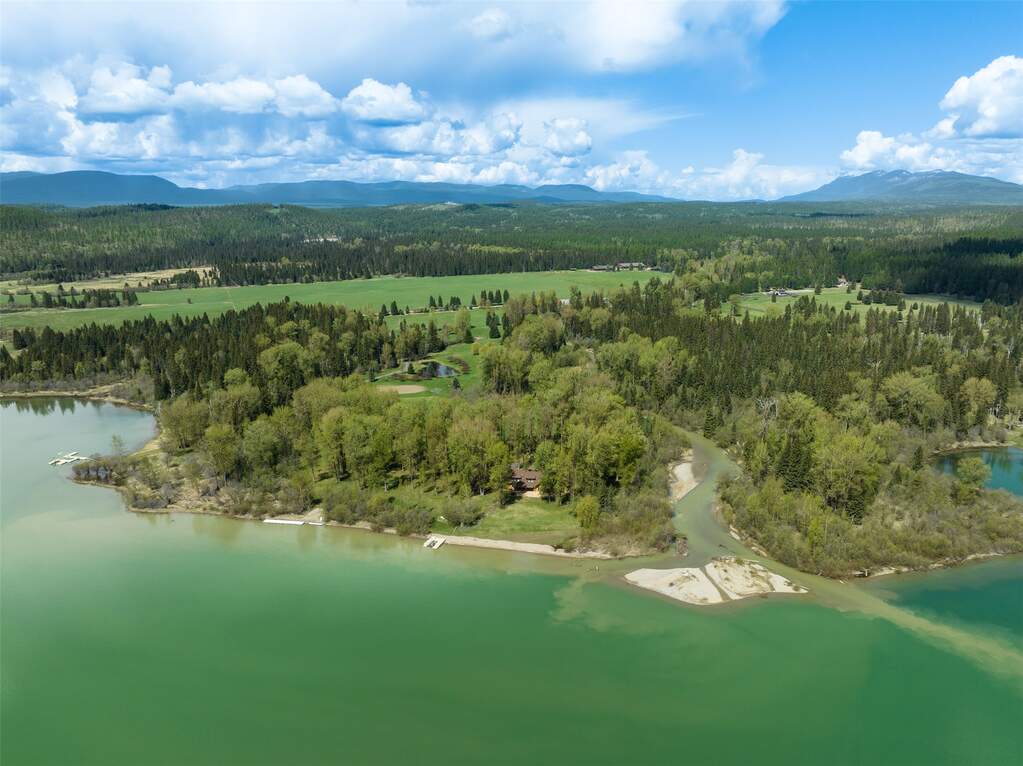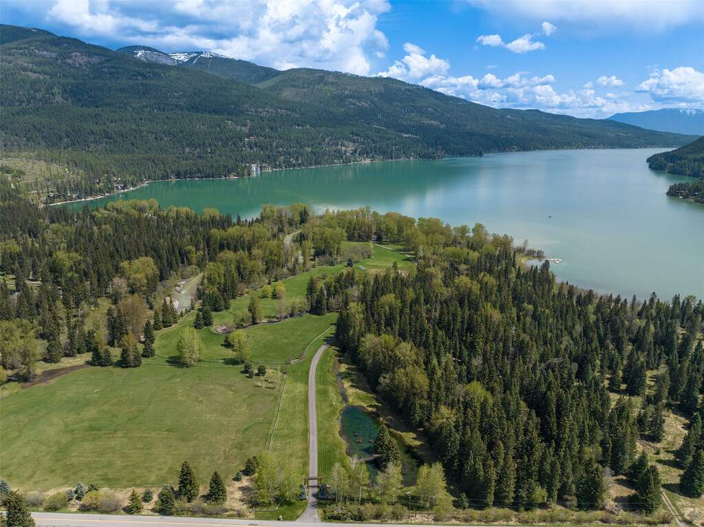Whitefish Lake Dream! Swift Eagle Ranch is one of the most extraordinary legacy offerings on Whitefish Lake. Spanning 35 acres with 550+ feet of pristine lake frontage, this property rests at the headwaters, capturing sweeping southern-facing views across the water. Swift Creek traces the property's north and east edges, flowing toward a serene pebble beach and creating a calm lakeside setting. Lush, tree-lined meadows, spring-fed ponds, winding streams, and mature forested grounds shape a landscape that feels both private and timeless. The centerpiece of the property is an authentic Swedish cope log home, complemented by a beautifully renovated two-bedroom guest residence. Rich wood accents throughout the main home capture authentic Montana character and are highlighted by a spacious great room with a dramatic stone fireplace, an inviting island kitchen, and a generous dining area. The primary suite offers superior views of both the lake and creek, while the upper level includes two additional bedrooms. The newly updated guest home provides luxurious accommodations for family and friends. With a 10-bedroom sanitation allowance, the estate offers opportunities for future expansion or additional structures. Outdoor amenities include a deep-water mooring dock with electrical service and boat lift, an equestrian training arena in the meadow, and nearly half a mile of Swift Creek, a major tributary to Whitefish Lake, perfect for easy-access fly fishing. All just 20 minutes to downtown Whitefish, Whitefish Mountain Resort, and 40 minutes to Glacier Park International Airport, Swift Eagle Ranch embodies the ultimate Whitefish Lake retreat, an irreplaceable legacy property of unmatched scale, beauty, and privacy for future generations to come.