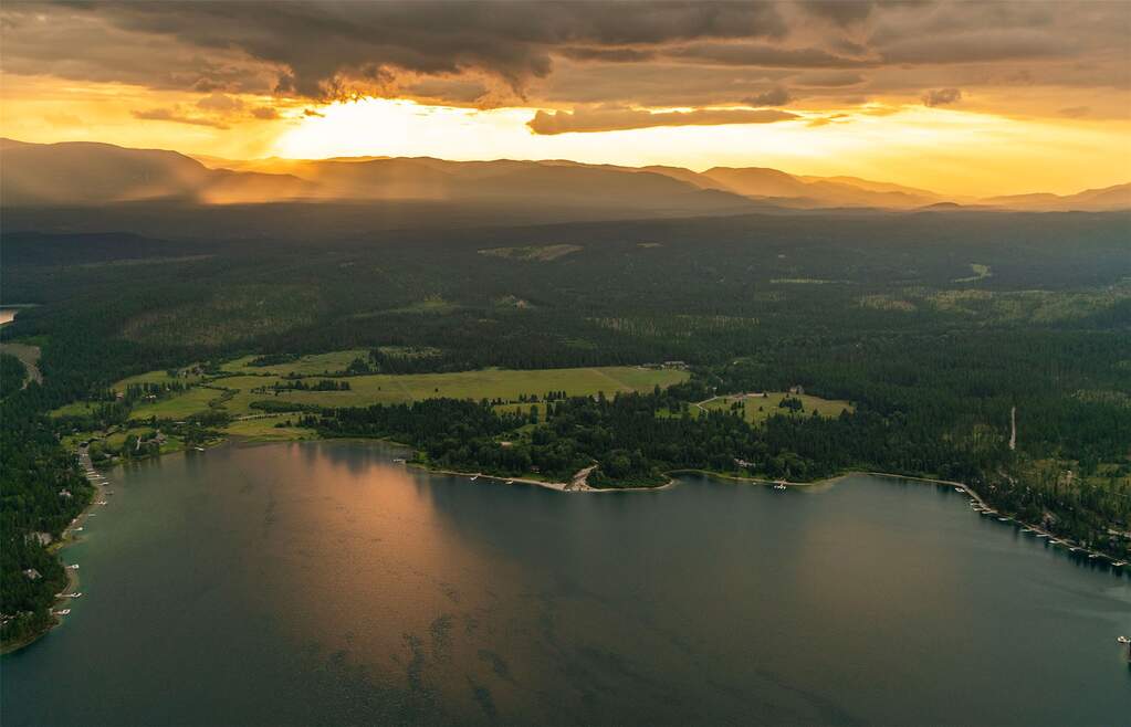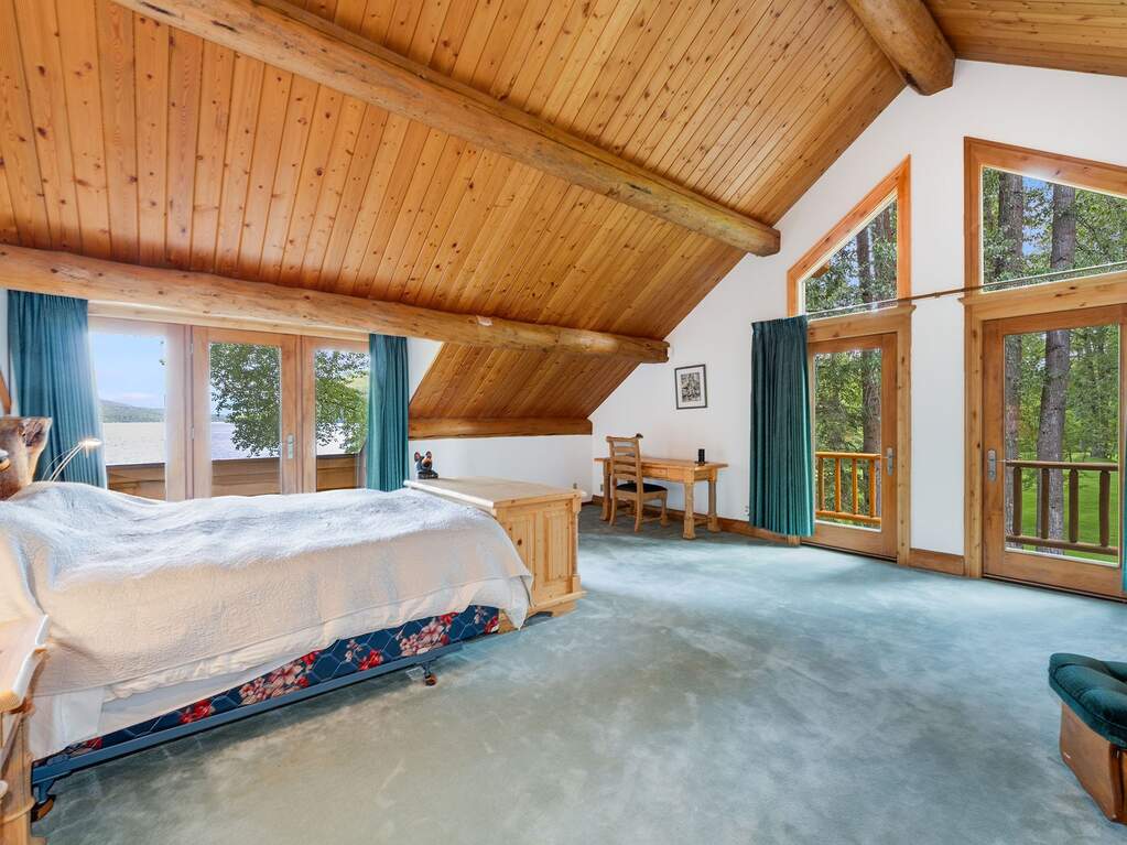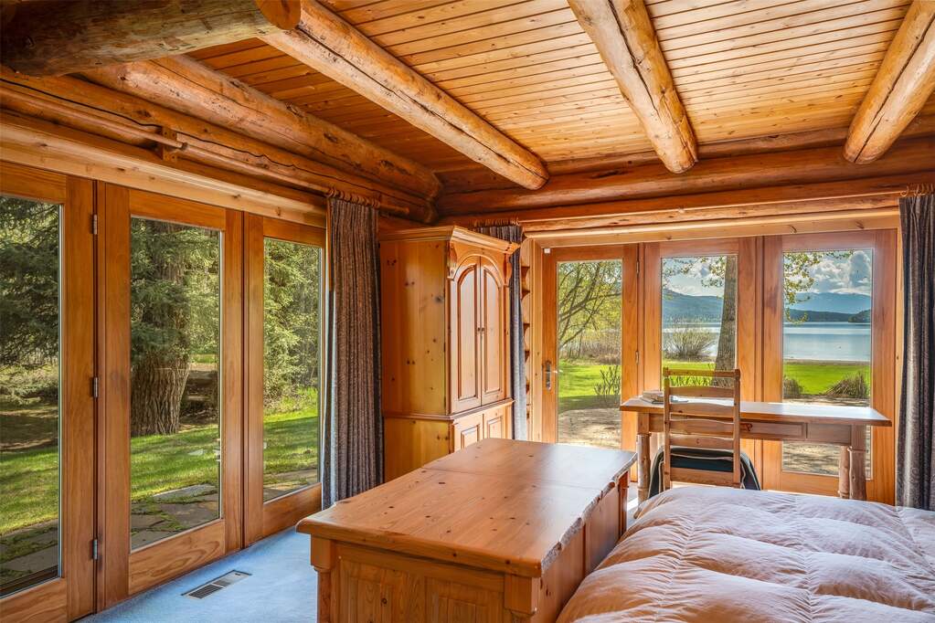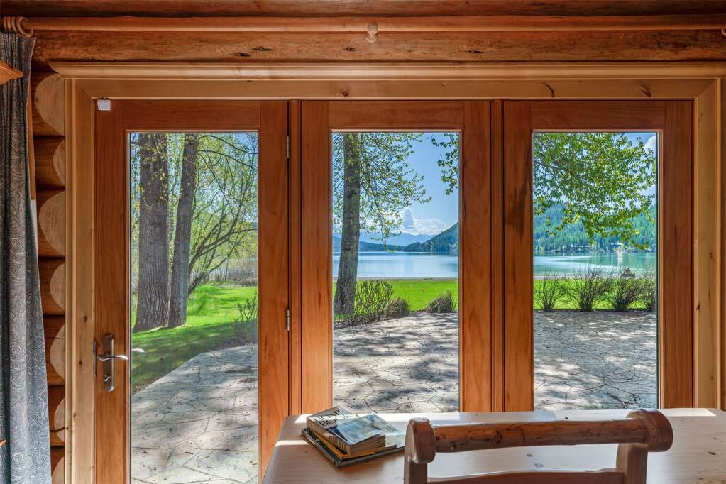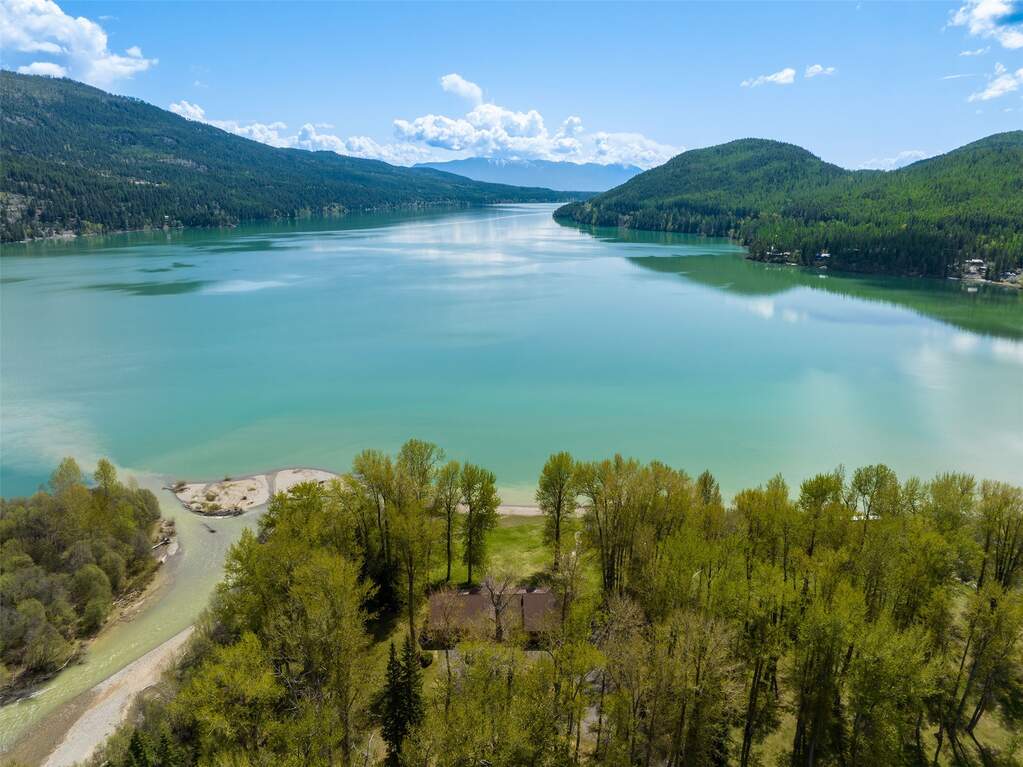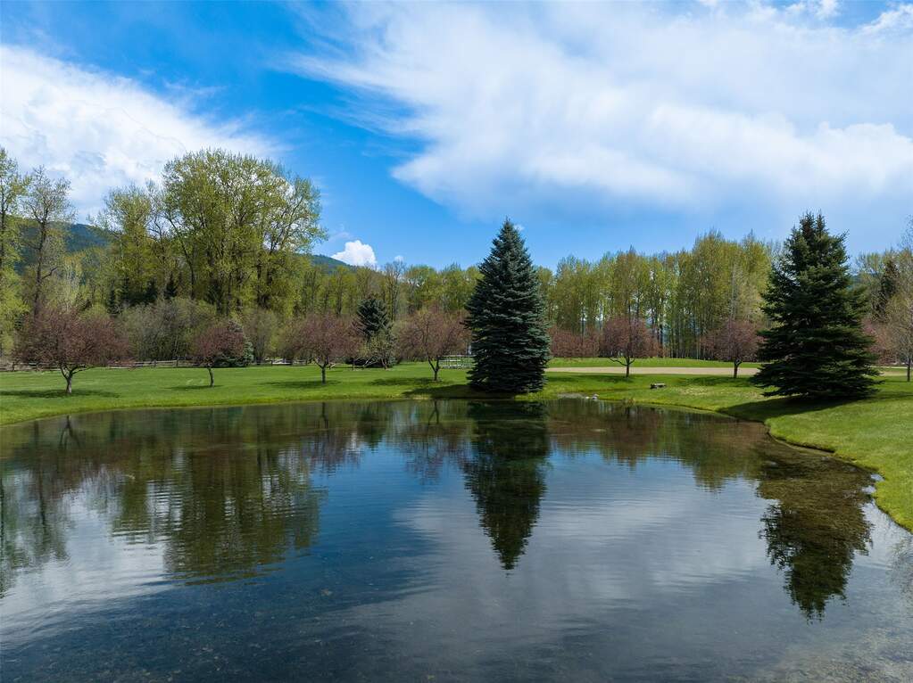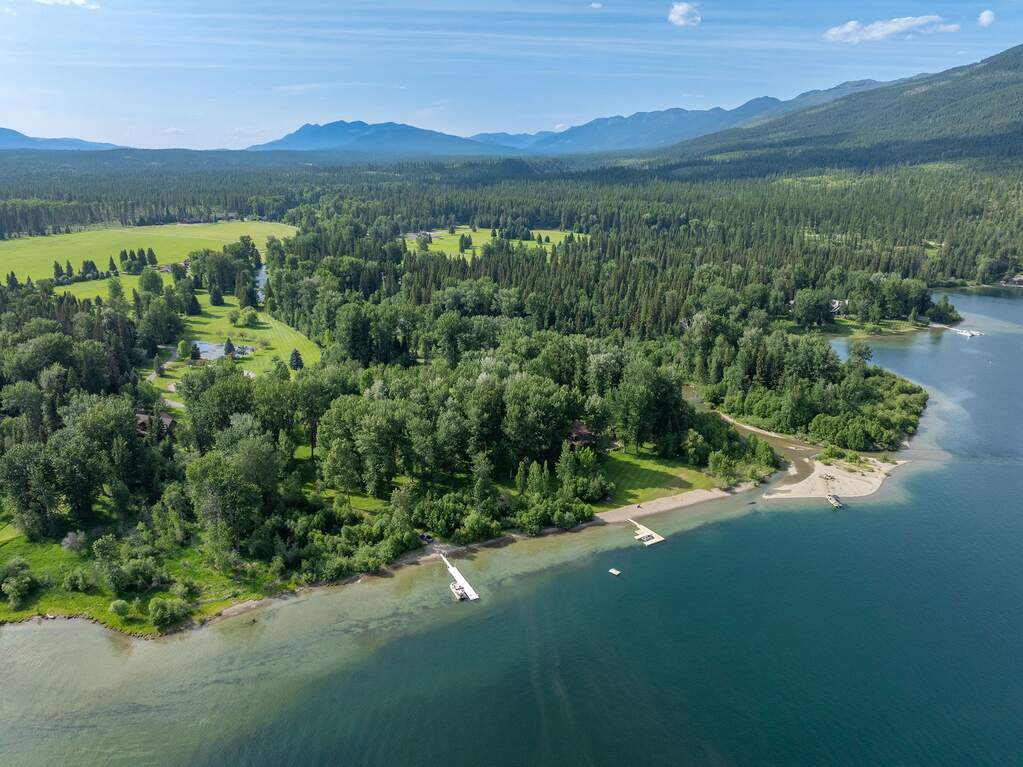 Whitefish Lake Dream! Swift Eagle Ranch is one of the most extraordinary legacy offerings on Whitefish Lake. Spanning 35 acres with 550+ feet of pristine lake frontage, this property rests at the headwaters, capturing sweeping southern-facing views across the water. Swift Creek traces the property's north and east edges, flowing toward a serene pebble beach and creating a calm lakeside setting. Lush, tree-lined meadows, spring-fed ponds, winding streams, and mature forested grounds shape a landscape that feels both private and timeless. The centerpiece of the property is an authentic Swedish cope log home, complemented by a beautifully renovated two-bedroom guest residence. Rich wood accents throughout the main home capture authentic Montana character and are highlighted by a spacious great room with a dramatic stone fireplace, an inviting island kitchen, and a generous dining area. The primary suite offers superior views of both the lake and creek, while the upper level includes two additional bedrooms. The newly updated guest home provides luxurious accommodations for family and friends. With a 10-bedroom sanitation allowance, the estate offers opportunities for future expansion or additional structures. Outdoor amenities include a deep-water mooring dock with electrical service and boat lift, an equestrian training arena in the meadow, and nearly half a mile of Swift Creek, a major tributary to Whitefish Lake, perfect for easy-access fly fishing. All just 20 minutes to downtown Whitefish, Whitefish Mountain Resort, and 40 minutes to Glacier Park International Airport, Swift Eagle Ranch embodies the ultimate Whitefish Lake retreat, an irreplaceable legacy property of unmatched scale, beauty, and privacy for future generations to come.
