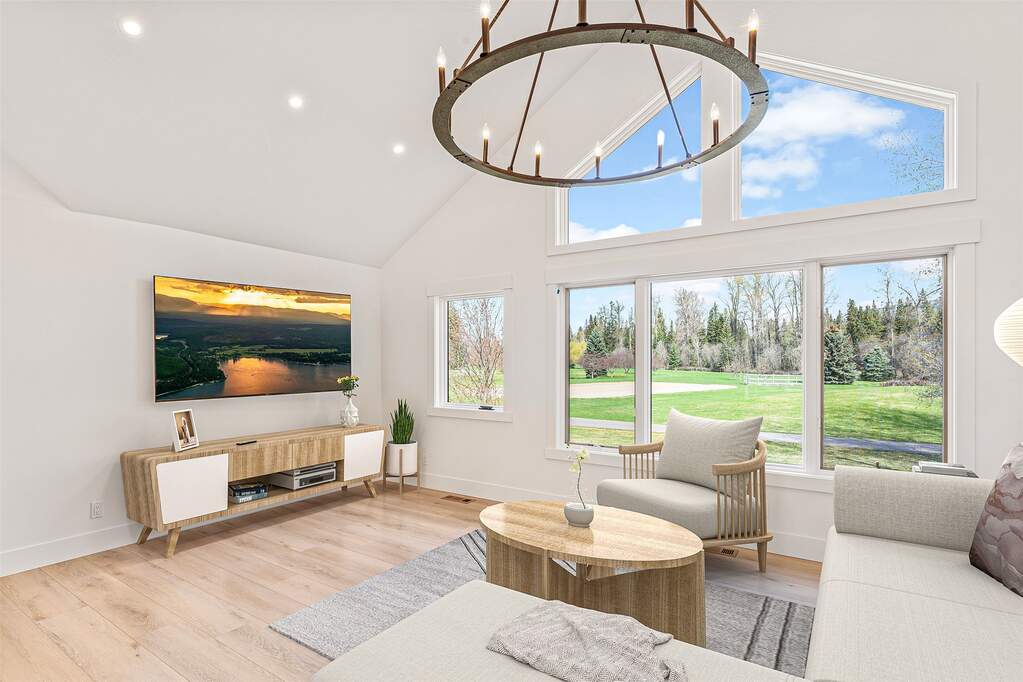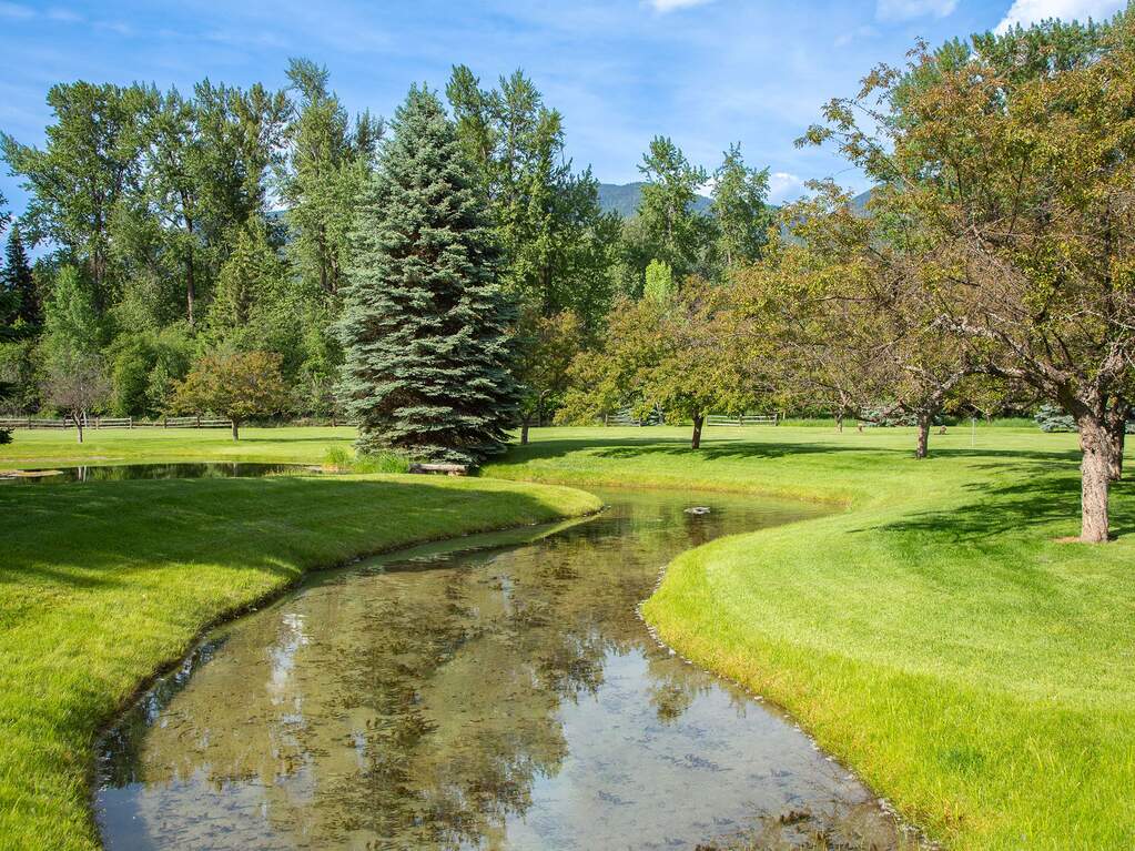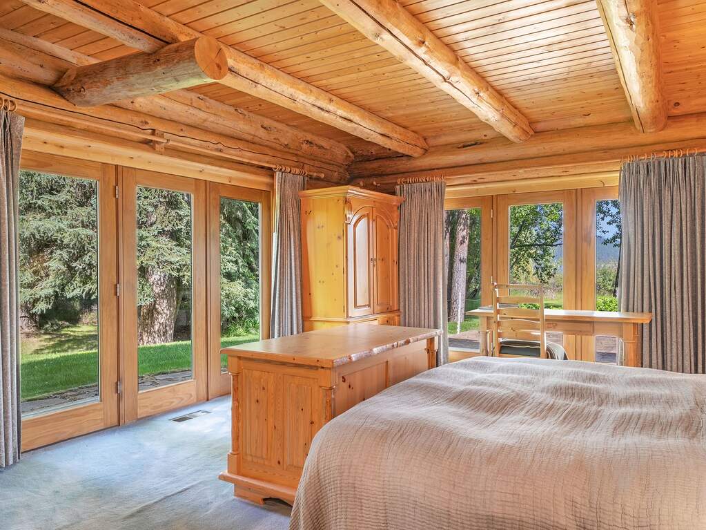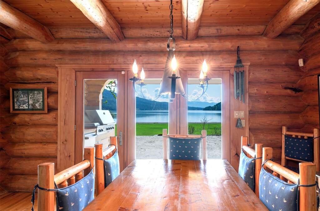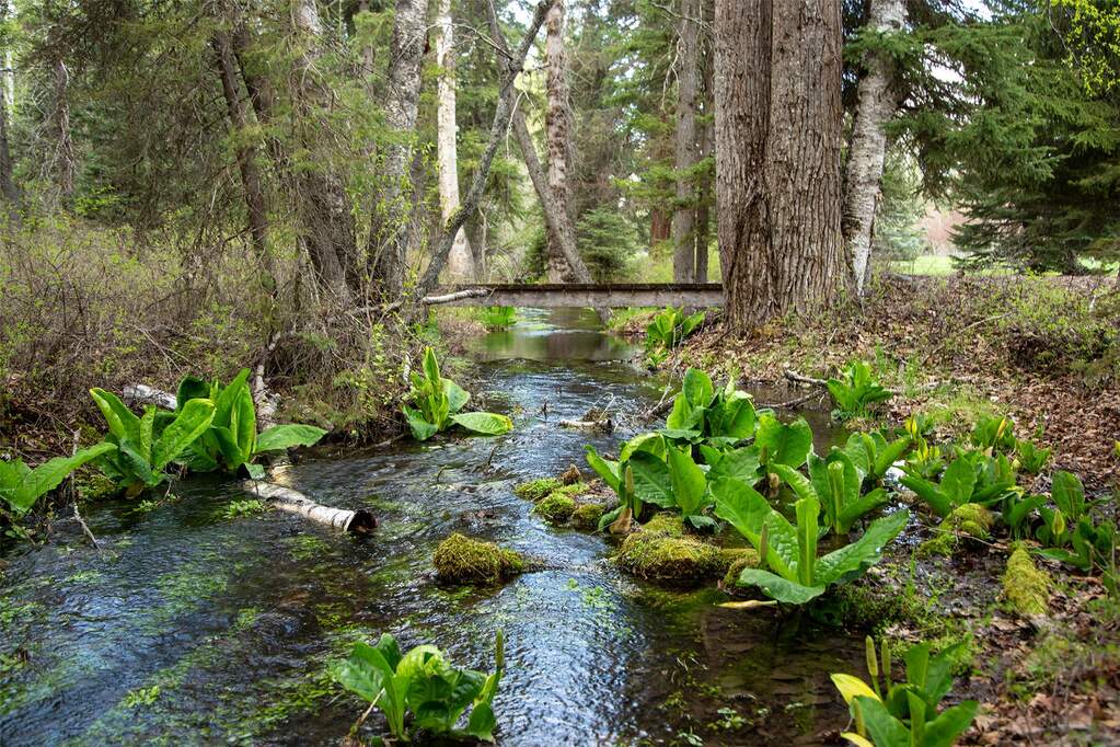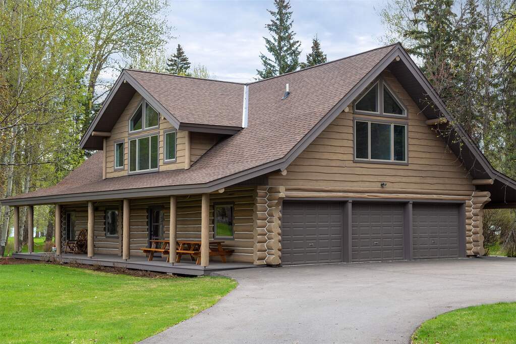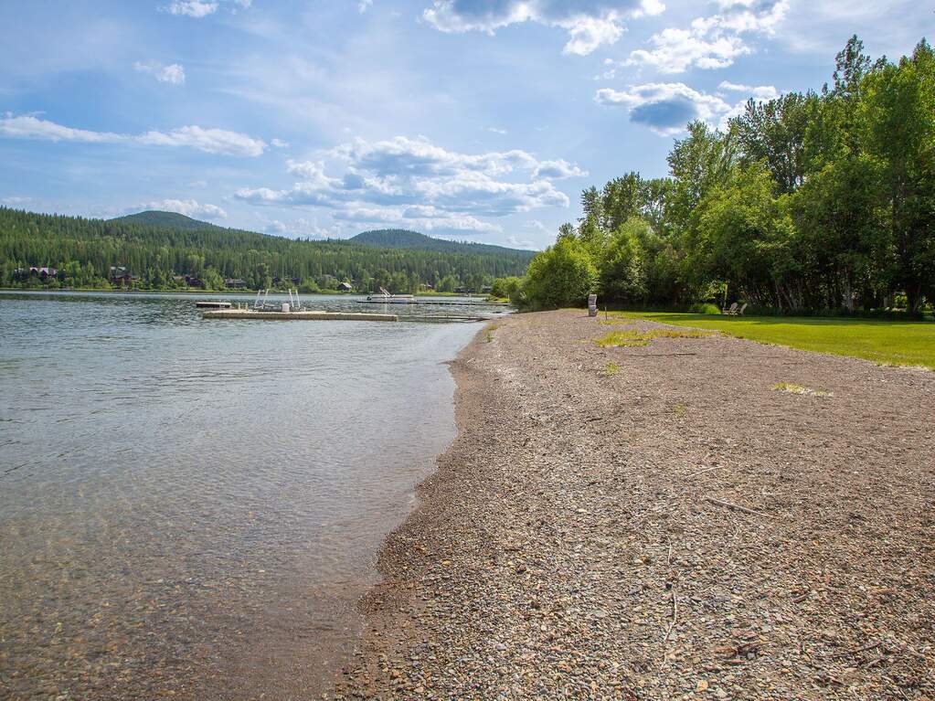 Whitefish Lake Dream! Swift Eagle Ranch is one of the most extraordinary legacy offerings on Whitefish Lake. Spanning 35 acres with 550+ feet of pristine lake frontage, this property rests at the headwaters, capturing sweeping southern-facing views across the water. Swift Creek traces the property's north and east edges, flowing toward a serene pebble beach and creating a calm lakeside setting. Lush, tree-lined meadows, spring-fed ponds, winding streams, and mature forested grounds shape a landscape that feels both private and timeless. The centerpiece of the property is an authentic Swedish cope log home, complemented by a beautifully renovated two-bedroom guest residence. Rich wood accents throughout the main home capture authentic Montana character and are highlighted by a spacious great room with a dramatic stone fireplace, an inviting island kitchen, and a generous dining area. The primary suite offers superior views of both the lake and creek, while the upper level includes two additional bedrooms. The newly updated guest home provides luxurious accommodations for family and friends. With a 10-bedroom sanitation allowance, the estate offers opportunities for future expansion or additional structures. Outdoor amenities include a deep-water mooring dock with electrical service and boat lift, an equestrian training arena in the meadow, and nearly half a mile of Swift Creek, a major tributary to Whitefish Lake, perfect for easy-access fly fishing. All just 20 minutes to downtown Whitefish, Whitefish Mountain Resort, and 40 minutes to Glacier Park International Airport, Swift Eagle Ranch embodies the ultimate Whitefish Lake retreat, an irreplaceable legacy property of unmatched scale, beauty, and privacy for future generations to come.