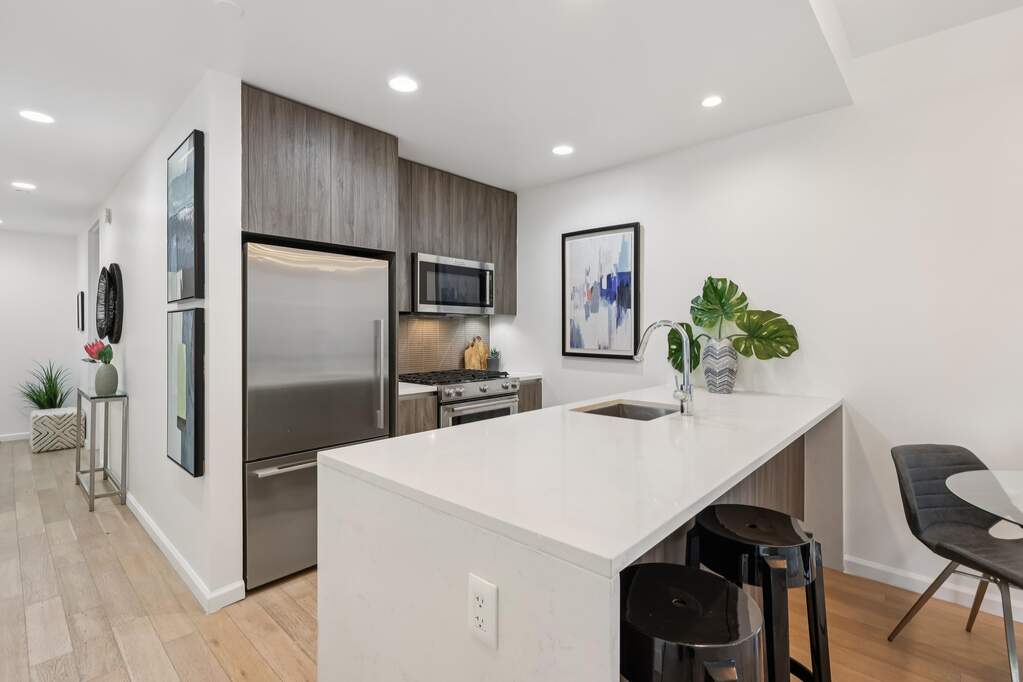 Welcome to one of Jersey City's most sought after buildings, The Oakman. This well-appointed south facing one bedroom home with spacious layout features a state-of-the-art Chef's kitchen with stainless steel Kitchen Aid gas stove & dishwasher, Fisher & Paykel refrigerator, and Italian Pedini cabinets finished with modern quartz countertop peninsula. The sun-drenched bedroom easily fits a queen-sized bed and features a custom walk-in closet fitted with California Closets. The stunning bathroom has a modern aesthetic with Hansgrohe fixtures and gorgeous porcelain tile. This gem of a unit features premium finishes throughout - in unit Bosch washer/dryer, recessed LED lighting, built in California Closets and custom wide oak hardwood floors throughout. Built in 2016 The Oakman is a hotel style full-service luxury building with 24-hour doorman, fitness center, children's playroom, rooftop lounge residents lounge, outdoor swimming pool, roof deck w/ grills, DVORA in home service and dry-cleaning services! The attached garage offers EV chargers and Valet Parking on-site for an additional fee. Tax Abatement runs until 2036. Excellent location just 3 blocks from the Grove St PATH, 10 Minutes to the waterfront and ferry to NYC, surrounded by great neighborhood amenities right at your doorstep including Lackawanna Coffee, Salvation Wellness for massage, sauna, meditation, Hudson Hall and so many more shops, restaurants, bars, fitness studios like Orange Theory, CKO kickboxing, Pilates, hot yoga, barre, and the soon to be completed Whole Foods. This home fulfills the most discerning buyers' wish list and showcases the best Jersey City has to offer.