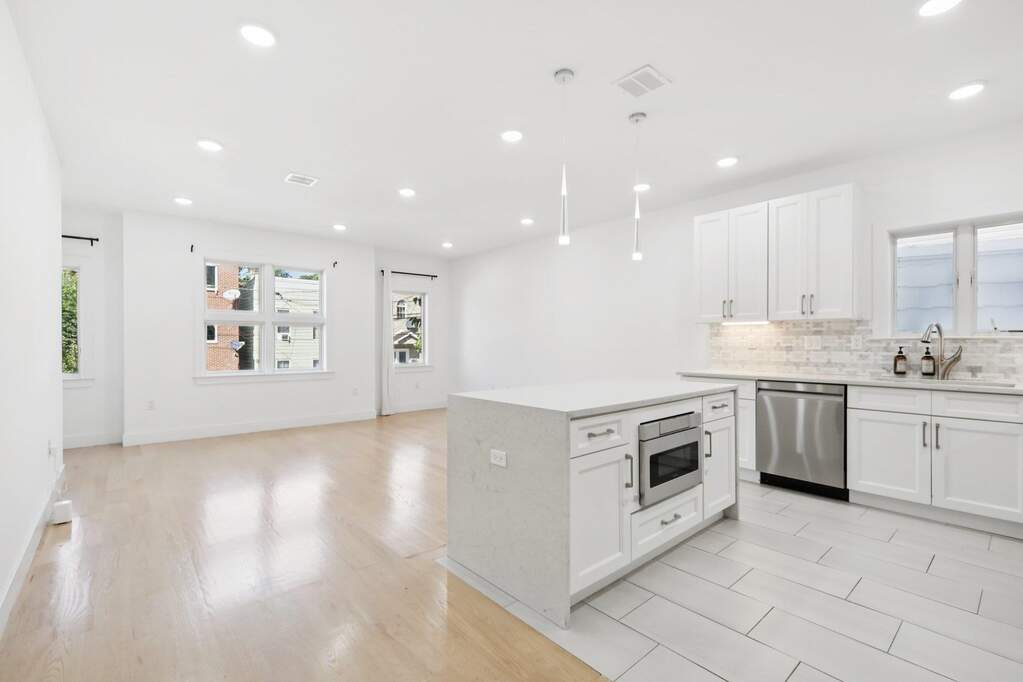 Beautifully designed 1,800 sq ft duplex unit built in 2021, spanning the entire first and second floors of a modern condo home in desirable Jersey City Heights. The first floor features a spacious, versatile open area perfect as a playroom, home office, guest room, or creative space, complete with a convenient half bathroom and direct access to a private backyard-ideal for relaxing or entertaining. Upstairs, enjoy a bright, open-concept kitchen, living, and dining area with quartz countertops, stainless steel appliances, custom cabinetry, hardwood floors, and soaring ceilings. Three generously sized bedrooms and two full bathrooms complete the upper level, including a serene primary suite with en-suite bath and ample closet space. Additional highlights include in-unit washer/dryer, central heating and cooling, and one tandem garage parking spot. The building is shared with only one other unit, providing privacy and a quiet environment. Located near parks, schools, shopping, dining, and NYC transit options. Tenant pays gas and electricity.