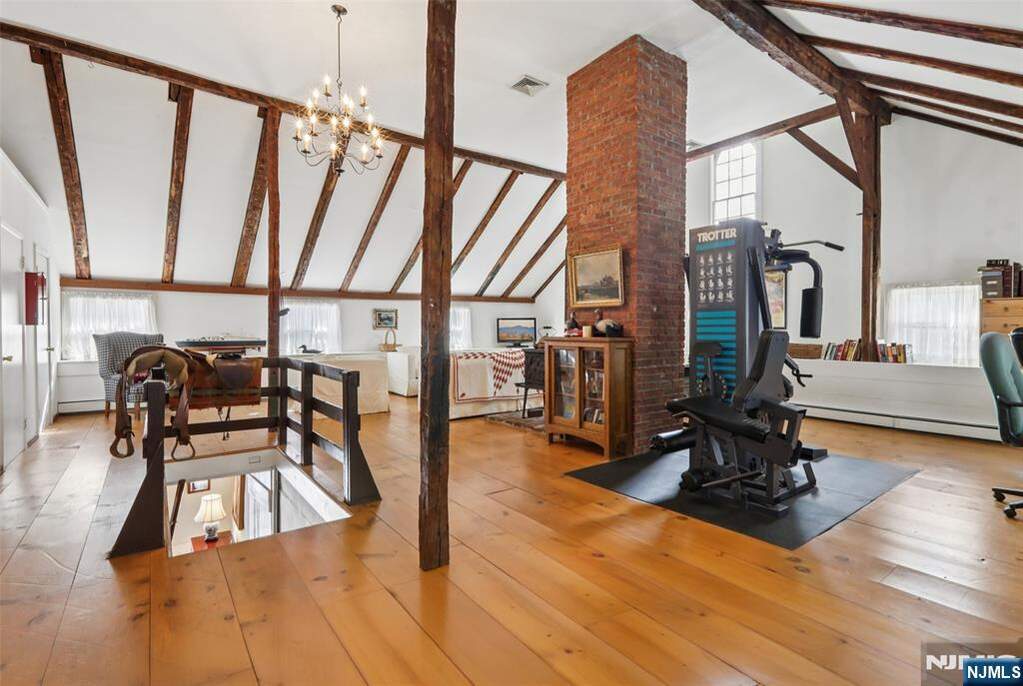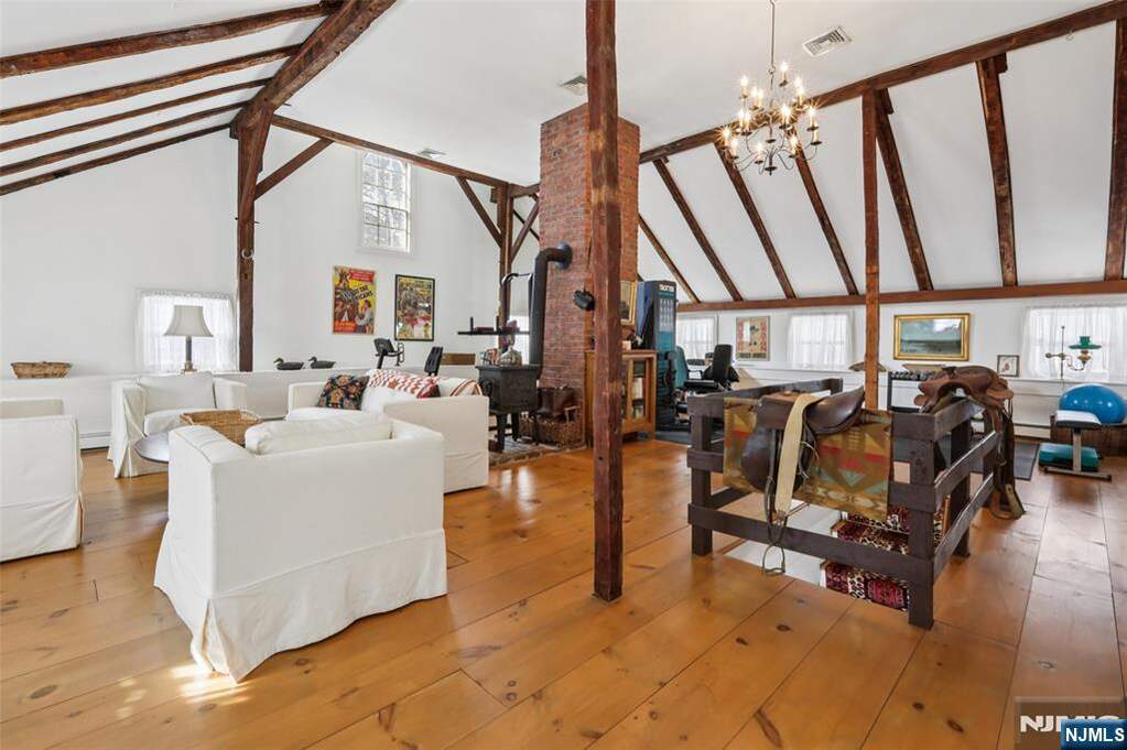 RARE OPPORTUNITY to own a definitive piece of American history with the Van Buskirk Home, the very first residence built in Saddle River. Circa 1707, this Red Sandstone Dutch Colonial has a storied past while sitting on over 2 lush acres offering modern amenities such as a freeform pool, oversized patios, and a tennis court - all perfect for entertaining. The residence underwent an extensive updates/renovations im the mid 1990s, including a full kitchen addition, bathroom updates, new plumbing and electric, structural reinforcement with new beams, refinished flooring, new roof, and more. Enter to find masterfully preserved heritage with grand hand-hewn beams, wide-plank floors, and 4 original fireplaces, including an architecturally distinct open loft/great room with 13-foot beamed cathedral ceilings. Modern aesthetics integrate through thoughtful updates, featuring a chefaEURs kitchen with radiant heated floors and living space where walls of glass offer serene views of the pond and waterfall. Completing the primary levels is a stately home office, first-floor primary suite with a steam shower, plus four upstairs bedrooms and two baths. A hidden door off the entry foyer leads to a basement with significant improvements, posing exceptional potential for finished space. Enjoy the versatile heated barn provides two car bays, horse stalls, and a massive second floor perfect for a gym, studio, or party space. This is a once-in-a-generation opportunity to steward a landmark propert