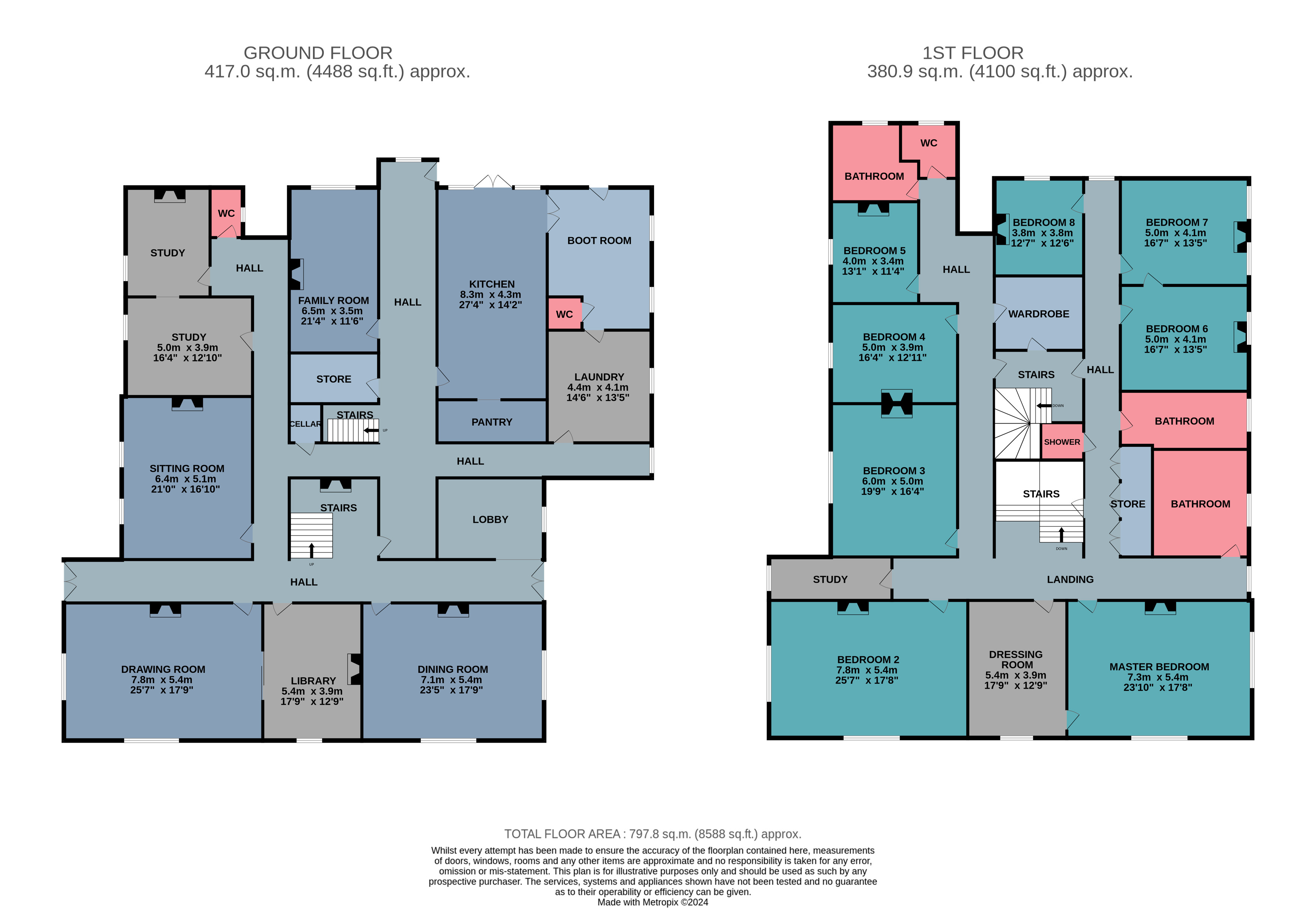 You will find seven more generously sized double bedrooms on this floor, each offering a unique view of the surrounding grounds. This floor also includes a shower room, study, and an additional bathroom. Another bathroom and a WC are awaiting refurbishment, offering potential for personalisation. While a second internal staircase provides extra access to the ground floor.