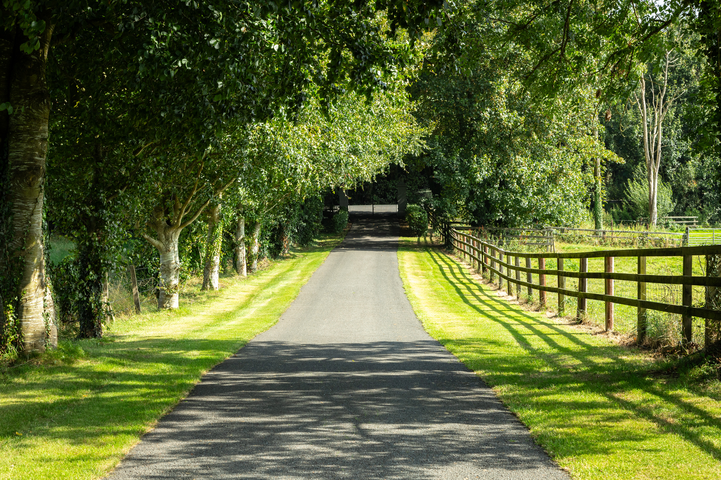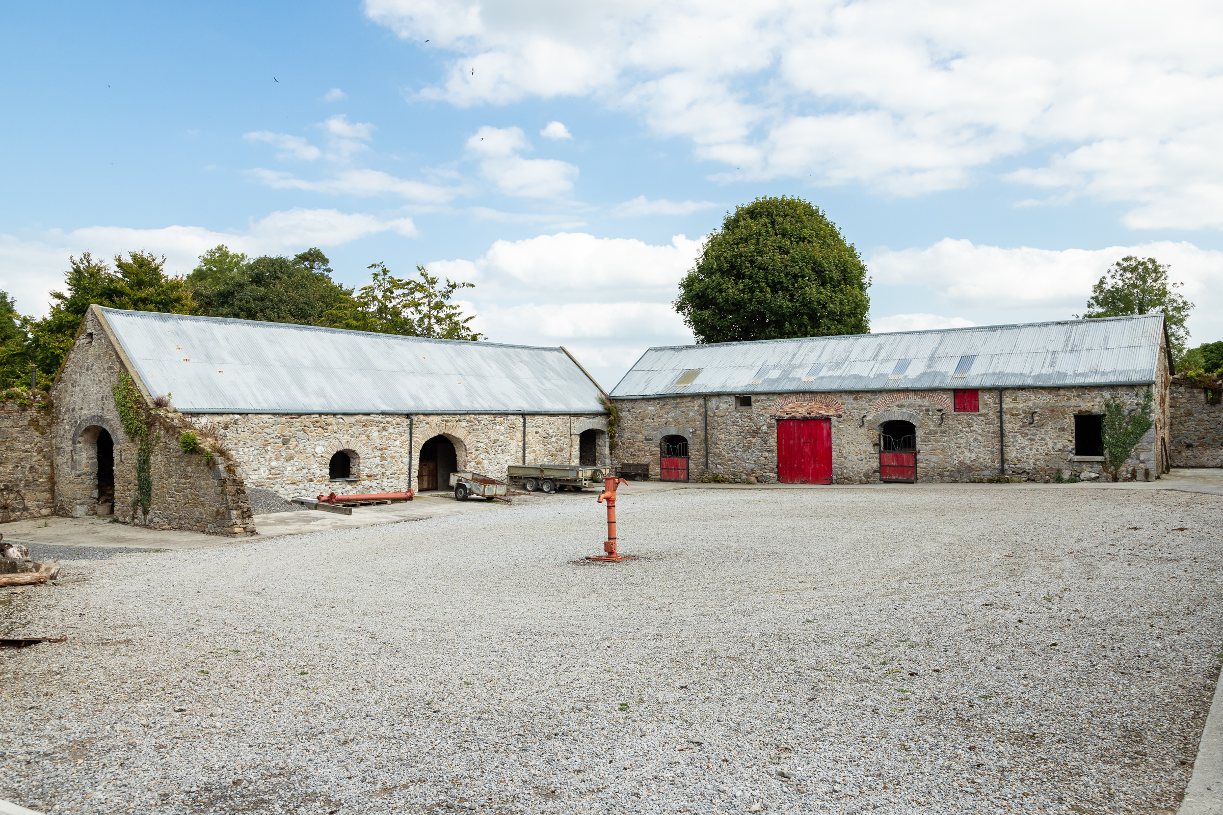 Cangort House is set within splendid grounds, extending to approximately 9.67 hectares (23.9 acres). A pair of electric gates welcome you to the property, where a tarmac driveway, bordered by trees and post and rail fencing, stretches ahead, passing by paddocks to the left. As you draw closer to the house, the driveway gently splits, allowing you the choice to drive up to the front entrance or to the courtyard and stables. As you approach the front of the house, a large turning circle greets you, with a mature beech tree standing proudly at its centre while manicured lawns unfold before you.