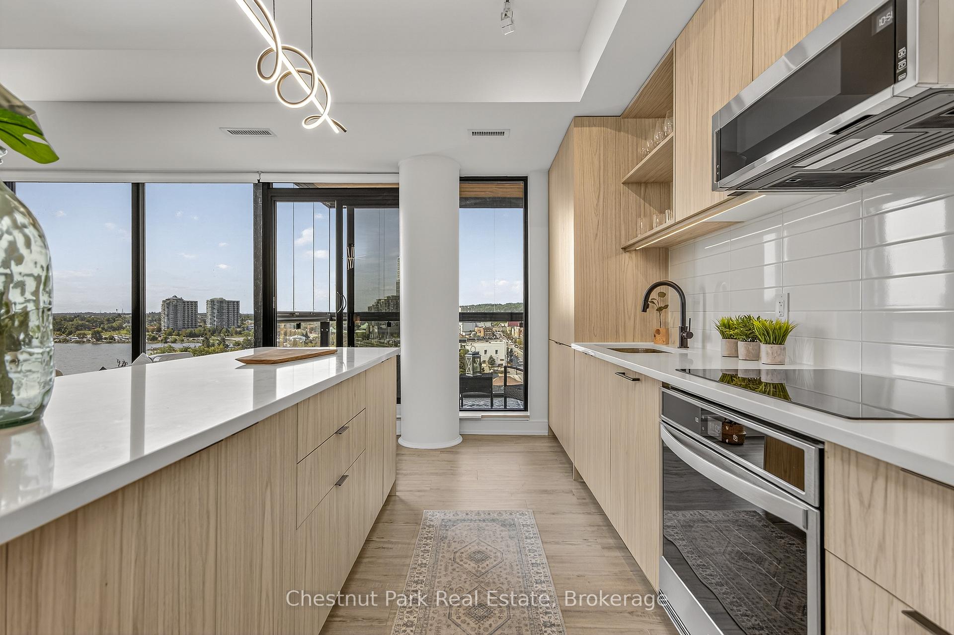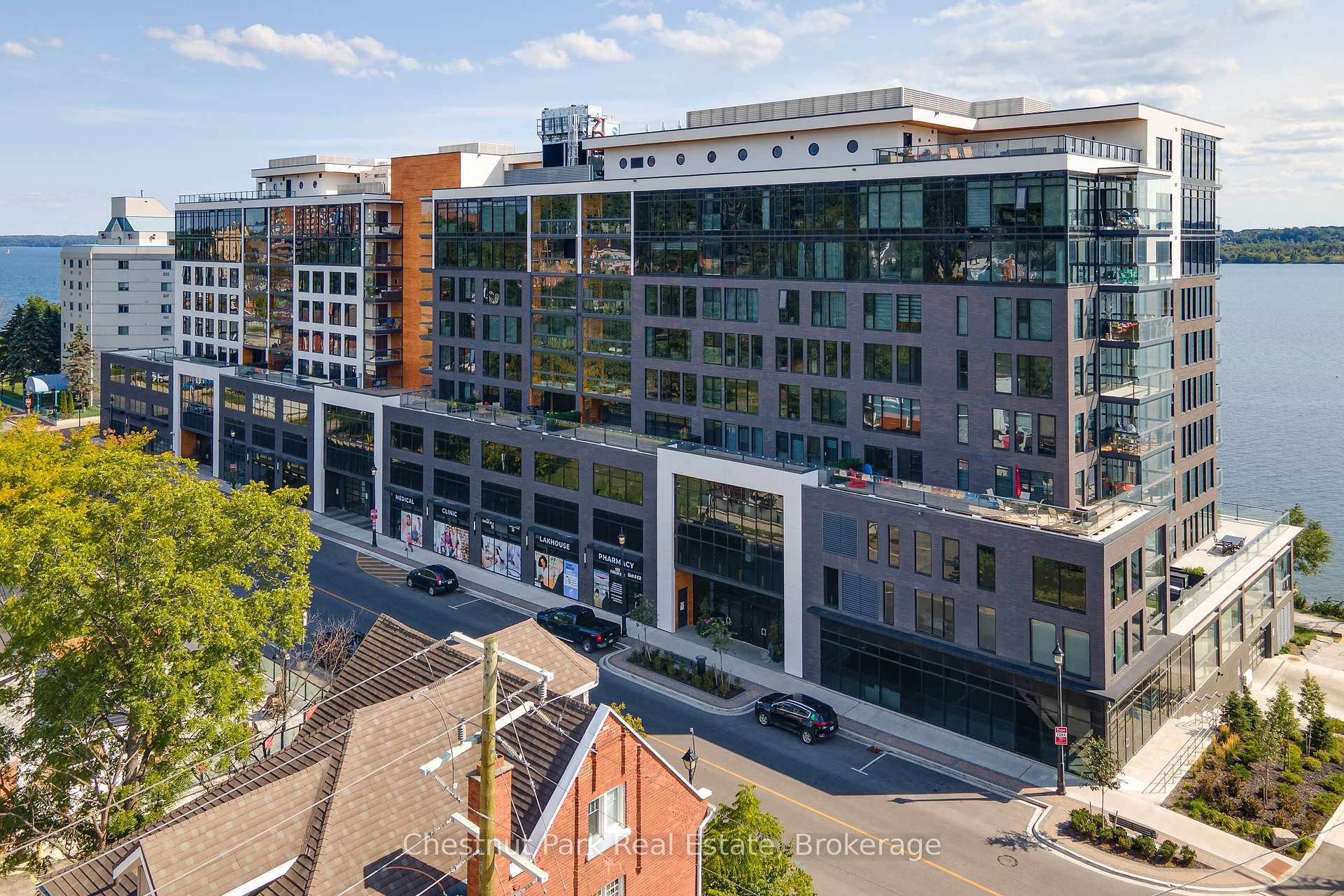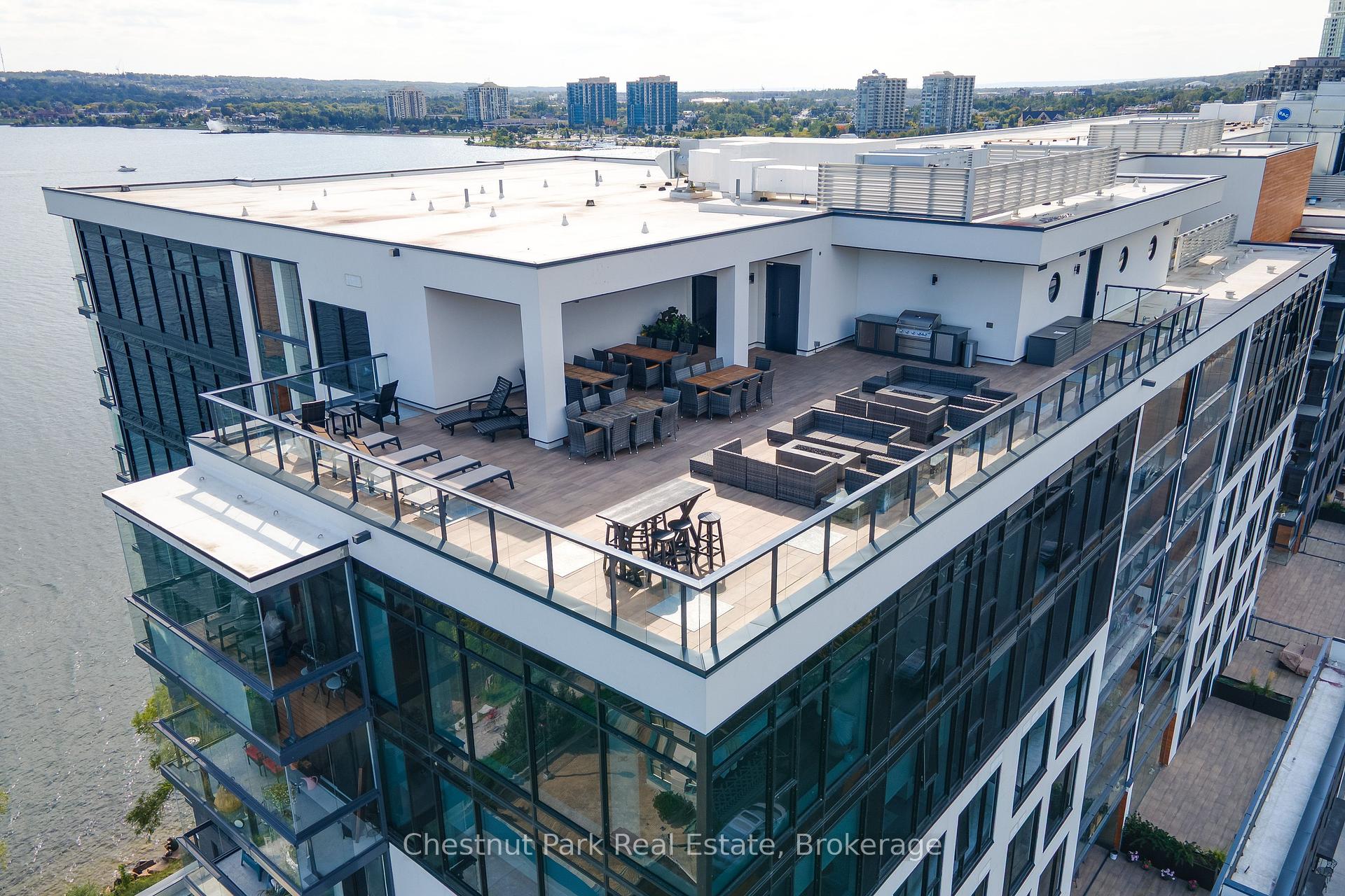 The Lakhouse Lifestyle beckons at Barrie's premium downtown lakefront residence. More than just a place to call home, Lakhouse is where beautiful contemporary design & luxurious resort inspired living bring a friendly community together to improve your quality of life. Featuring 2 bdrms, large den & 2.5 baths, at 1726 sq ft, this expansive corner suite is all about clean lines, a light & airy yet cozy vibe & stunning lake & city views being one of the top 3 floors, the only floors w/ floor to ceiling glass. Endlessly interesting, revel in the everchanging blues of Kempenfelt Bay & the twinkling lights of the city skyline. Savour lake breezes & the incredible nightly sunset show from your 113sqft, all season Lumon glass enclosed balcony. Bright living/dining/kitchen space, perfect for relaxing or to entertain family & friends in your sleek Scandi inspired kitchen w/ Caesarstone countertops, induction cooktop & pot drawer upgrades. Zenlike primary suite w/ 2 full walls of glass, dazzling water/city views, dual closets, spa like ensuite w/ glass shower, vanity/makeup counter. Roomy 2nd bdrm w/views, 2 closets & ensuite w/ soaker tub. Make the den your own as an office/home entertainment rm or convert to a 3rd bdrm. Plentiful storage throughout + same floor storage locker. Over $25K in upgrades including PAX closet inserts & R/C window blinds. Embrace the outstanding amenities: fabulous fitness/gym/yoga rm; gorgeous spa area w/ hot tub/steam rm/sauna overlooking the lake; swim docks to enjoy the clear waters of Lk Simcoe; patio; massive east & west rooftop decks w/ BBQ areas, loungers, gas f/p's, rooftop kitchen; guest suites; petwash station, organized socials. Enjoy a stunning party rm & chef's kitchen to connect w/ Lakhouse friends or host an upscale gathering. 1 parking spot included (2nd spot available for purchase @ $50K if needed). Paddle the bay, walk/bike the North Shore trail, stroll to amazing dining/park/beach. Life is good & the living is easy at Lakhouse Light fixtures, window coverings/remotes, fridge, dishwasher, microwave, cooktop/built in oven, washer/dryer