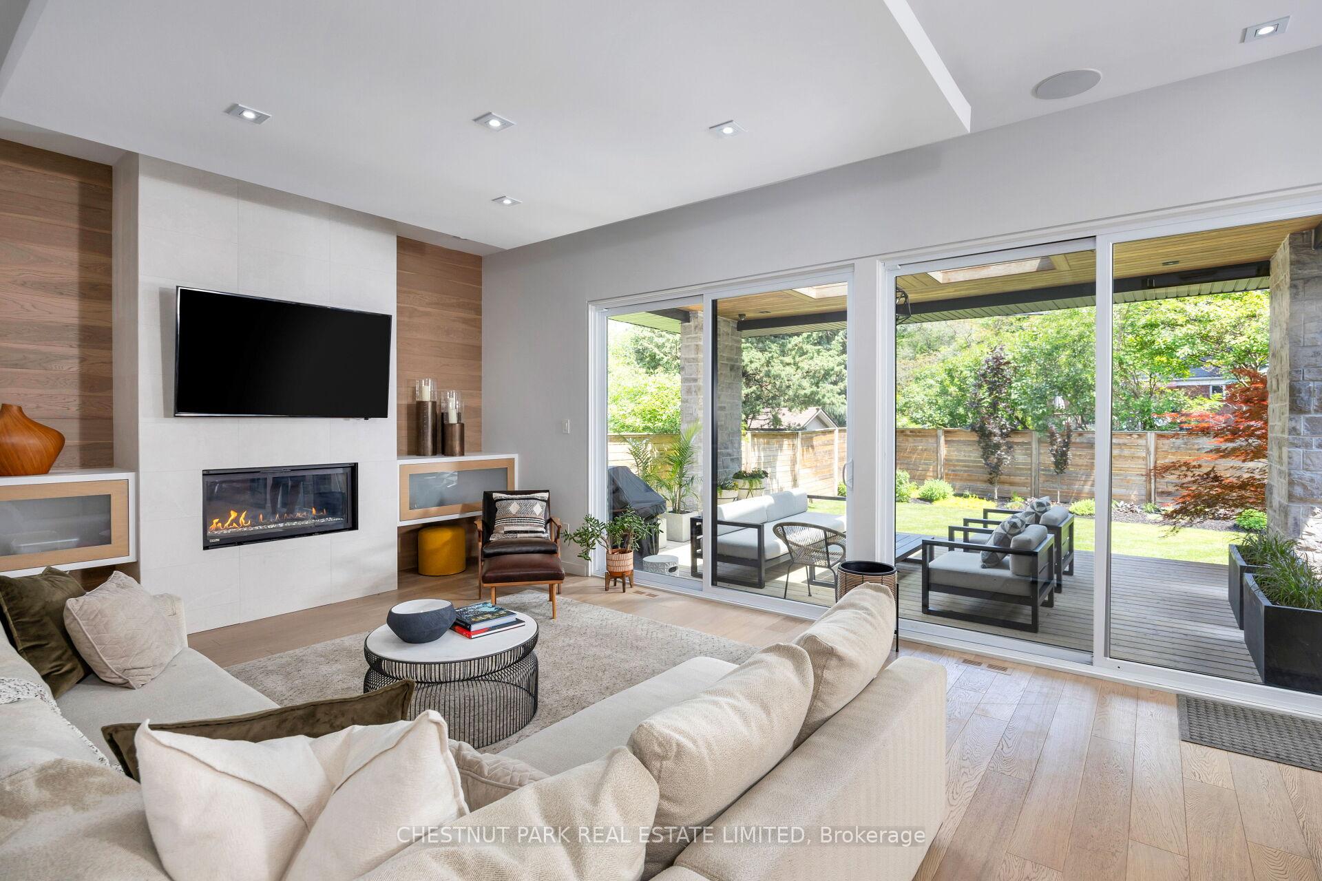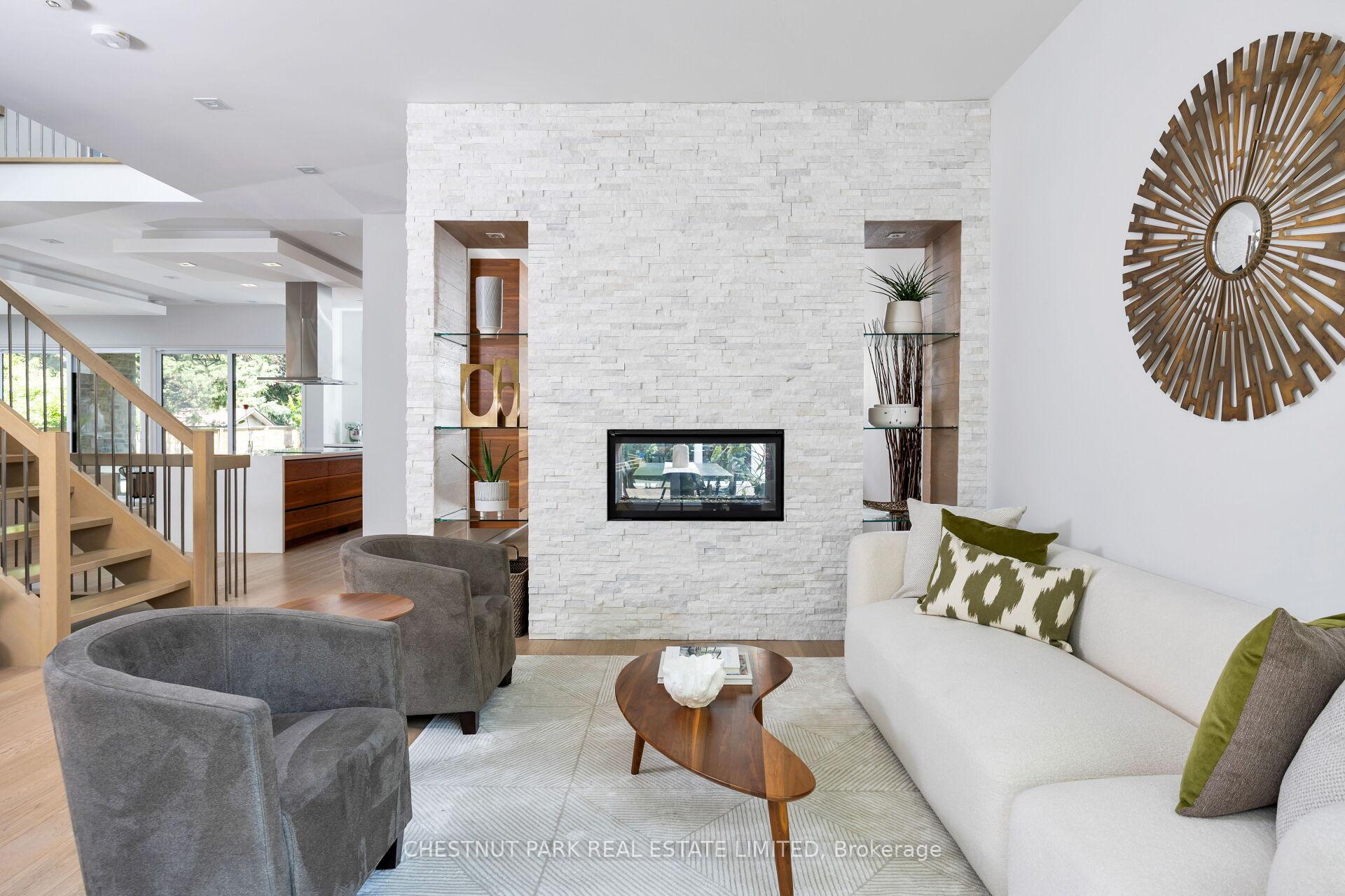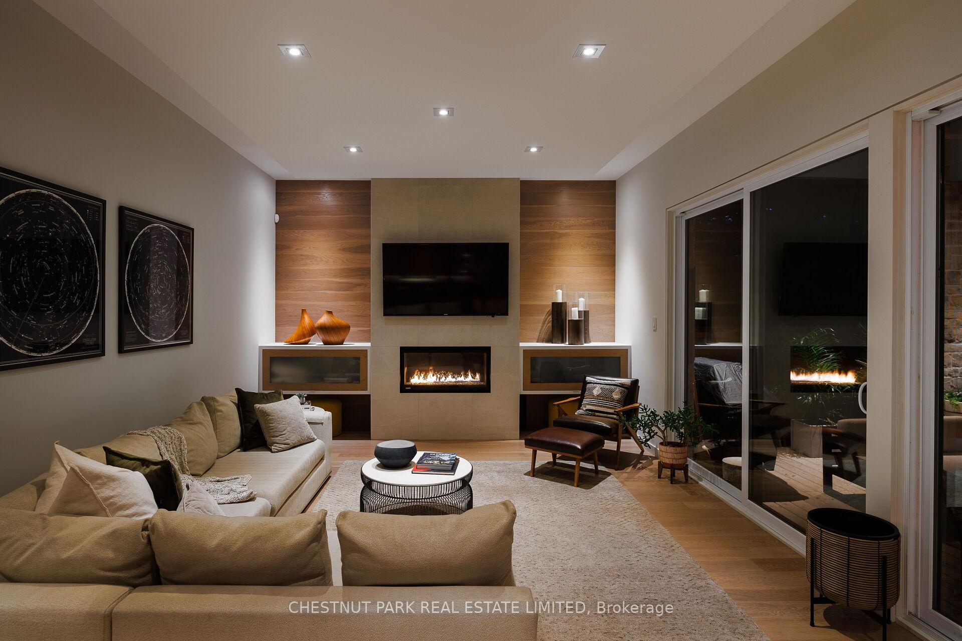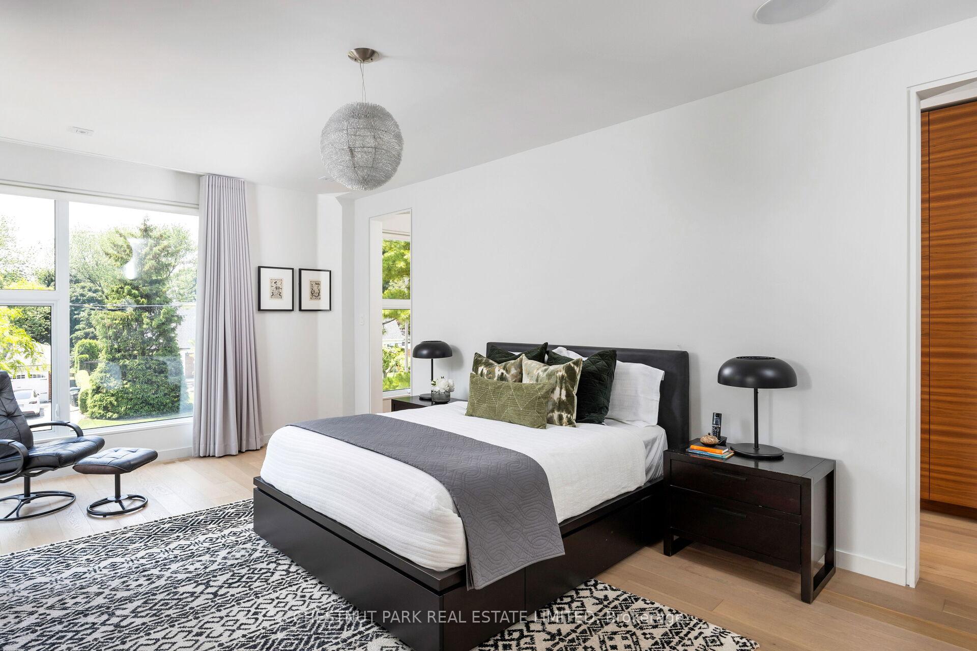 Discover the essence of timelessly designed contemporary living at 2121 Harvest Dr: a marvel that blends sophistication & modern comfort, nestled on a quiet street within South Mississauga's coveted Applewood Acres. This luxurious 2-storey, 4+1-bed, 5-bath contemporary, sun-drenched home, custom-built in 2016, features just about 5,000 sq ft of total indoor living space on 3 levels & beautifully designed landscaped exteriors with a covered rear deck. It utilizes its remarkable scale to balance family life with space & features for unparalleled entertainment. Every inch of this spacious home is usable for quiet retreat & leisure while merging quality workmanship with clever design - the home's main level features soaring 10-ft ceilings, floor-to-ceiling windows that flood the space with natural light, white oak hardwood floors, solid wood doors, dramatic fireplaces & premium custom built-in walnut finishes throughout. The home's 2nd level features 4 bedrooms & 3 serene, spa-inspired bathrooms. The primary bedroom features a dramatic double-sided gas fireplace, creating a calm, focused space in which to start or end the day. The primary also features a 5-piece ensuite with double sinks & quartz vanities, a standalone soaker tub, & an oversized glass walk-in shower. The primary has the perfect walk-in wardrobe room with floor-to-ceiling, wall-to-wall, his-and-hers, custom walnut cabinetry. Retreat downstairs to the lower level, featuring wide windows for natural light, in-floor heating & white oak hardwood flooring. The lower level includes a spacious media room with custom-built-in walnut cabinetry, built-in speakers, & a designer gas fireplace. Also included is a well-proportioned bedroom with an adjacent 3-piece bathroom. Another unique feature is the sound-treated music studio. The glass-walled gym provides an ideal backdrop in which to be invigorated. After a workout or at the end of a busy day, unwind by the adjacent wet bar with family & friends. See Schedules B & C.