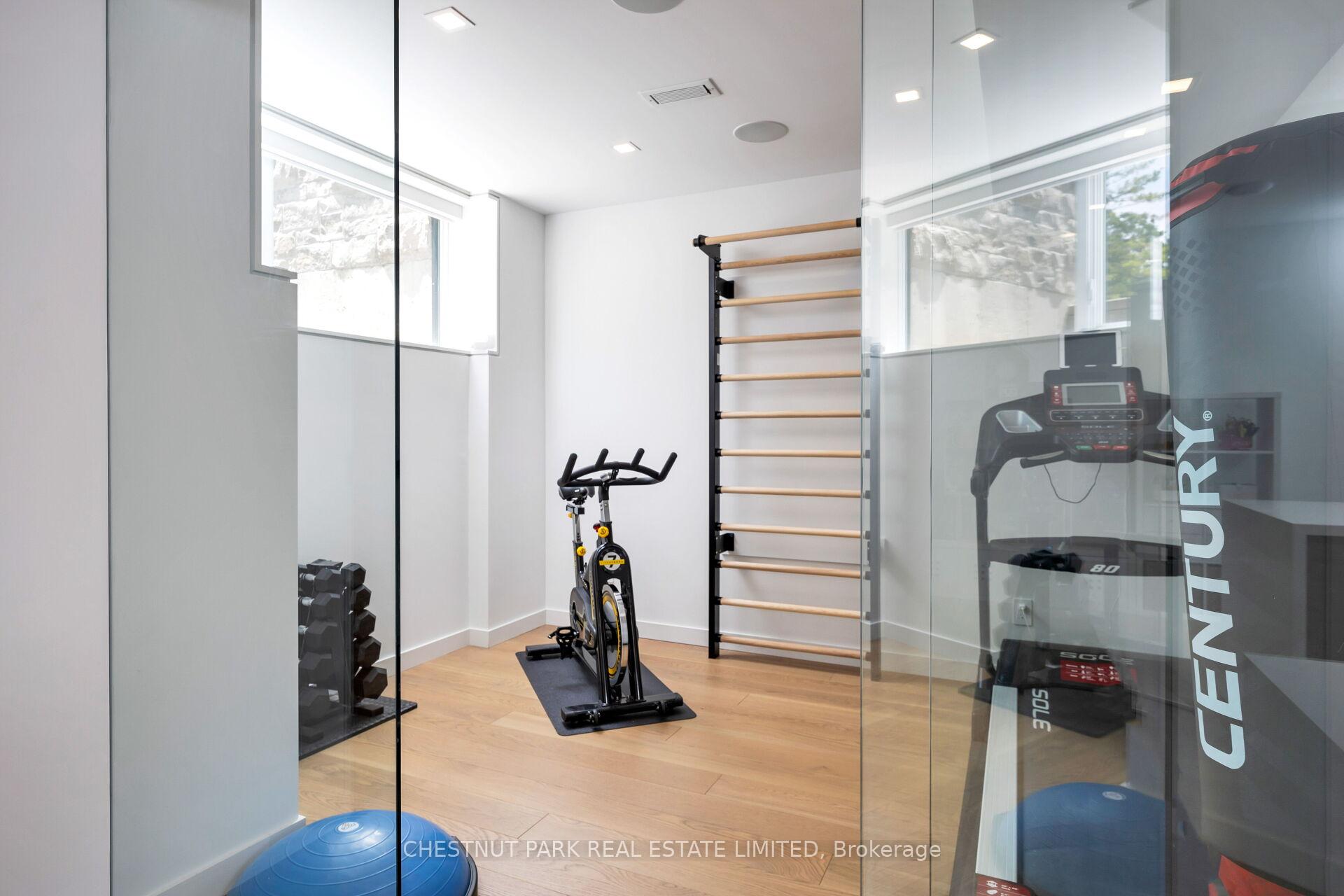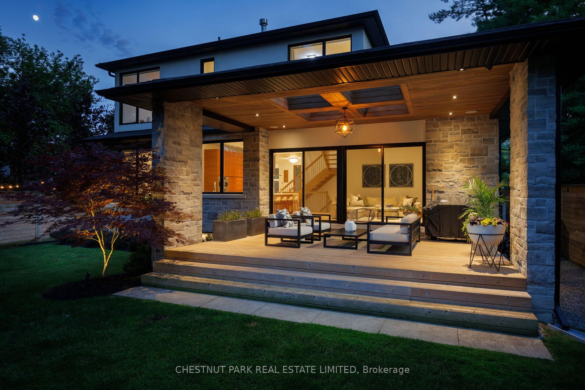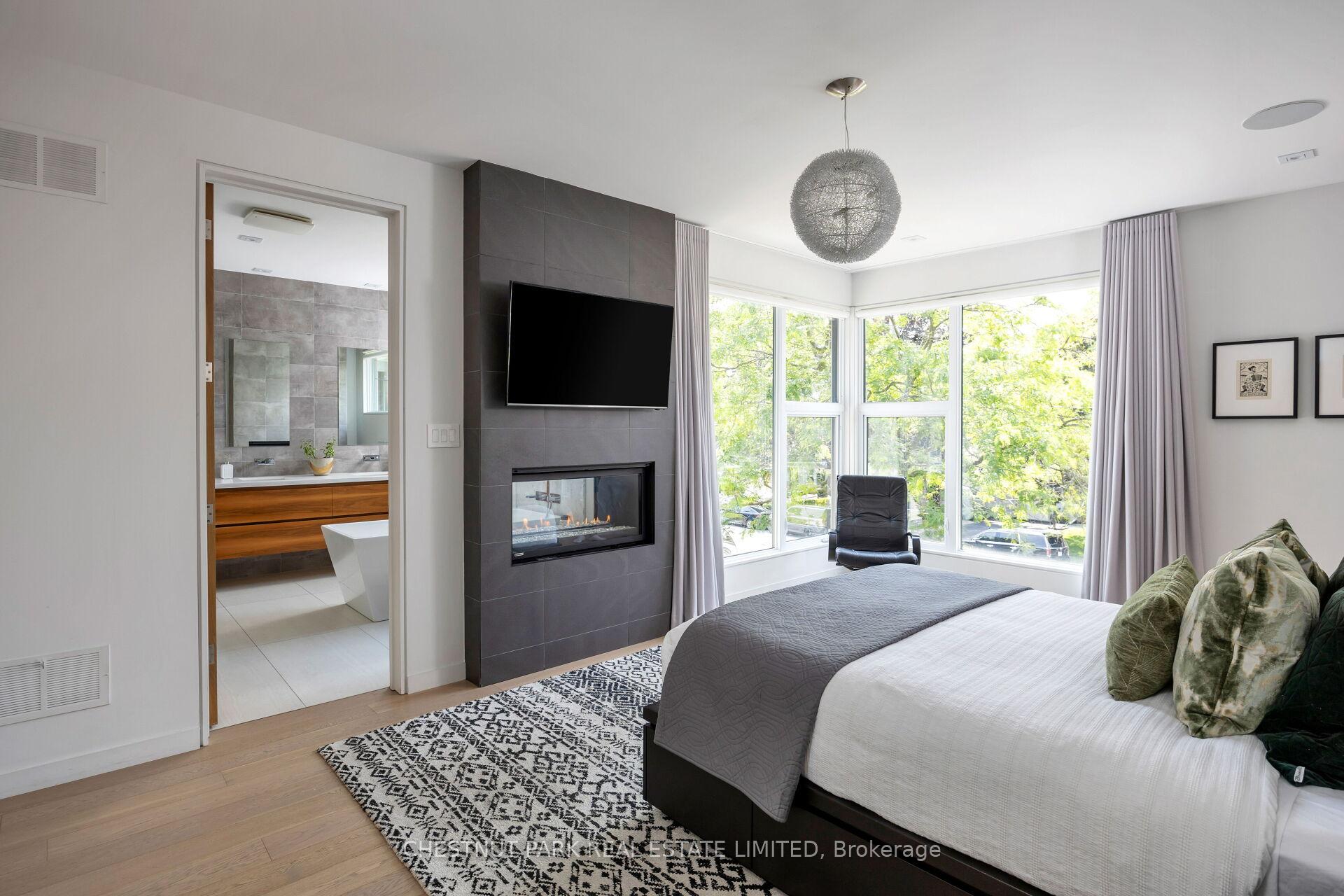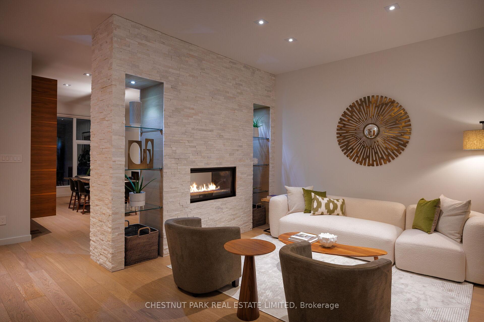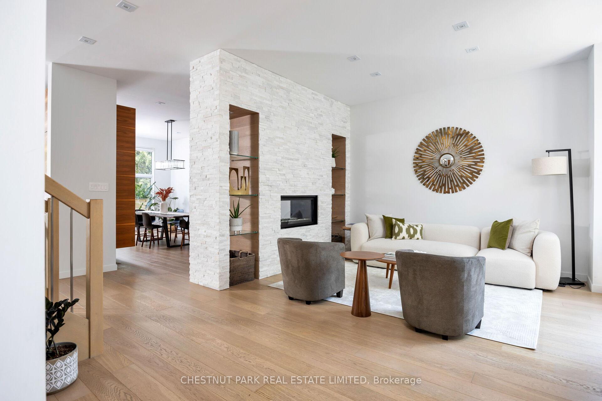 Discover the essence of timelessly designed contemporary living at 2121 Harvest Dr: a marvel that blends sophistication & modern comfort, nestled on a quiet street within South Mississauga's coveted Applewood Acres. This luxurious 2-storey, 4+1-bed, 5-bath contemporary, sun-drenched home, custom-built in 2016, features just about 5,000 sq ft of total indoor living space on 3 levels & beautifully designed landscaped exteriors with a covered rear deck. It utilizes its remarkable scale to balance family life with space & features for unparalleled entertainment. Every inch of this spacious home is usable for quiet retreat & leisure while merging quality workmanship with clever design - the home's main level features soaring 10-ft ceilings, floor-to-ceiling windows that flood the space with natural light, white oak hardwood floors, solid wood doors, dramatic fireplaces & premium custom built-in walnut finishes throughout. The home's 2nd level features 4 bedrooms & 3 serene, spa-inspired bathrooms. The primary bedroom features a dramatic double-sided gas fireplace, creating a calm, focused space in which to start or end the day. The primary also features a 5-piece ensuite with double sinks & quartz vanities, a standalone soaker tub, & an oversized glass walk-in shower. The primary has the perfect walk-in wardrobe room with floor-to-ceiling, wall-to-wall, his-and-hers, custom walnut cabinetry. Retreat downstairs to the lower level, featuring wide windows for natural light, in-floor heating & white oak hardwood flooring. The lower level includes a spacious media room with custom-built-in walnut cabinetry, built-in speakers, & a designer gas fireplace. Also included is a well-proportioned bedroom with an adjacent 3-piece bathroom. Another unique feature is the sound-treated music studio. The glass-walled gym provides an ideal backdrop in which to be invigorated. After a workout or at the end of a busy day, unwind by the adjacent wet bar with family & friends. See Schedules B & C.