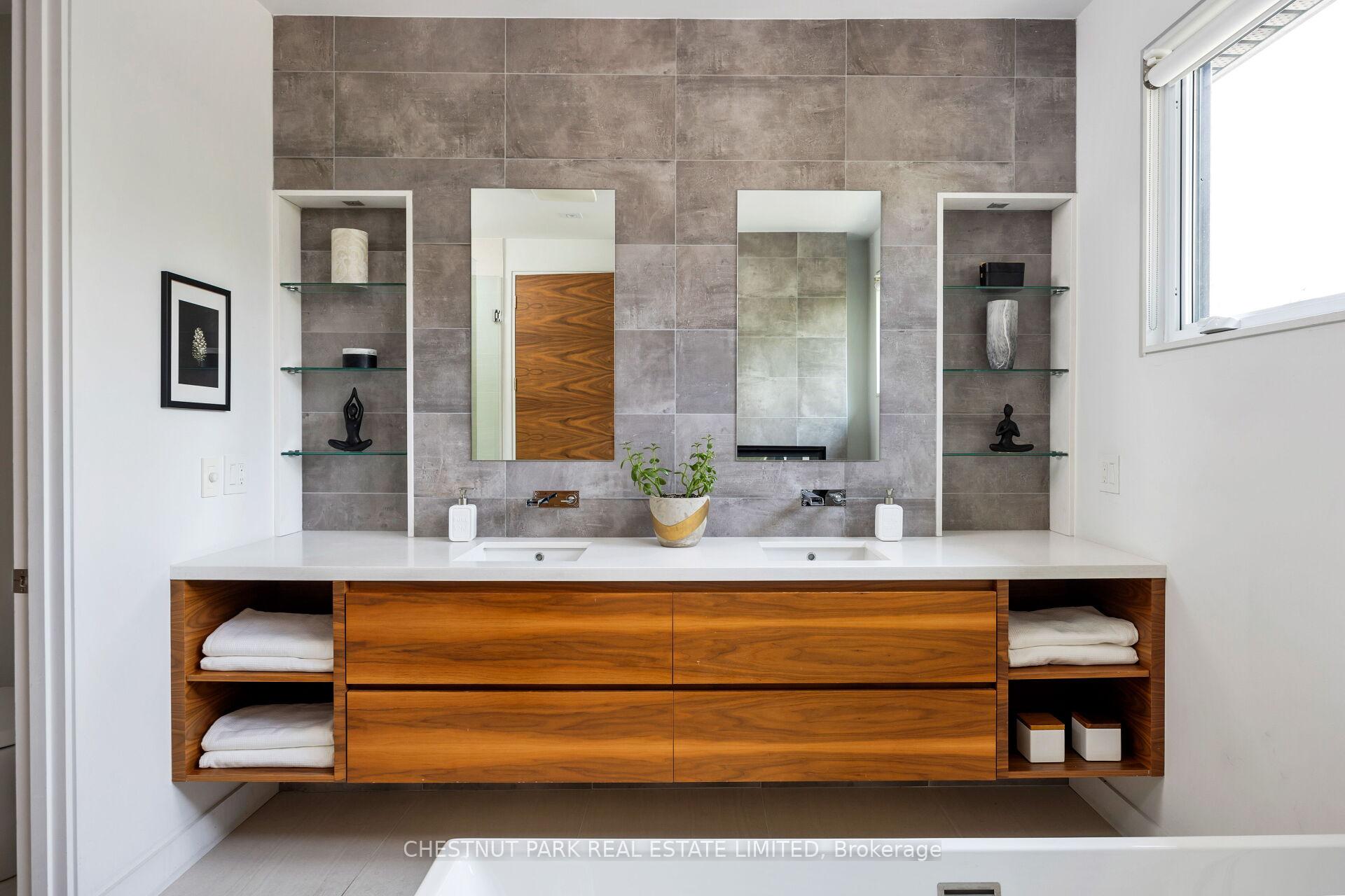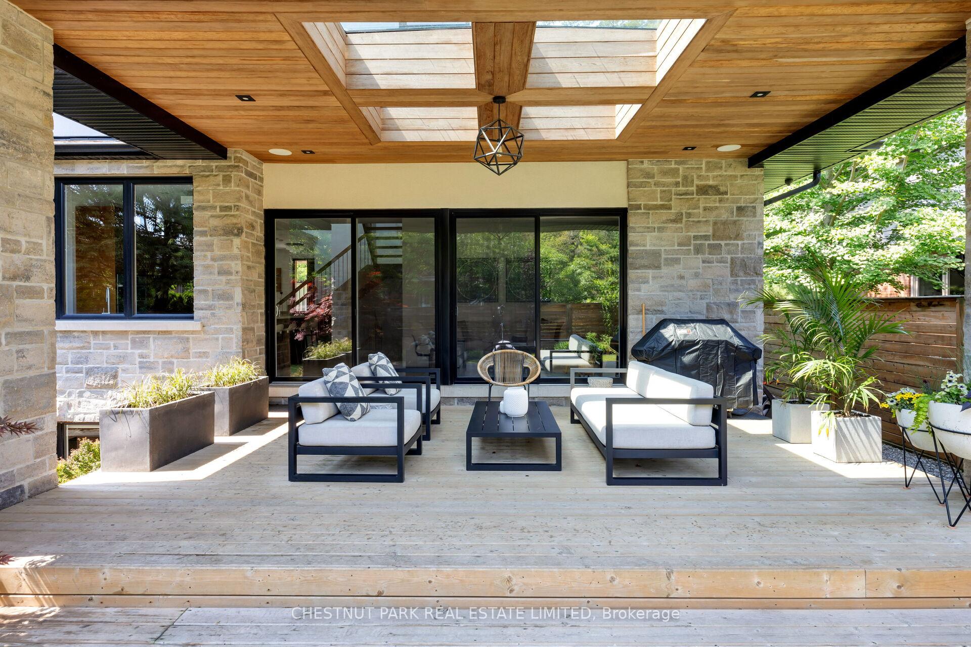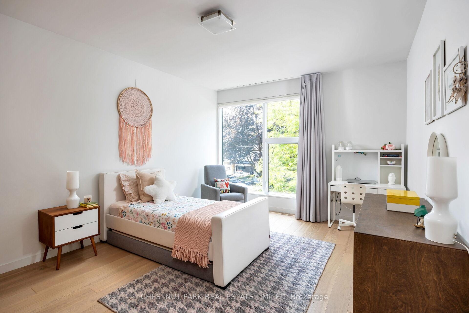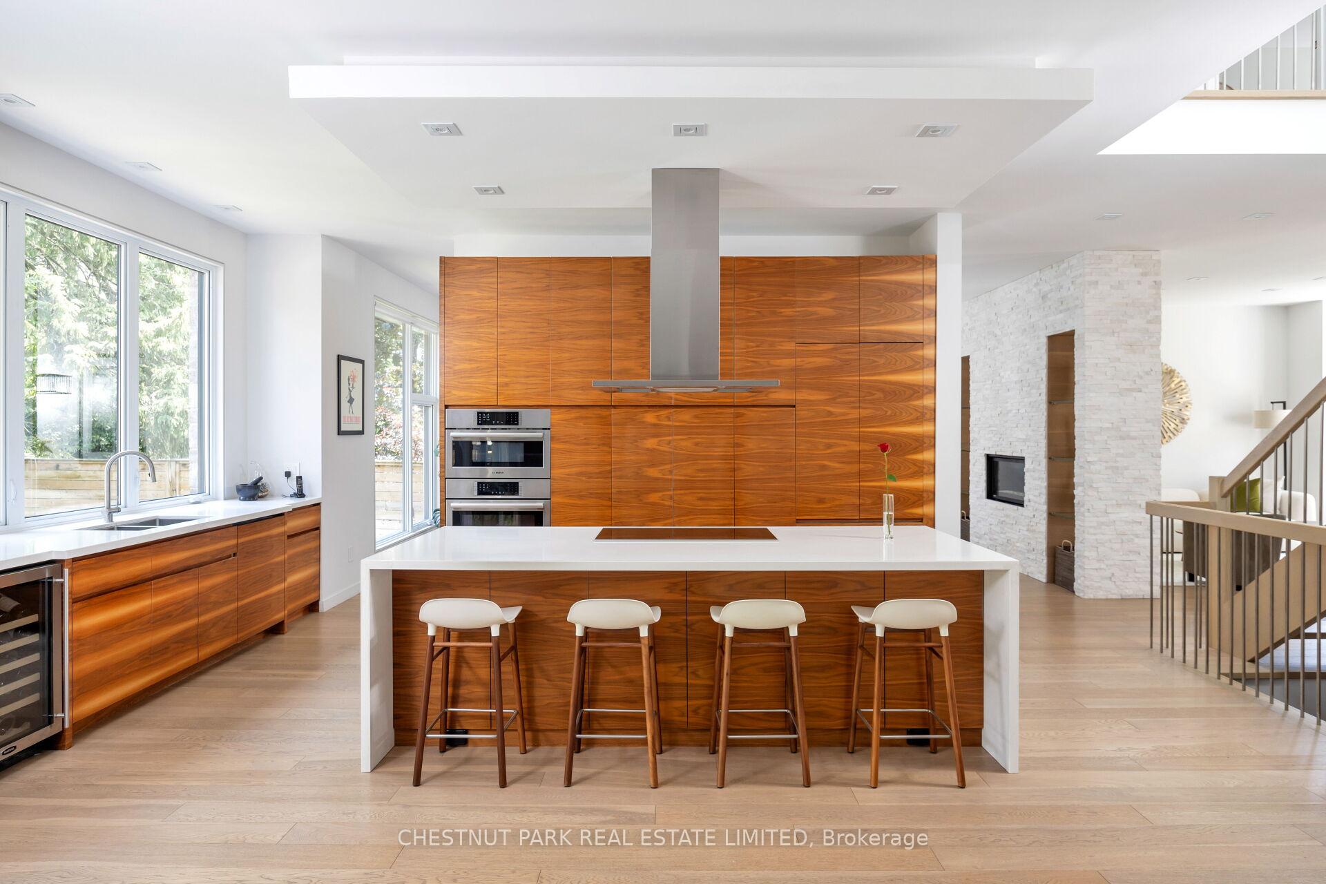 Discover the essence of timelessly designed contemporary living at 2121 Harvest Dr: a marvel that blends sophistication & modern comfort, nestled on a quiet street within South Mississauga's coveted Applewood Acres. This luxurious 2-storey, 4+1-bed, 5-bath contemporary, sun-drenched home, custom-built in 2016, features just about 5,000 sq ft of total indoor living space on 3 levels & beautifully designed landscaped exteriors with a covered rear deck. It utilizes its remarkable scale to balance family life with space & features for unparalleled entertainment. Every inch of this spacious home is usable for quiet retreat & leisure while merging quality workmanship with clever design - the home's main level features soaring 10-ft ceilings, floor-to-ceiling windows that flood the space with natural light, white oak hardwood floors, solid wood doors, dramatic fireplaces & premium custom built-in walnut finishes throughout. The home's 2nd level features 4 bedrooms & 3 serene, spa-inspired bathrooms. The primary bedroom features a dramatic double-sided gas fireplace, creating a calm, focused space in which to start or end the day. The primary also features a 5-piece ensuite with double sinks & quartz vanities, a standalone soaker tub, & an oversized glass walk-in shower. The primary has the perfect walk-in wardrobe room with floor-to-ceiling, wall-to-wall, his-and-hers, custom walnut cabinetry. Retreat downstairs to the lower level, featuring wide windows for natural light, in-floor heating & white oak hardwood flooring. The lower level includes a spacious media room with custom-built-in walnut cabinetry, built-in speakers, & a designer gas fireplace. Also included is a well-proportioned bedroom with an adjacent 3-piece bathroom. Another unique feature is the sound-treated music studio. The glass-walled gym provides an ideal backdrop in which to be invigorated. After a workout or at the end of a busy day, unwind by the adjacent wet bar with family & friends. See Schedules B & C.