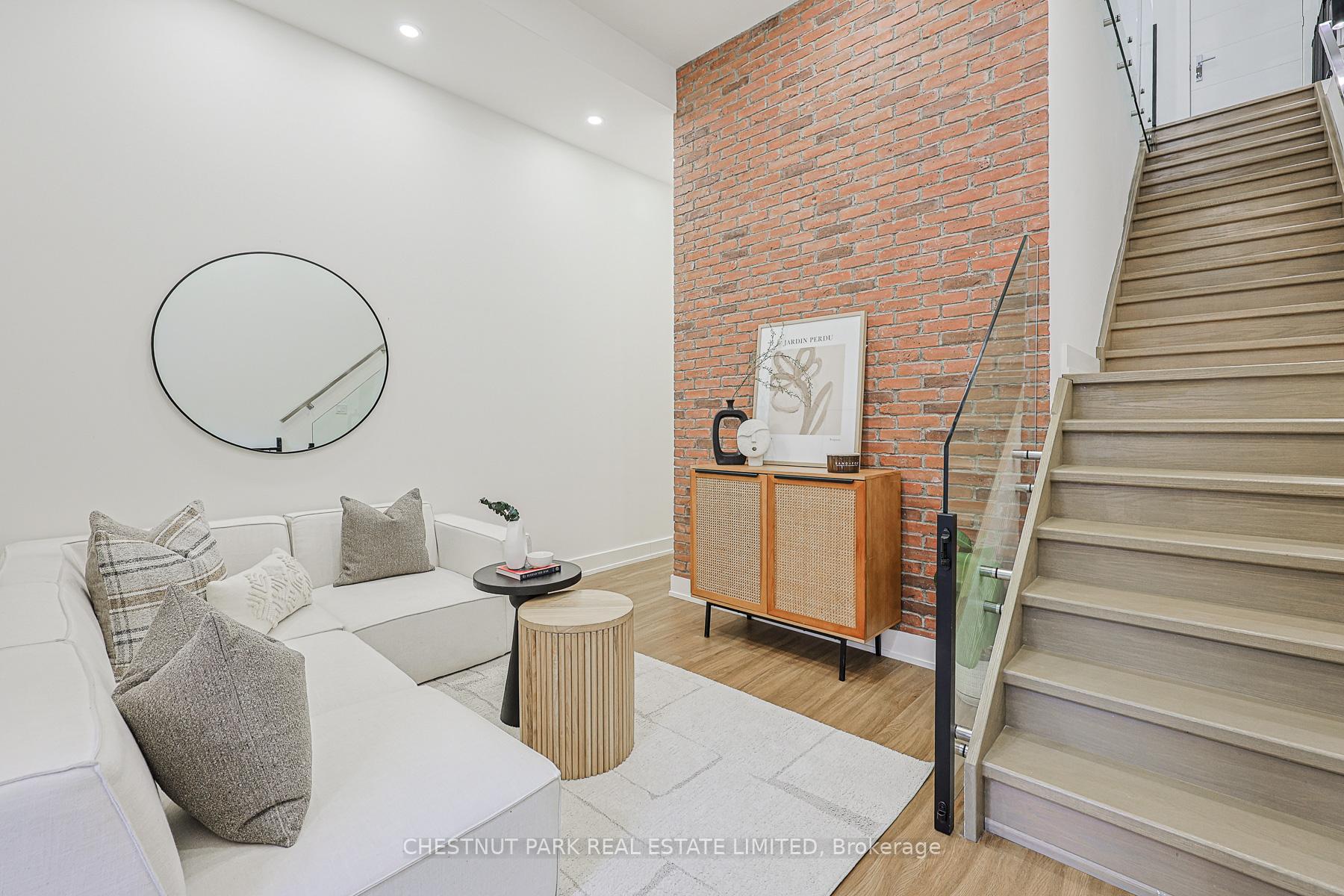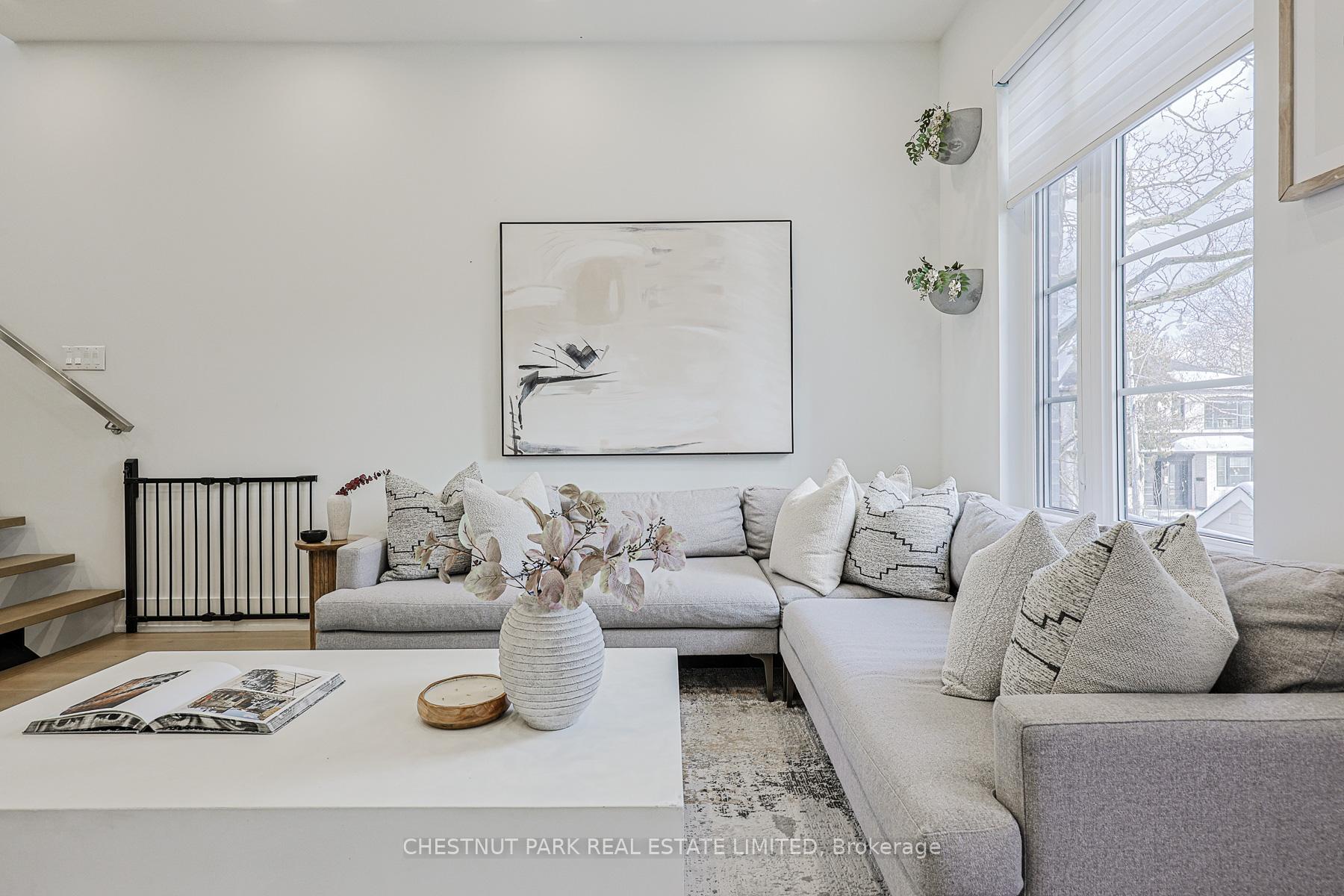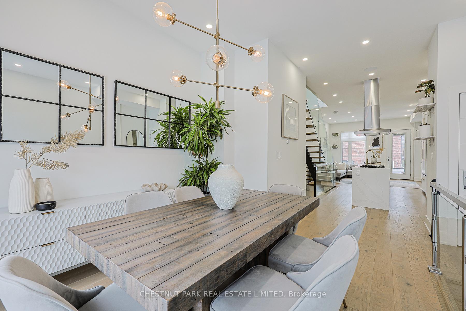 Exceptional luxury newer build, constructed with meticulous attention to detail throughout. This thoughtfully designed home offers a modern open-concept layout that's ideal for both everyday living and entertaining. The main floor is showered with natural light with large windows, and hardwood floors throughout. The custom-built kitchen is a standout feature with an oversized island offering exceptional storage and functionality. Stainless steel and built-in appliances including a 6 burner gas stove, magnificent quartz countertops, elegant gold fixtures, and carefully designed interior cabinet shelving. Combined with the kitchen, the living room is anchored by a built-in wall unit with electric fireplace and opens to the outdoor patio through a walk-out. Finishing the main floor is a spacious dining area. The upper level features three spacious bedrooms, including a primary bedroom with a three-piece ensuite bathroom complete with a skylight & heated floors. Custom closets by Closets by Design have been installed in the primary bedroom, nursery, main floor entrance, and basement, offering seamless organization and elevated design. Automatic Hunter Douglas blinds add comfort and convenience. The basement includes a walk-out to the backyard and showcases custom brick wall paneling, creating a warm and refined space. Access to the rare built-in garage provides exceptional everyday convenience. Recent exterior upgrades include a completely redesigned backyard, replacing the former wooden deck and grass yard with metal patio and stairs, concrete surfaces, and newly planted trees and landscaping. The front steps have been rebuilt and now include discreet built-in storage underneath for bins and outdoor items. Ideally located close to top public schools, TTC, and the area's best shops and restaurants, this property represents a truly outstanding opportunity. And the LRT is steps away! Easy access to the entire city! All electric light fixtures; All blinds & controllers; Built-in Fridge, counter-top gas stove; built-in wall oven, built-in microwave, built-in dishwasher; built-in electric fireplace; ceramic planters in living room; central vacuum; smart thermostat; data center in lower; tankless water heater.