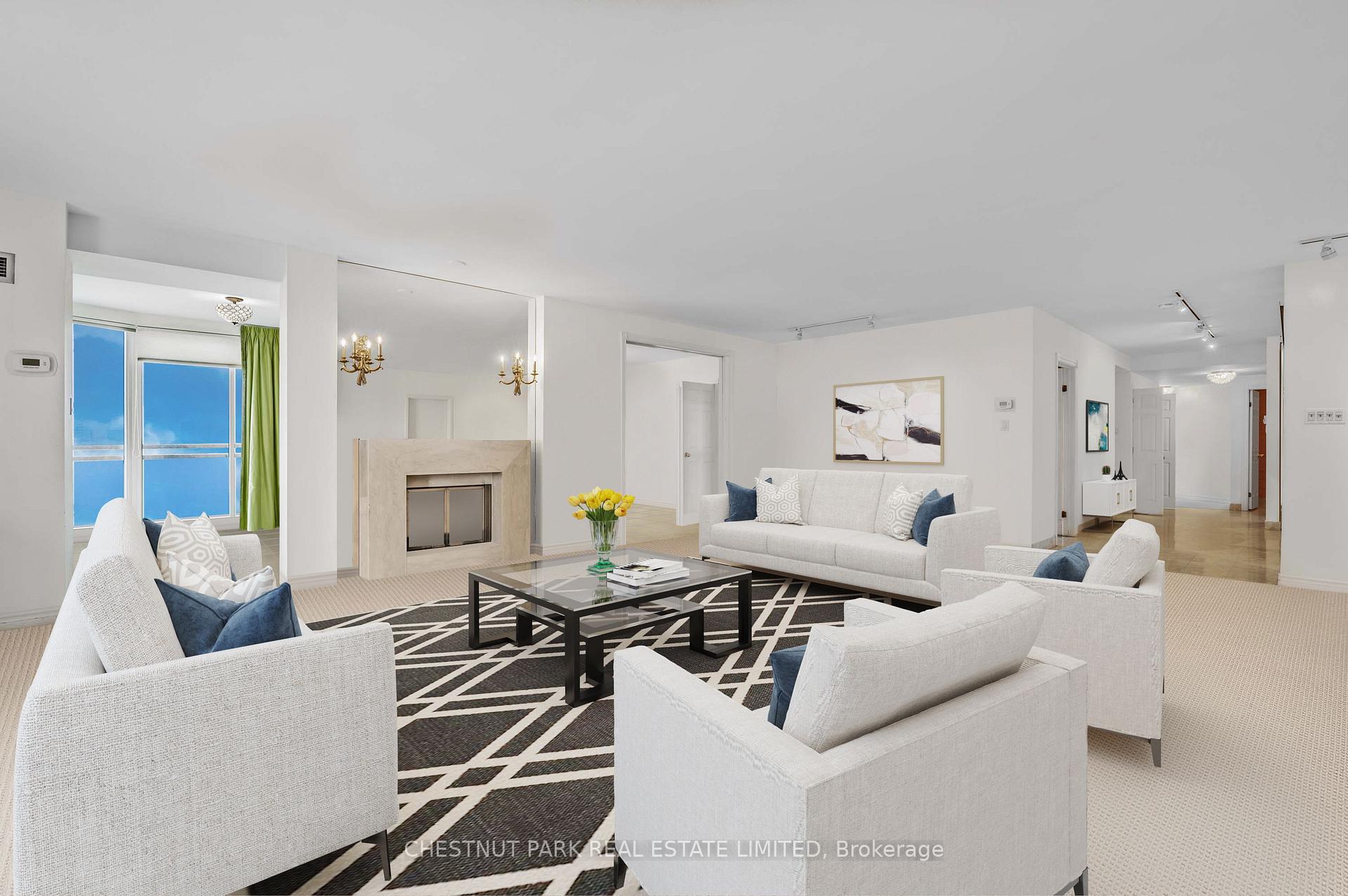 Downsizers seeking luxurious space will be captivated by this rare 4-bedroom, 3,206 sq.ft. south west corner penthouse. With thoughtfully designed, truly oversize rooms, this residence cocoons you in comfort and style. Ideal for entertaining, this penthouse features expansive walls of windows with sweeping skyline views, an indoor/outdoor "Muskoka" Room, and wrap around slimline balconies with transparent glass and sliding doors for uninterrupted vistas and fresh air. The home offers tall ceilings, a gracious dining room for 12, wood-burning fireplace, family room/solarium, fantastic eat-in kitchen, wet bar, large ensuite laundry room with sink, abundant storage, three parking spaces, and 2 concrete walled, entirely private locker rooms with steel fire doors (approx 10'x10' or 10'x 12' each). The building's windows were replaced and the elevator refurbished in 2019. A focus for suites of this size in the vibrant Yonge/St. Clair hub, this prestigious midrise boutique building is steps from the subway and surrounded by superb amenities: David Balfour Reservoir Park for dog walking, Rosedale Ravine walking trails, boutique shops, top dining, Loblaws, and Farm Boy. Refined, sophisticated, and uniquely spacious, this home offers exceptional scale and comfort - urban living at its most polished! Virtually staged "new look" photos showcase the alternative contemporary elegance options available to you. This is matchless value at the intersection of Summerhill, Deer Park and Moore Park! Excellent area amenities including indoor pool in condo.