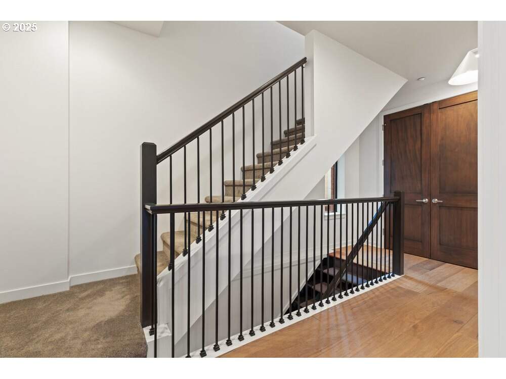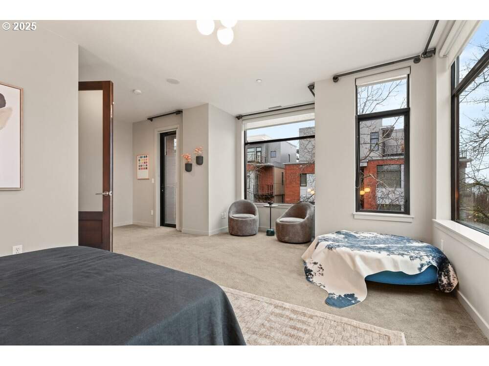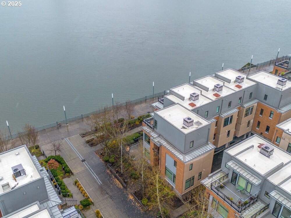 West-facing riverfront corner townhome in NW Portland's highly sought-after Riverscape community, offering beautiful river and mountain views with exceptional walkability. This light-filled residence features high ceilings and expansive windows that capture afternoon light and sunsets over the Willamette. The open-concept great room is anchored by a contemporary plaster-surrounded fireplace with a soapstone hearth, creating a warm yet modern focal point. The gourmet kitchen is thoughtfully designed with marble countertops, custom cabinetry, and high-end appliances, ideal for both everyday living and entertaining.The primary suite provides a private retreat with its own balcony, two closets, and a spa-inspired bathroom. A second bedroom suite includes a rooftop terrace, while an additional private fourth-story patio offers elevated outdoor living-perfect for relaxing, dining, or enjoying the surrounding scenery. A flexible lower-level family room adds space for media, office, or guest use.Practical amenities include an attached 2-car garage with a dedicated EV charger, full laundry room with sink, abundant storage, and thoughtful design throughout. Located directly along the waterfront trail and just minutes to Slabtown, the Pearl District, NW 23rd, dining, shopping, parks, and downtown Portland. Walk Score 76 (Very Walkable). Bike Score 95 (Biker's Paradise). A rare opportunity for refined riverfront living with privacy, convenience, and modern style.