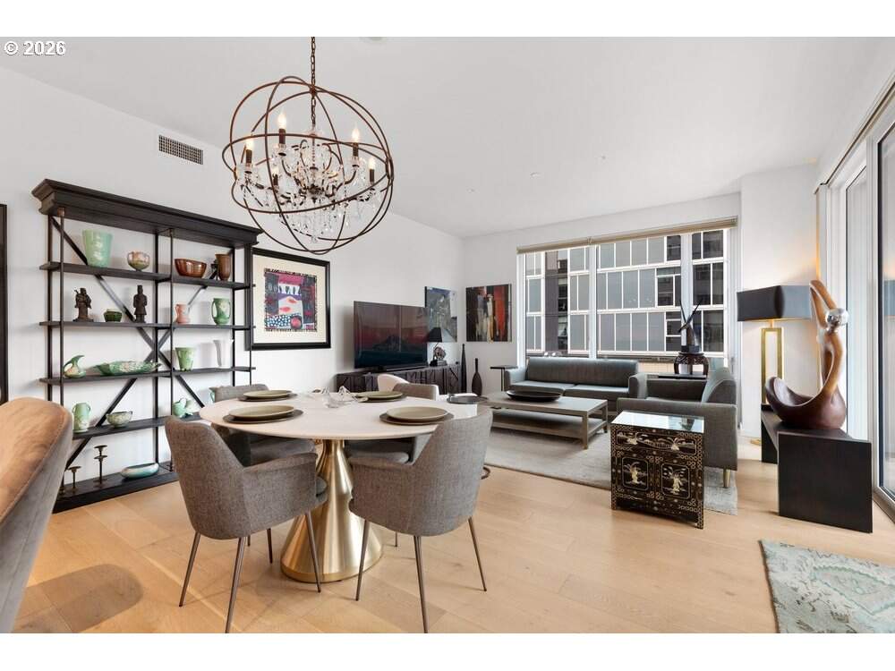 Step into Vista-where sophistication meets effortless comfort.Residence 326 offers a refined urban lifestyle, bathed in natural light and set within one of the Pearl District's most coveted addresses.Wide-plank hardwood floors, soaring ceilings, and expansive windows create a polished backdrop for both everyday living and elevated entertaining. The gourmet kitchen is thoughtfully designed with quartz countertops, Bosch appliances, an oversized gathering island, and a walk-in pantry-bringing true functionality to luxury living.The primary suite is a private retreat, featuring custom closets and a spa-inspired bath that blends clean lines with indulgent finishes, creating a space that feels both modern and serene.Vista's amenities extend your living experience well beyond your front door, with concierge service, a state-of-the-art fitness center, beautifully appointed guest suites, a sophisticated community room, and a tranquil garden designed for quiet moments in the city.Luxury with purpose-an elevated home base in the heart of the Pearl, complete with parking and storage.
