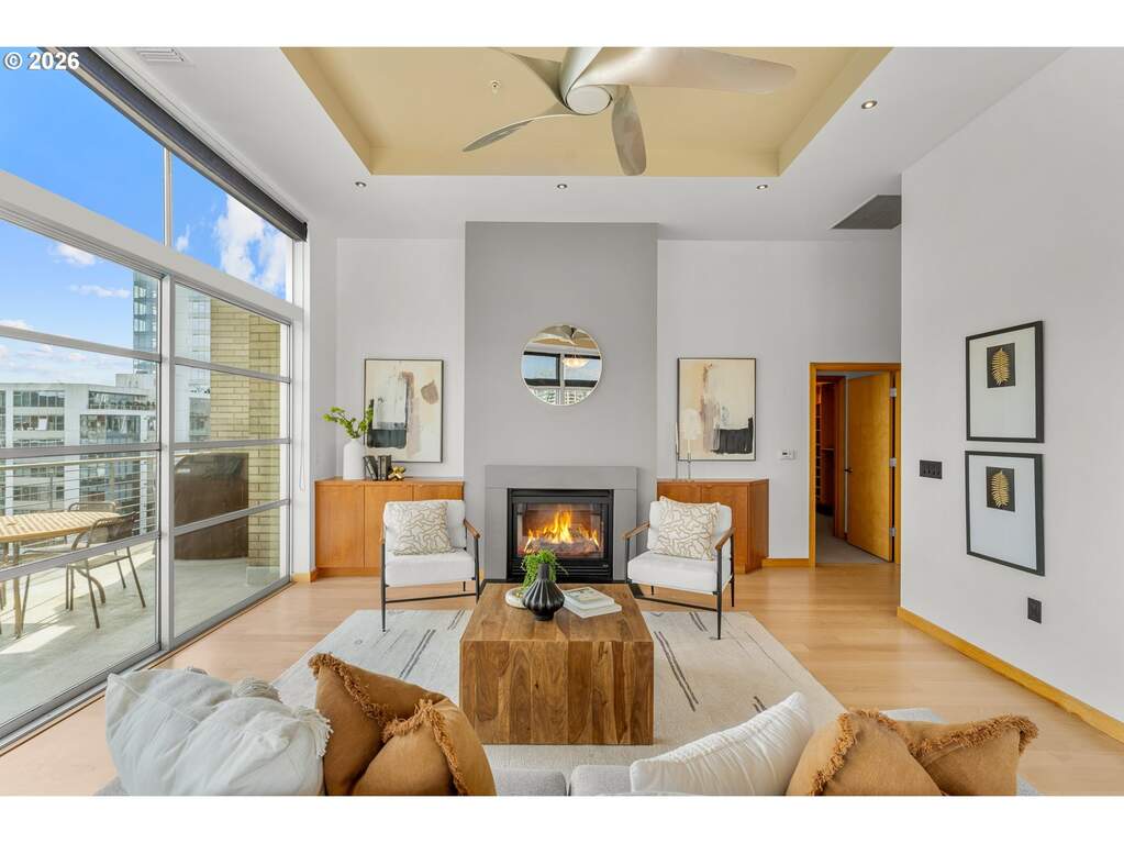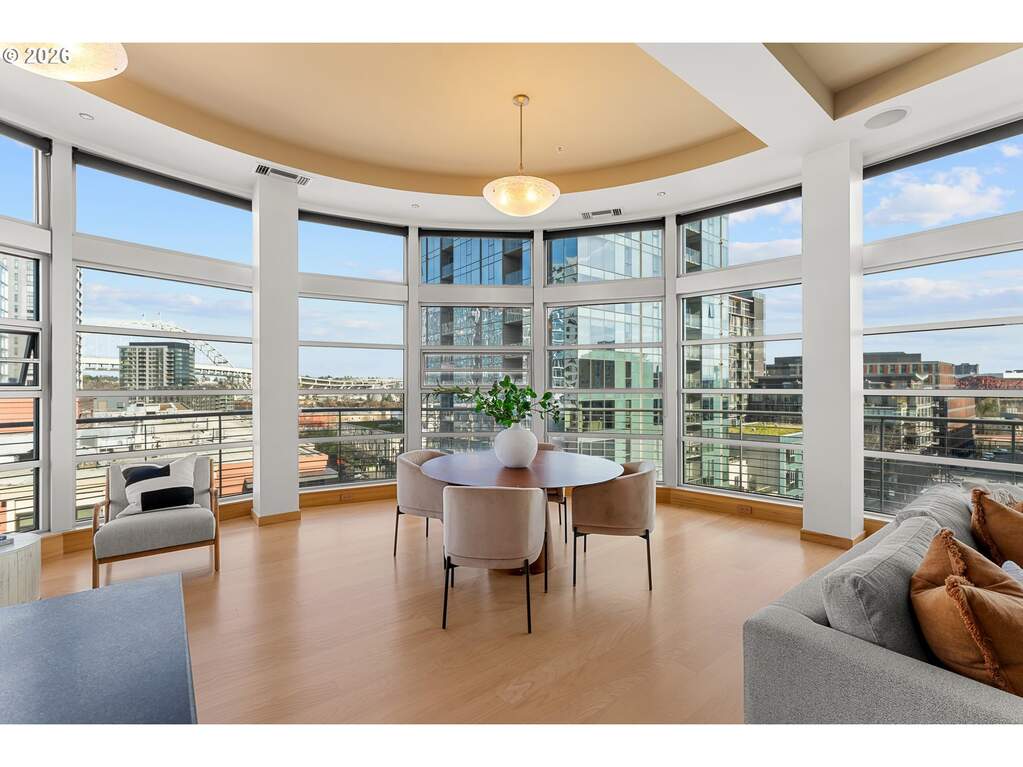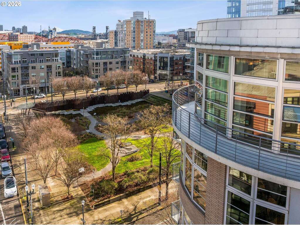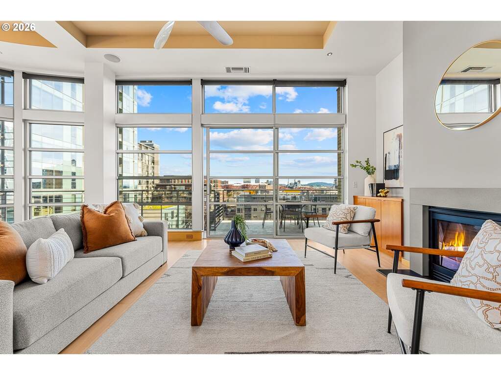 Experience elevated city living in this meticulously maintained corner residence located in the heart of Portland's sought-after Pearl District. Dramatic floor-to-ceiling windows showcase breathtaking 270-degree views overlooking Tanner Springs Park, with stunning vistas of Mt. Hood, iconic city bridges, and the river. An expansive wraparound deck seamlessly extends the living space, offering an ideal setting for entertaining or unwinding while taking in the ever-changing cityscape.The thoughtfully designed floor plan features two spacious ensuite primary bedrooms, each with walk-in closets outfitted with California Closets for exceptional organization and style. A versatile den provides the perfect space for a home office, media room, or guest retreat. Marble finishes in the bathrooms create a refined, spa-like atmosphere, while custom lighting throughout enhances the home's modern elegance. Abundant storage and meticulous upkeep are evident at every turn.Set in the vibrant Pearl District, this residence offers unparalleled access to renowned dining, boutique shopping, art galleries, parks, and the city's best cultural amenities-all just steps from your front door. A rare opportunity to enjoy sophisticated urban living, premier walkability, and truly remarkable views in one exceptional home.