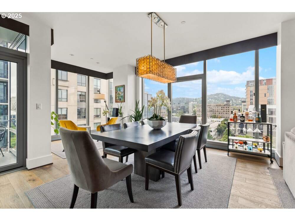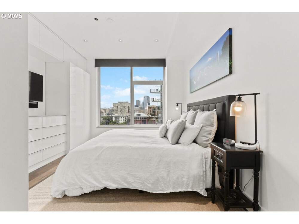 Immaculate, light-filled, and beautifully upgraded-this southwest corner residence at The Metropolitan offers luxury Pearl District living at its finest. Thoughtfully redesigned with custom enhancements throughout, this 2-bedroom, 2-bath home captures sweeping city and West Hills views through expansive walls of windows, bathing the interior in natural light.The open-concept living area features custom wood flooring and designer wall treatments, paired with integrated built-ins and a seamlessly mounted TV for a refined, cohesive aesthetic. Custom cabinetry with integrated lighting elevates both ambiance and functionality, while separate blackout shades throughout the home provide comfort and privacy at the touch of a button.The chef-inspired kitchen boasts a full suite of brand-new Viking appliances, making everyday cooking and entertaining effortless. Storage is exceptional, with California Closets throughout-including a beautifully organized primary suite wardrobe. The primary bath offers a spa-like retreat featuring a luxurious Jacuzzi tub, perfect for unwinding at the end of the day.Two secure garage parking spaces add ease and convenience to urban living.As one of the Pearl District's premier luxury buildings, The Metropolitan delivers unmatched amenities: full-time concierge service, a state-of-the-art fitness center, wine storage, conference room, library/community lounge, and guest suites for visitors.Set in the heart of the Pearl-a neighborhood celebrated for its art galleries, acclaimed restaurants, boutique shopping, parks, and effortless walkability-this residence represents a rare opportunity to experience elevated living within one of Portland's most coveted addresses.