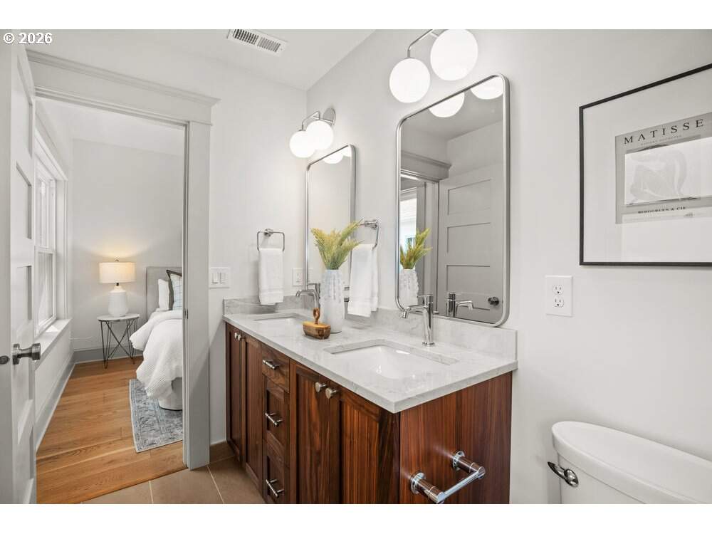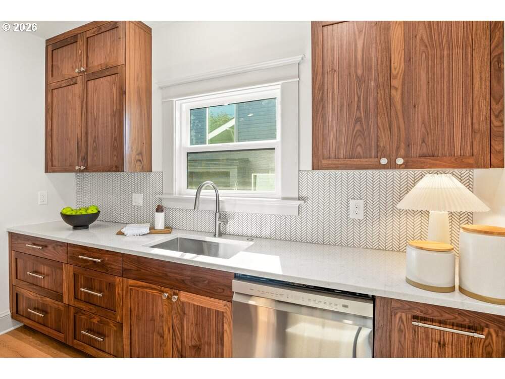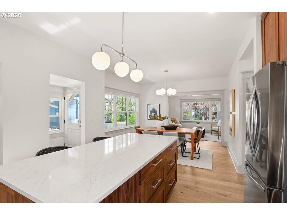 Perfect detached condo alternative with manicured, fenced- in, irrigated front yard and covered porch. Exclusive private driveway and brand new garage. The absolute best of its kind, not a better quality or better designed home in Beverly Cleary school district for $749k. Three blocks from top 10 rated best public HS in Oregon, Grant HS. This 2-bedroom, 2-bathroom residence has been completely reimagined from the ground up, blending elevated design with everyday comfort. Thoughtfully designed by Modd Architecture and brought to life with interiors by Angela Mechaley, this down-to-the-studs renovation is a masterclass in craftsmanship and intentional living. From the moment you arrive, the home's curb appeal is undeniable-classic cedar shingle siding pairs beautifully with all-new, custom-designed landscaping that creates a serene and inviting setting. Inside, you'll find rich, true hardwood floors throughout and a beautifully executed layout that seamlessly combines historic charm with modern sophistication.At the heart of the home, the custom kitchen stuns with handcrafted walnut cabinetry, sleek quartz countertops, designer tilework, and top-tier fixtures-offering both everyday functionality and warm, timeless beauty. Each space is curated with purpose, resulting in an interior that feels cohesive, elevated, and welcoming.The lower level features a spacious and flexible live/work space with its own private entrance and dedicated HVAC system-ideal for a home office, guest quarters, or creative studio. The lower level is also set up and able to be an additional ADU. Located just three blocks from top-rated Grant High School and within the sought-after Beverly Cleary Middle School boundary, this home sits in one of Portland's most vibrant and connected neighborhoods. With tree-lined streets, nearby parks, and easy access to local shops and cafes, 2415 NE 38th Ave Unit A offers not just a home, but a beautifully considered way of life.