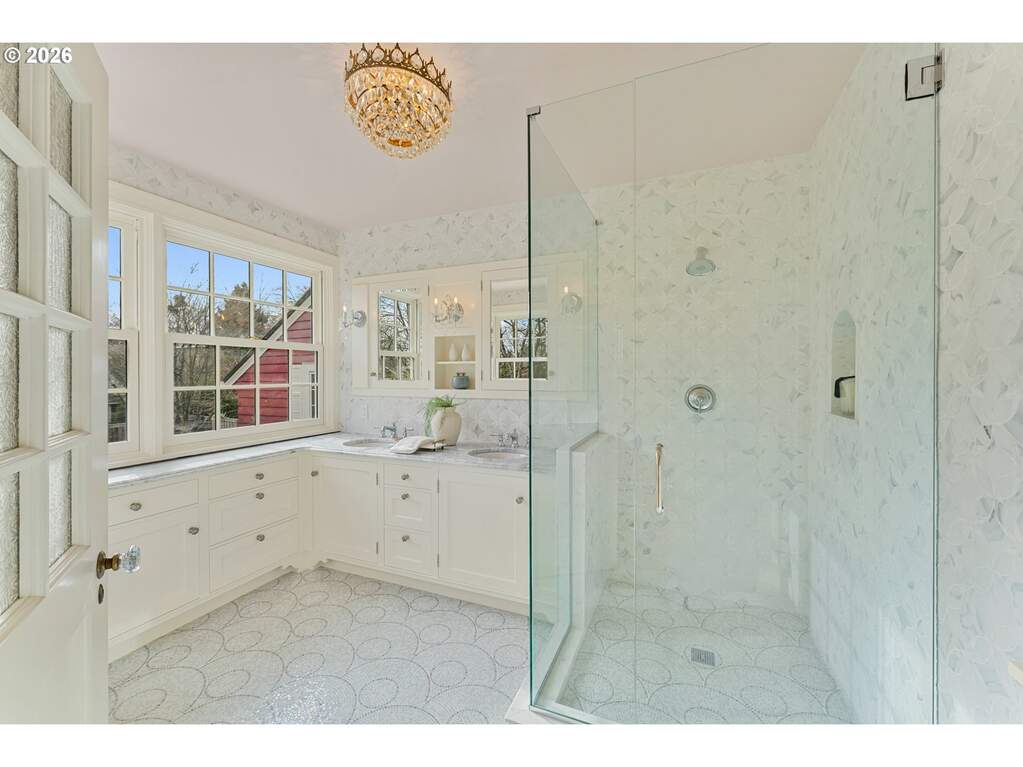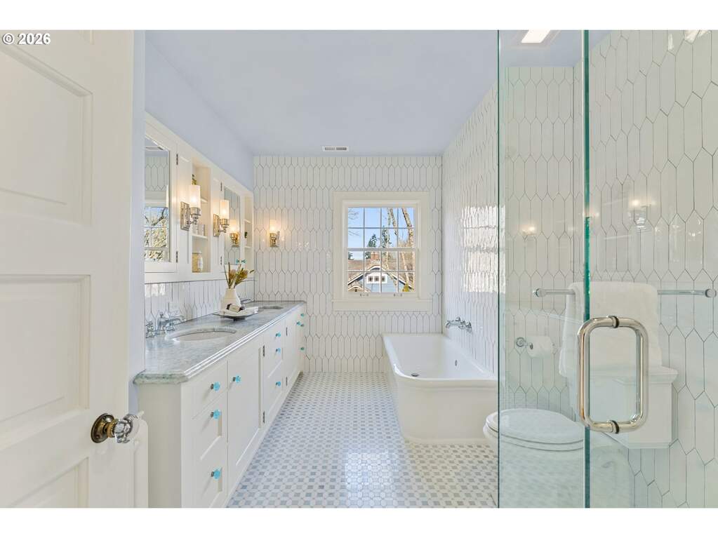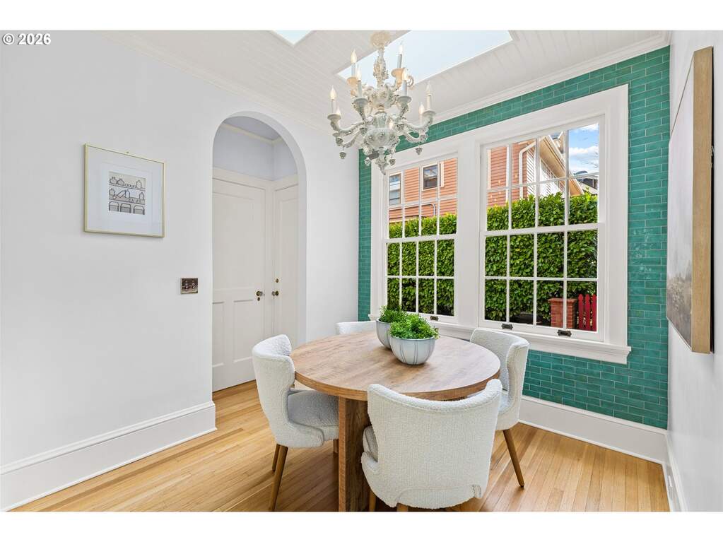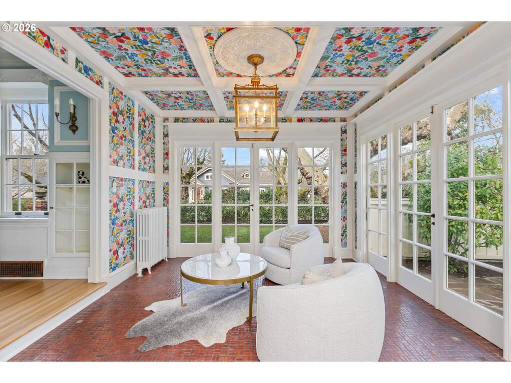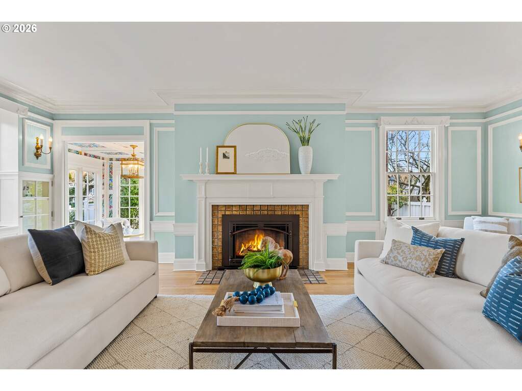 Welcome to The House of the Scarlet Gables, an extraordinary blend of timeless European elegance and contemporary luxury nestled on one of Irvington's most tranquil, tree-lined streets. Originally built in 1920 and meticulously reimagined in 2025 by McCulloch Construction, this distinguished colonial residence spans over 6,300 sq ft of beautifully curated living space, including separate guest quarters above the garage with a kitchenette and full bathroom, all set on a prized .24-acre corner lot graced by a majestic heritage tree. From the moment you arrive, refined craftsmanship and storybook charm set the tone. New artisan stone and brick walls, lush hedging, ironwork, white fencing with garden gates, an inviting gazebo, riotous gardens, and an outdoor fireplace create the feel of a private English country estate-right in the heart of one of Portland's most walkable and family-friendly neighborhoods. Sunlight bathes four levels of living space through skylights and expansive windows, illuminating 6 bedrooms, 6.1 baths, and 14 rooms adorned with intricate artisanal tile and woodwork. Highlights include a stunning chef's kitchen, multiple elegant entertaining spaces, and an opulent primary suite with dual baths, fireplace, walk-in dressing room, and a private balcony. Gracious hallways, mirrored entries, 15 dazzling chandeliers (including a unique double chandelier), six sets of French doors, and high ceilings elevate every corner of this home. Modern comforts are seamlessly integrated throughout, offering spaces perfect for work, play, and everyday living. This is more than a house-it's a legacy home ready to welcome the next chapter of luxury living in Portland's historic Irvington neighborhood. [Home Energy Score = 1. HES Report at https://rpt.greenbuildingregistry.com/hes/OR10238827]